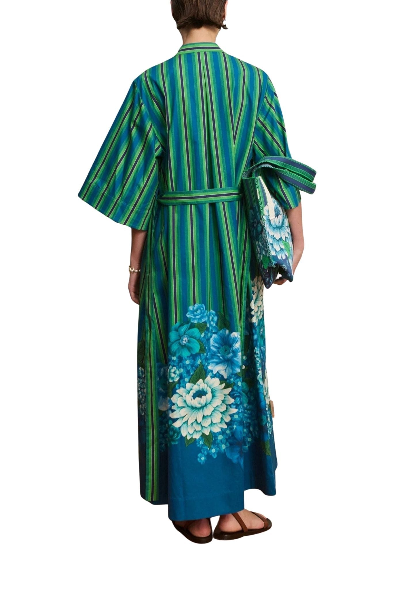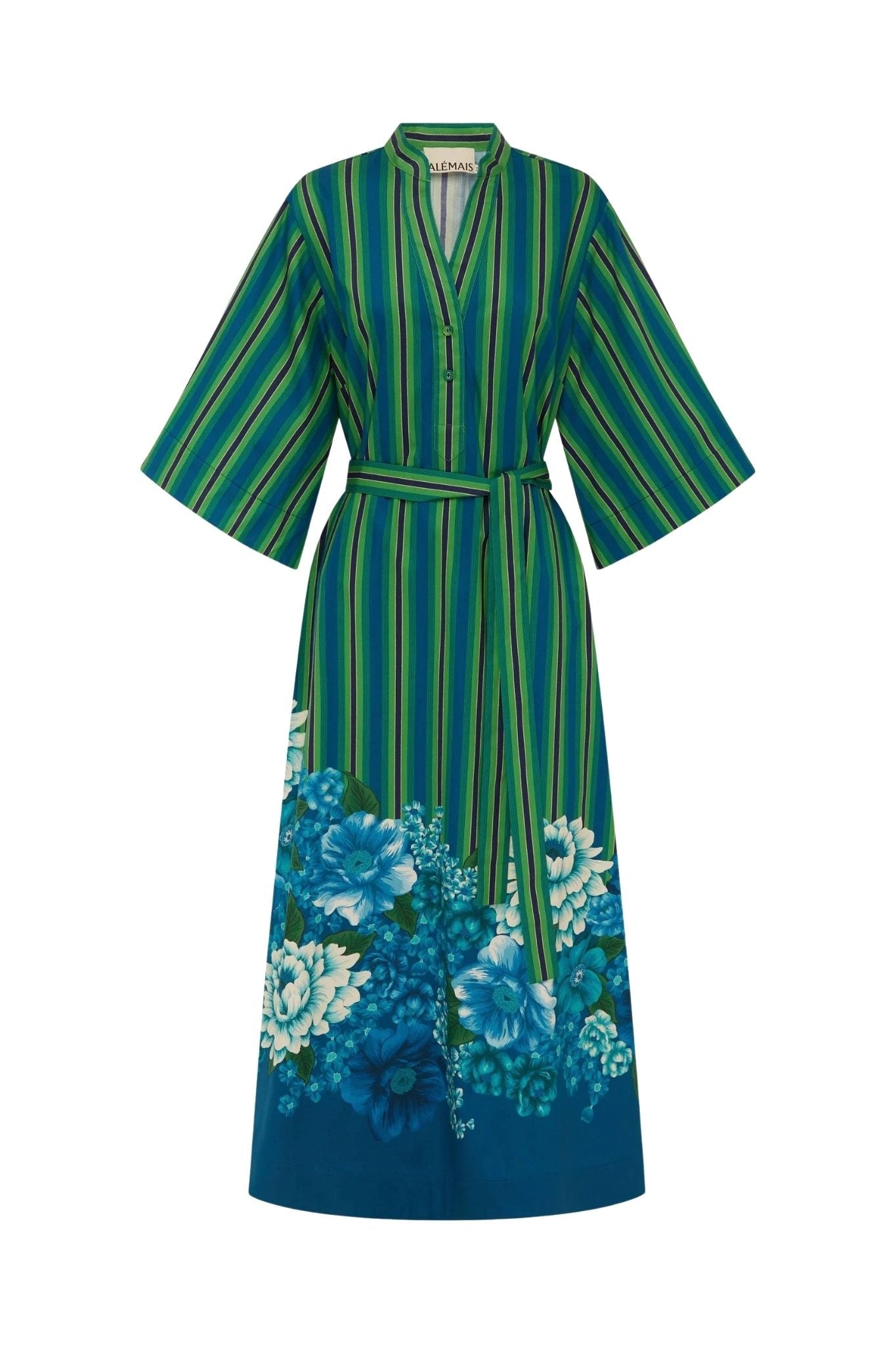Alemais Margo Tunic Midi Dress features a relaxed v-neck midi silhouette with a rounded collar stand, oversized box sleeves, and practical in-seam pockets. A self-tie belt cinches the waist for versatile styling, while the design maintains an effortless, contemporary flow. For precise fit, refer to the size guide, and for accurate color representation, consult the flat lay product shots.
