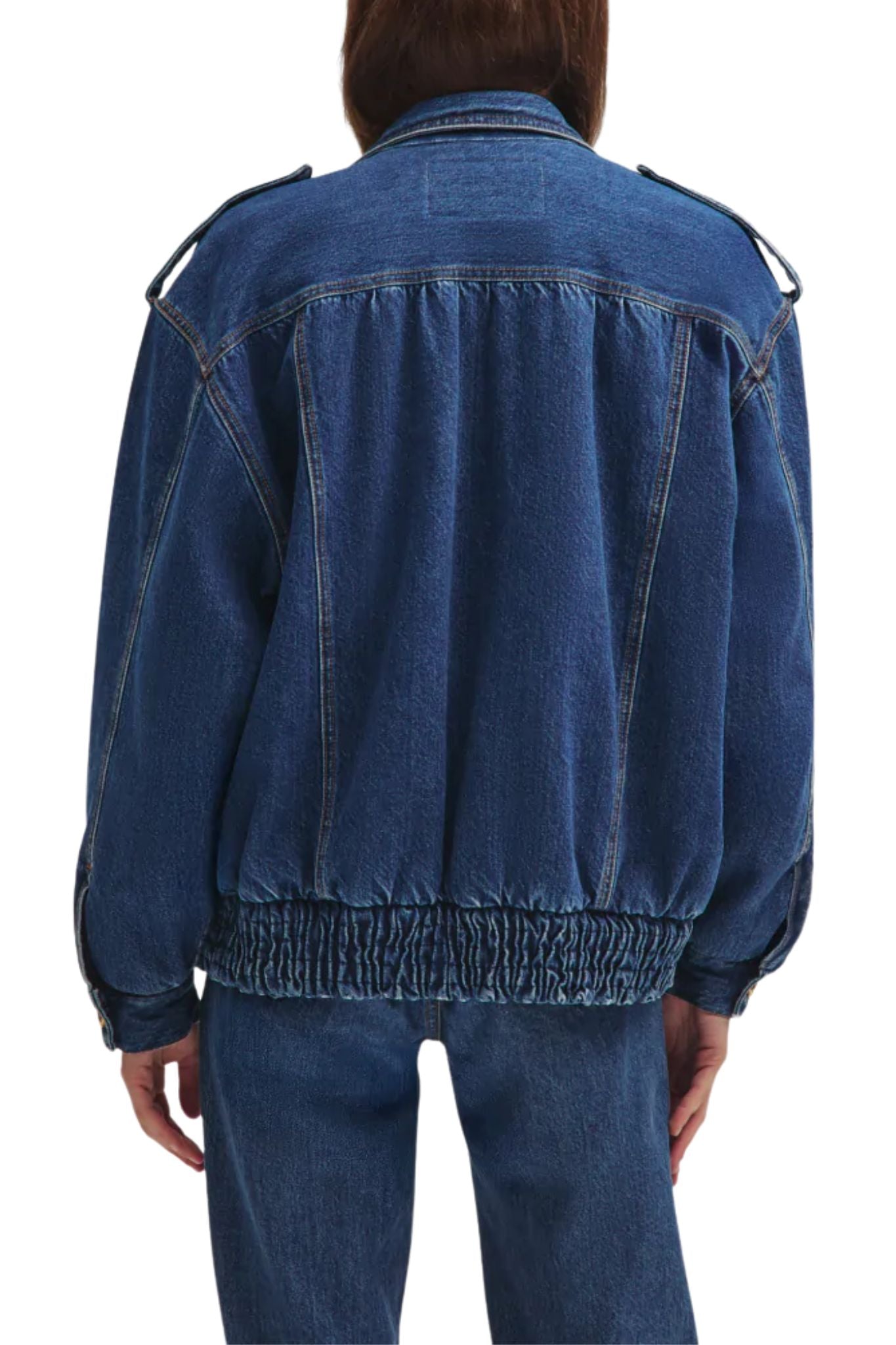 Blazé Denim launches the 'Nariida Sapphire' Charlie Bomber this season, made from pure cotton denim in a dark blue wash. This bomber style features a relaxed silhouette with oversized padded shoulders and can be paired with matching pants for a double denim look.