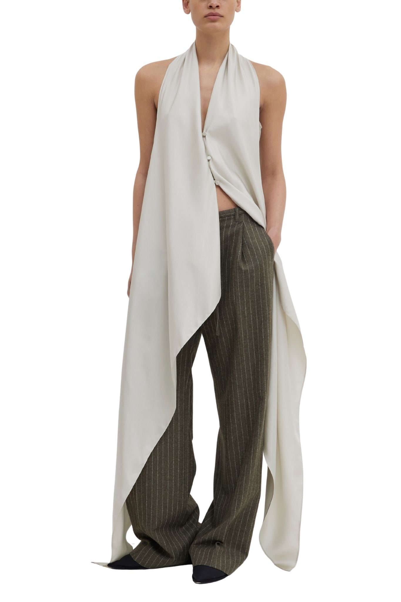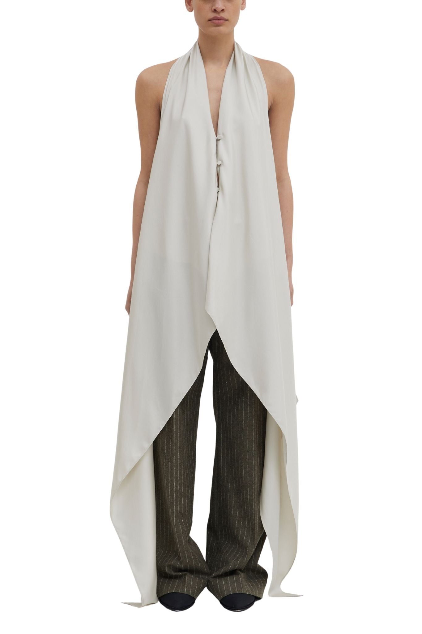 Crafted in a fluid, lightweight fabric, the Trini Top embodies Christian Wijnants’ effortless elegance. The soft cement hue offers a modern, neutral palette, while the relaxed silhouette drapes beautifully for a refined yet easy look. Featuring subtle detailing and a versatile shape, it pairs seamlessly with tailored trousers, skirts, or denim, making it a sophisticated staple for every wardrobe.