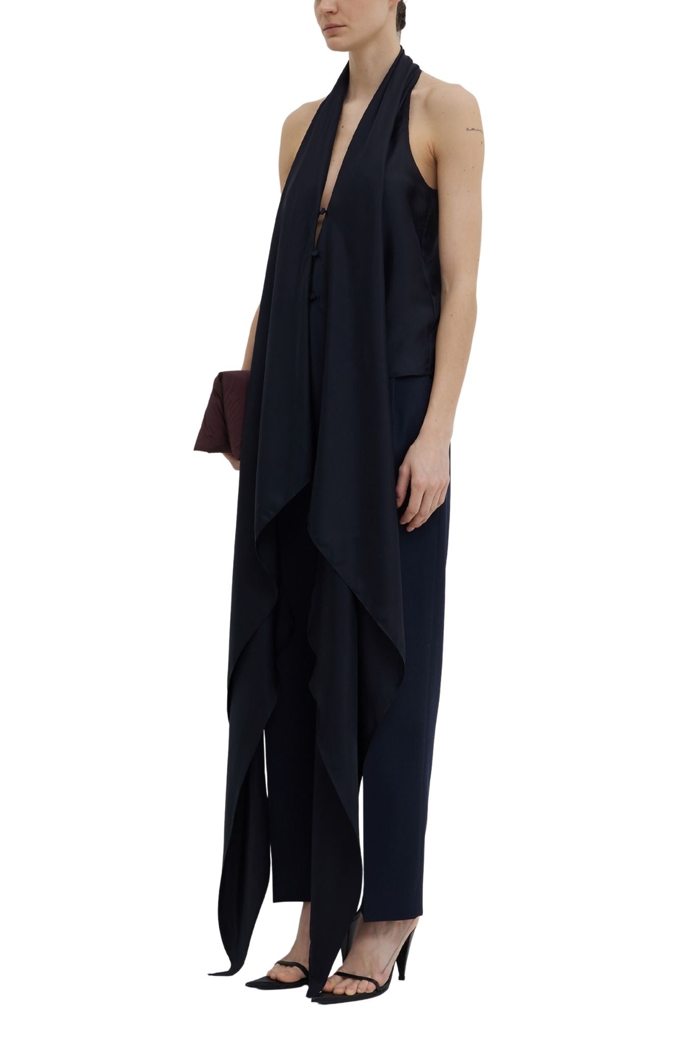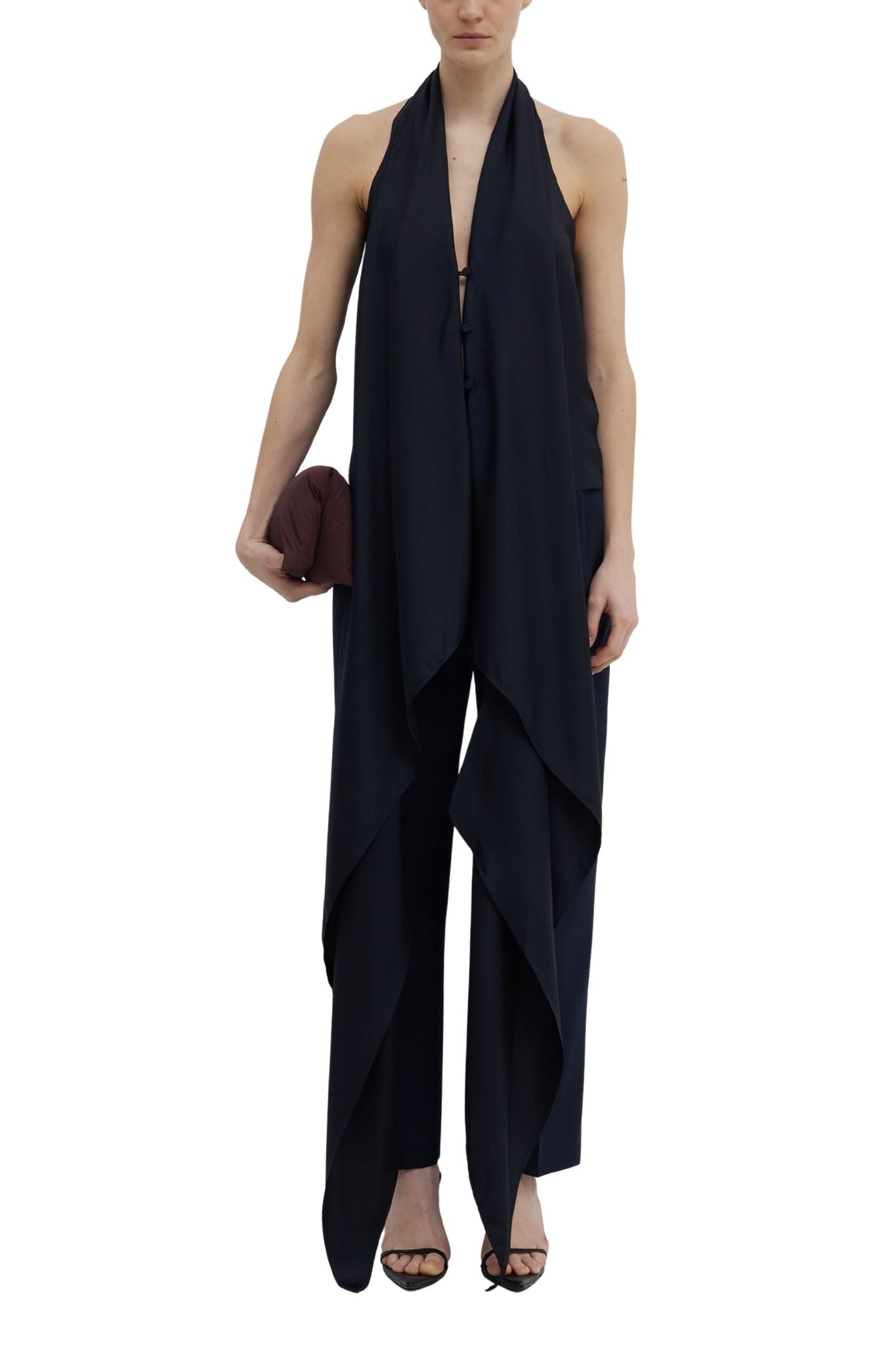 A refined essential with a modern twist. The Trini Top is cut from fluid, lightweight fabric in a deep navy hue that pairs effortlessly with anything from tailored trousers to denim. Designed with a relaxed silhouette and subtle drape, it offers both ease and elegance for day or evening wear. Finished with clean lines and thoughtful detailing, it’s a versatile piece you’ll reach for season after season.