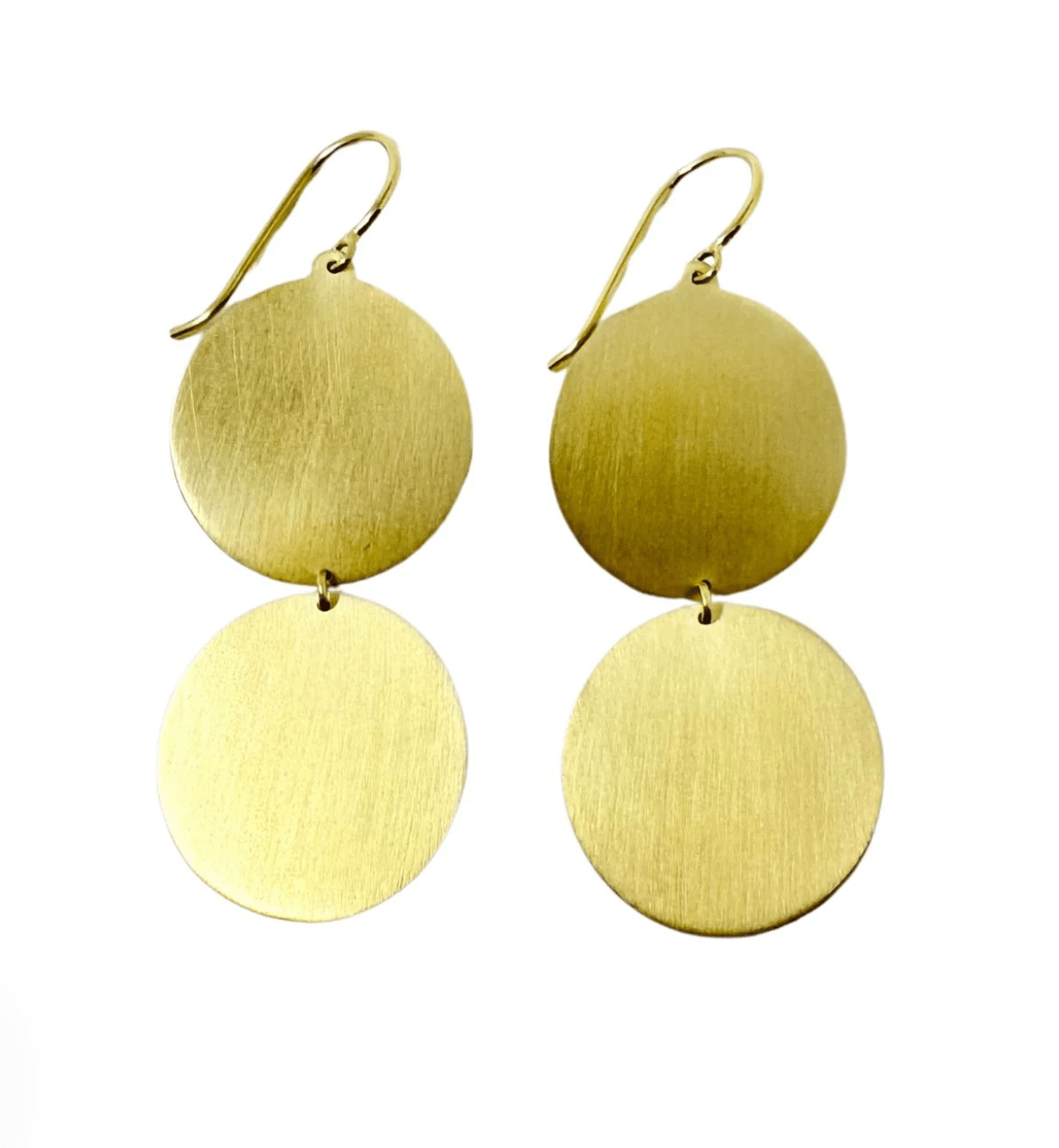 Irene Neuwirth Flat Gold Medium Double Circle Earrings
