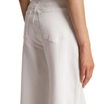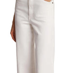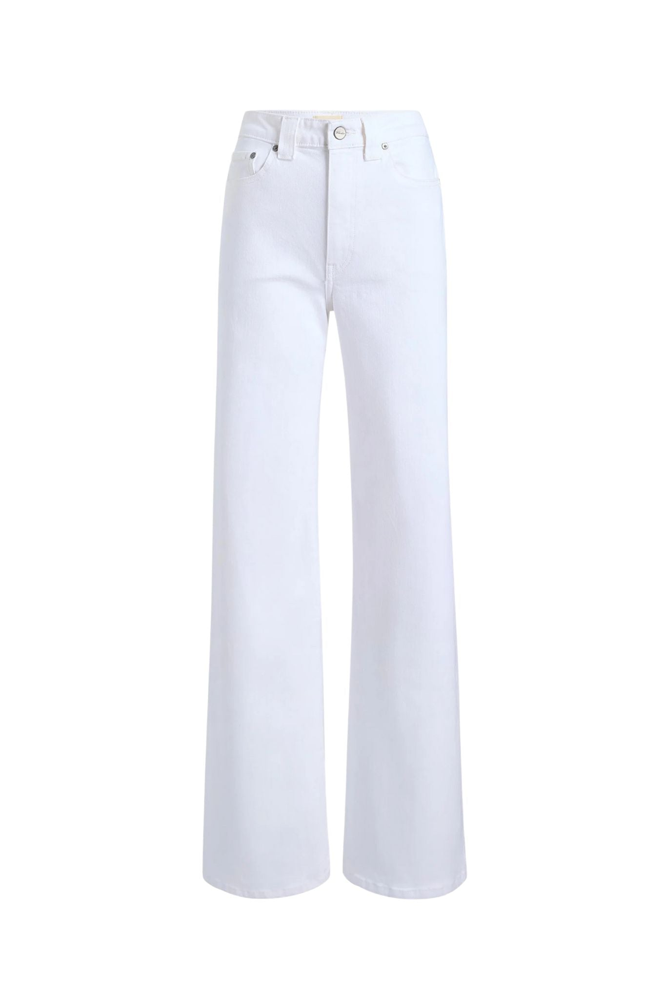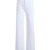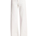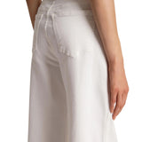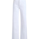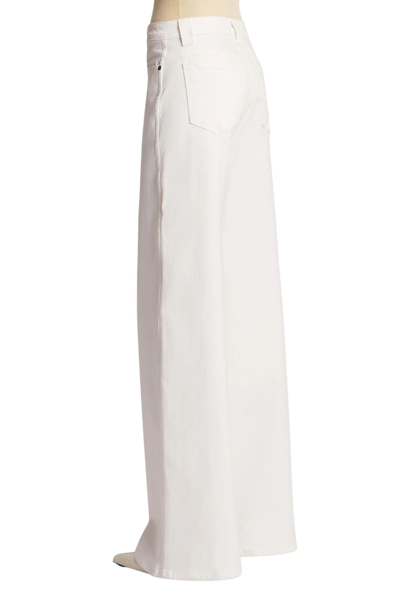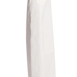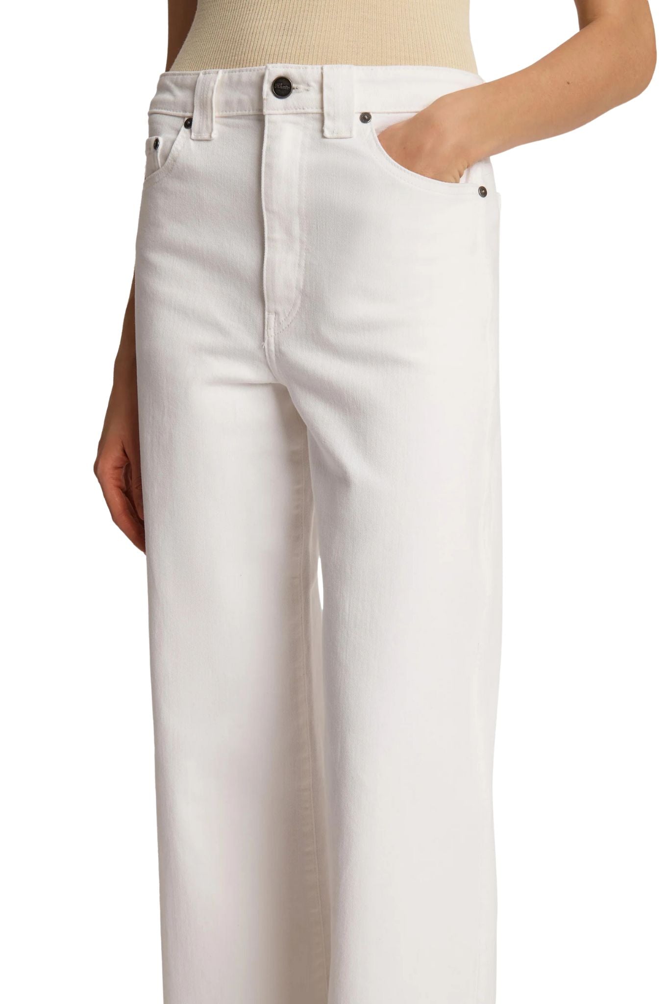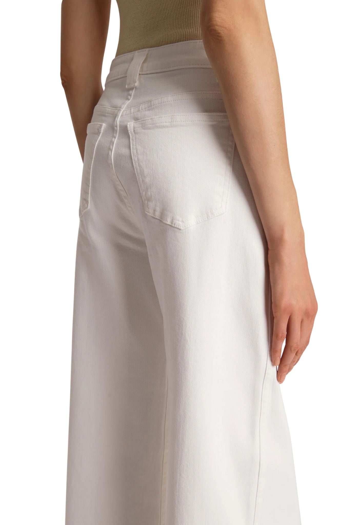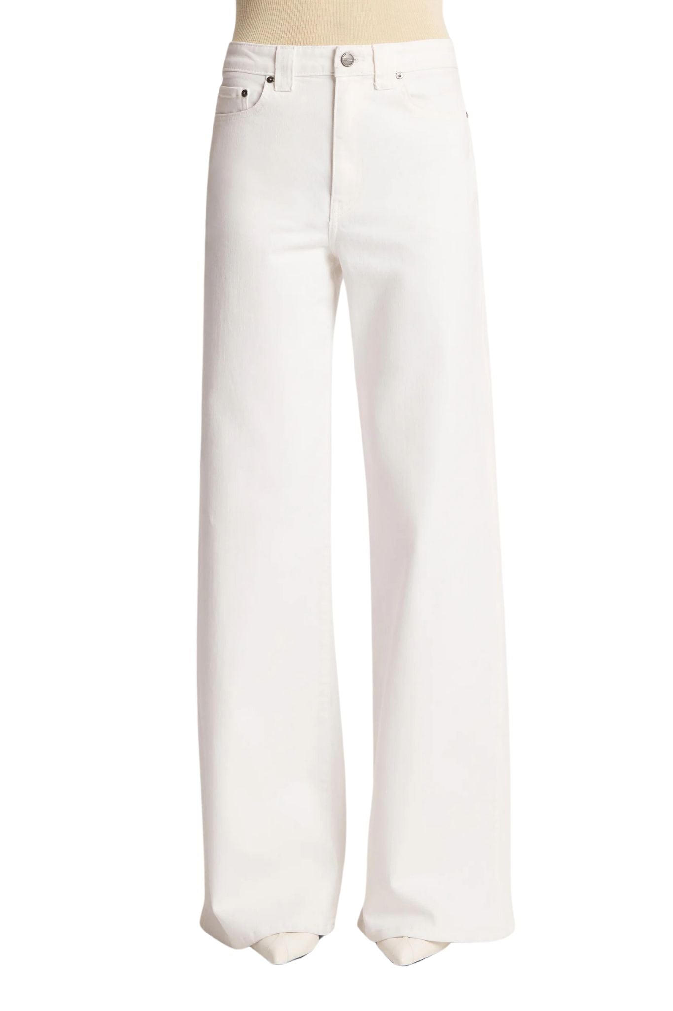 Combining the ease of wide-leg trousers with classic five-pocket styling, this high-waisted silhouette elongates the legs with a refined flare below the knee.