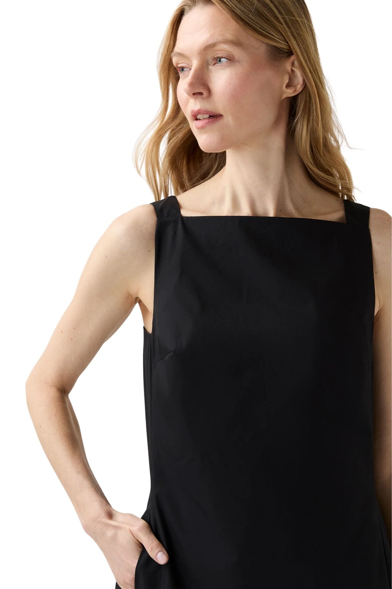You could always use another black dress, right? This one is easier than it looks, made up in a poplin more structured than what we use in our shirts (so it can go a little dressier than your typical sundress fare). Also easy — with added on-seam pockets and discreet tabs to hide your bra straps. You've probably already spotted this, but the neckline is the real star here — dead simple and high-impact.
