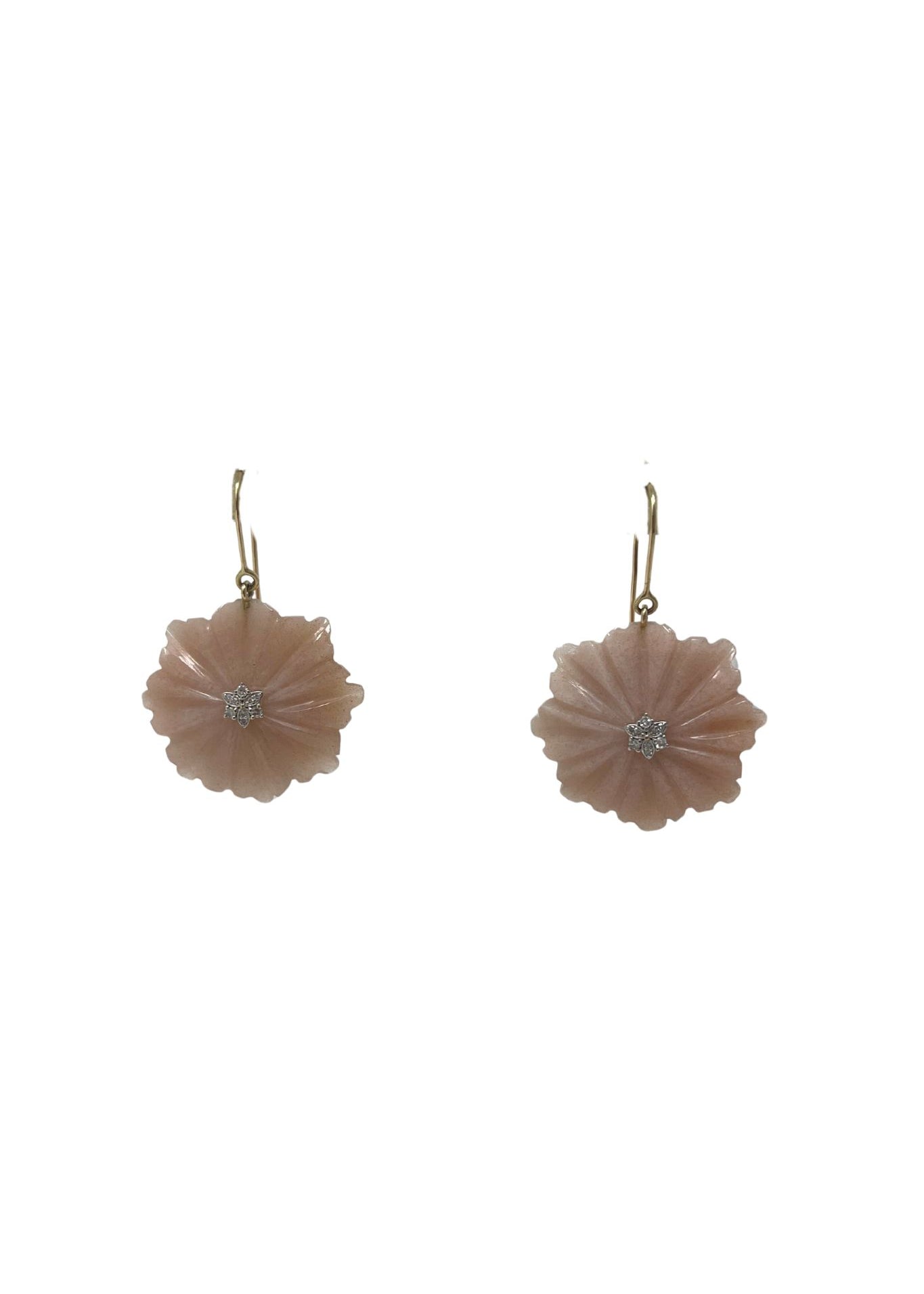 Irene Neuwirth Classic 18k Rose Gold Earrings set with 11mm Pink Opal and Brilliant Cut Diamonds G-H Color / VS-SI Clarity (0.16 cts)