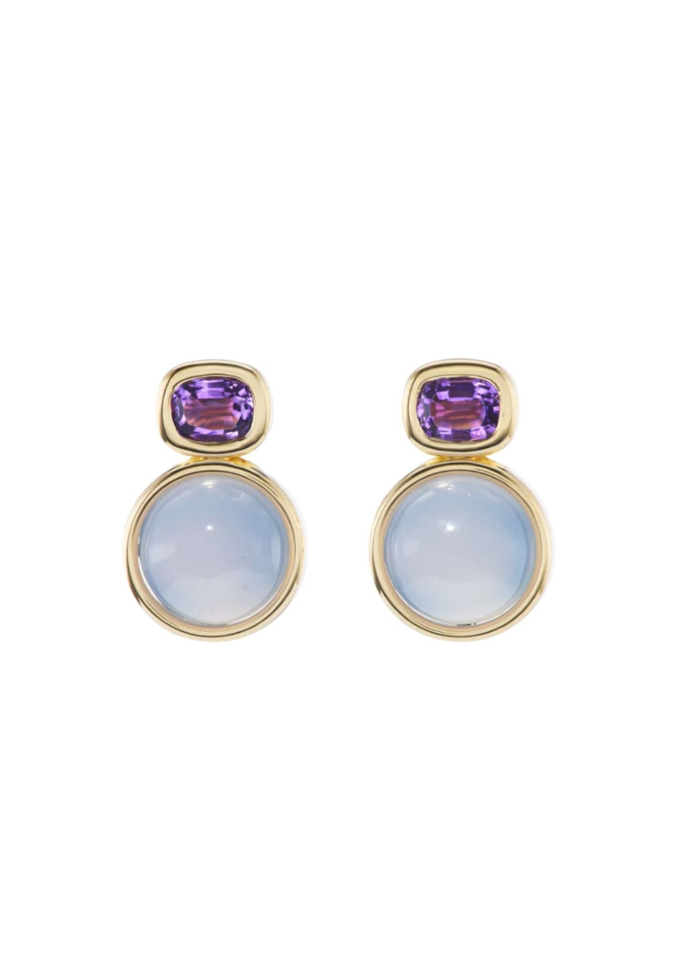 Brent Neale Semi-Precious Kite Studs with Sapphire Sputnik Ear Jackets Amethyst/ Purple Sapphires