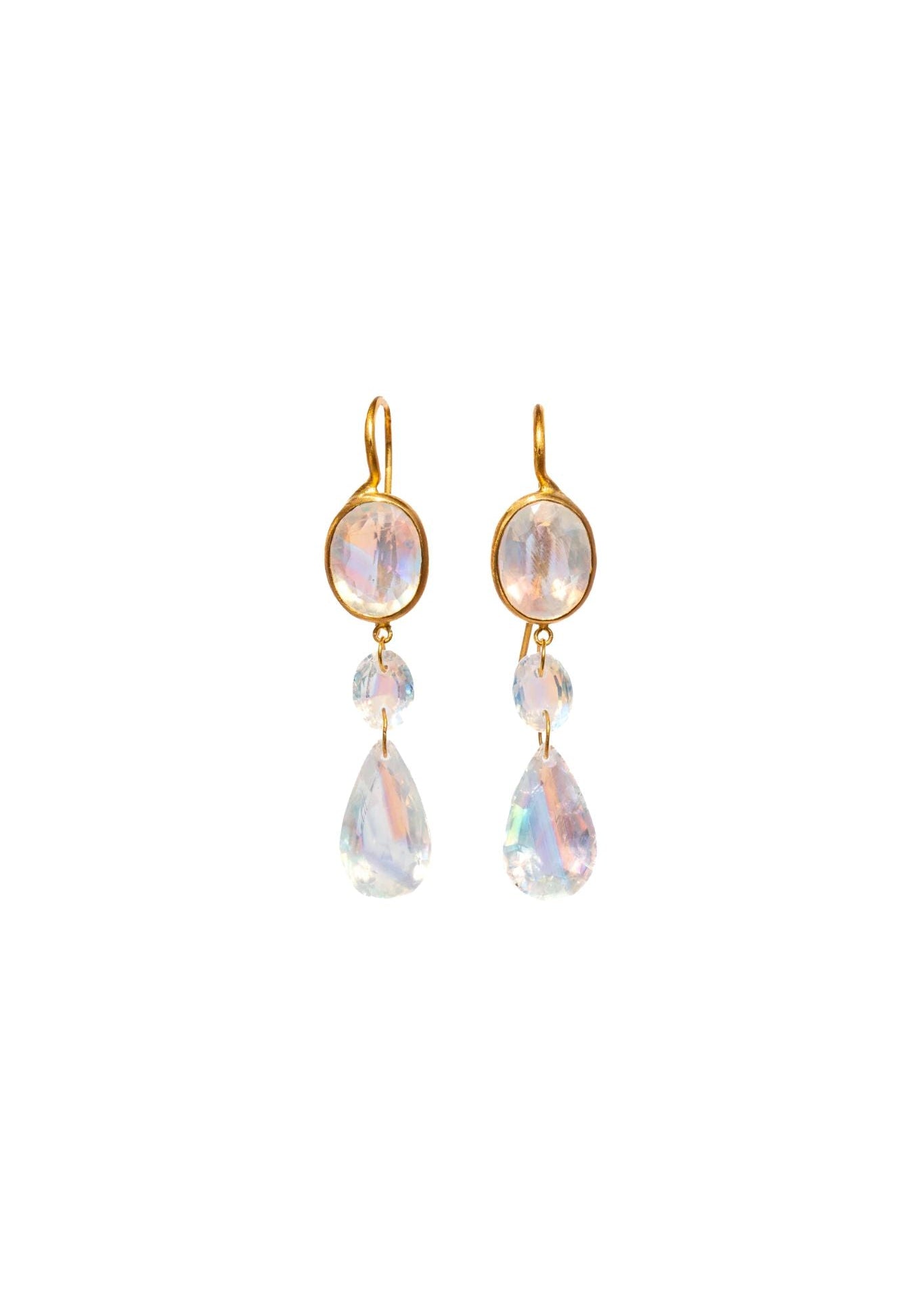 Marie Helene de Taillac 22k Yellow Gold Rainbow Moonstone Elizabeth T Earrings