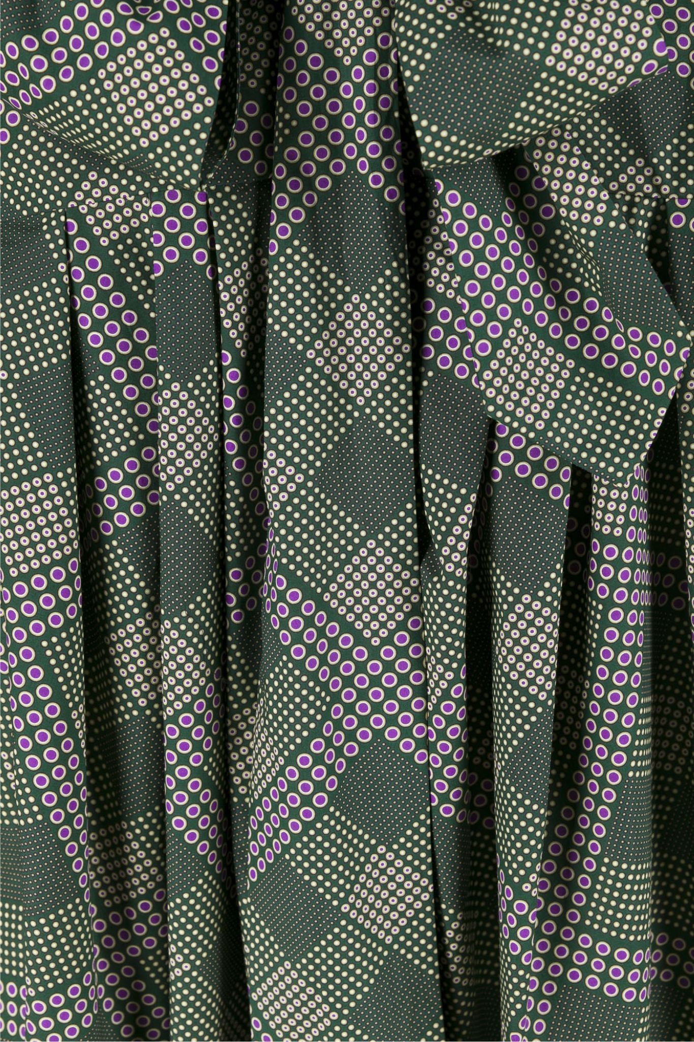 Loose fit shirt dress with pleated back and scarf in Bottle spot check printed cotton poplin.