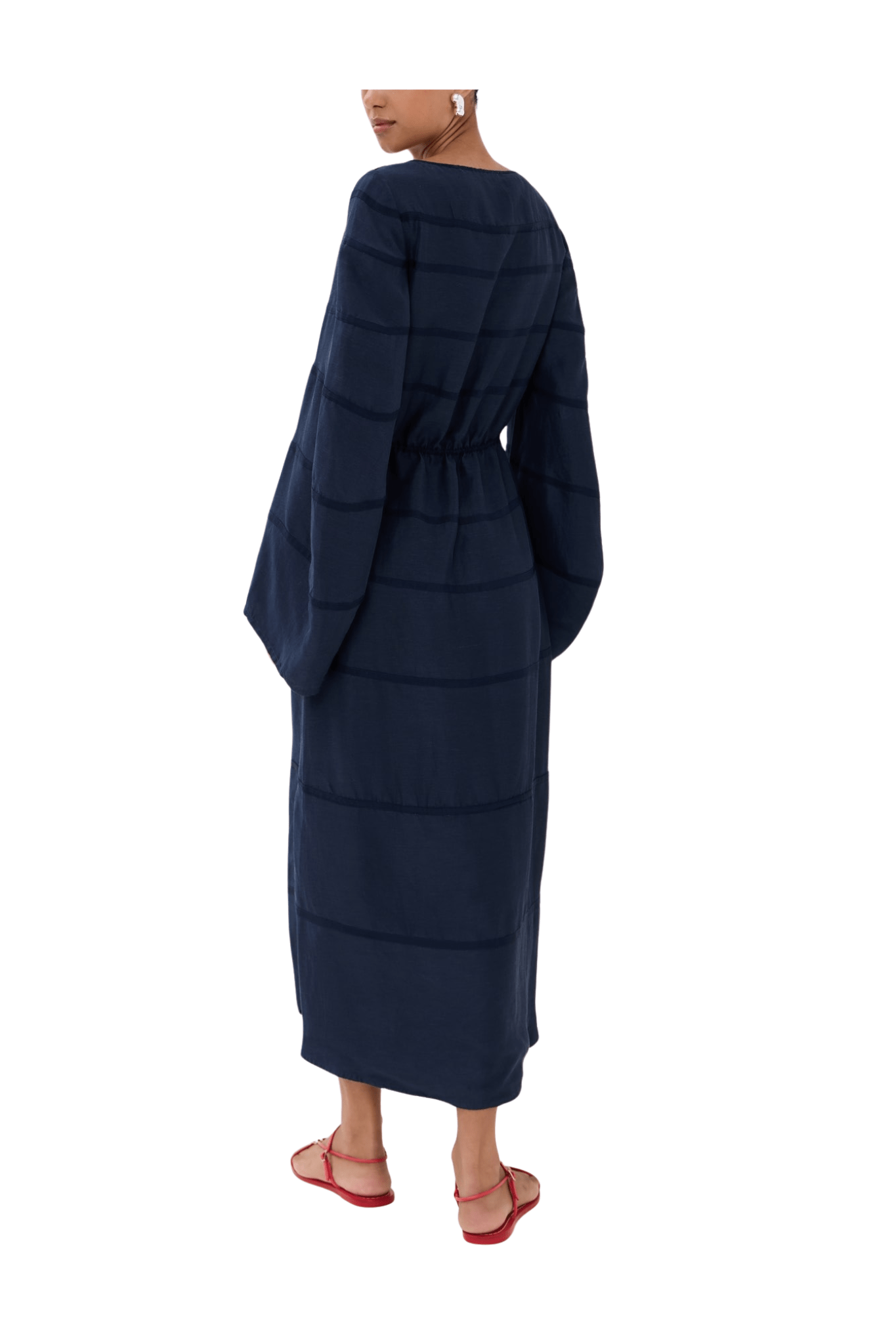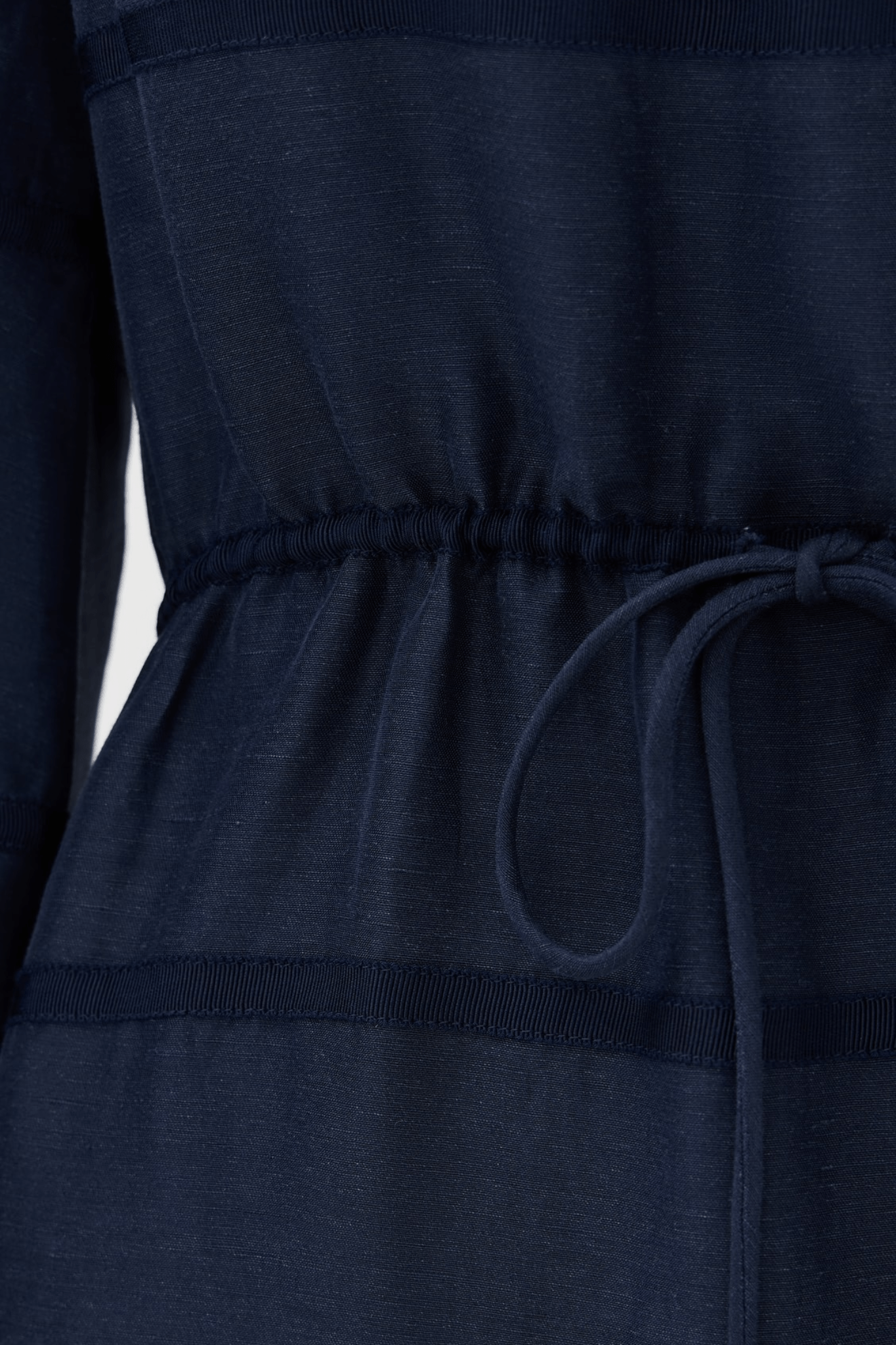 Mid-weight midi dress in a non-stretch slubbed weave, with side slits and a grosgrain trim