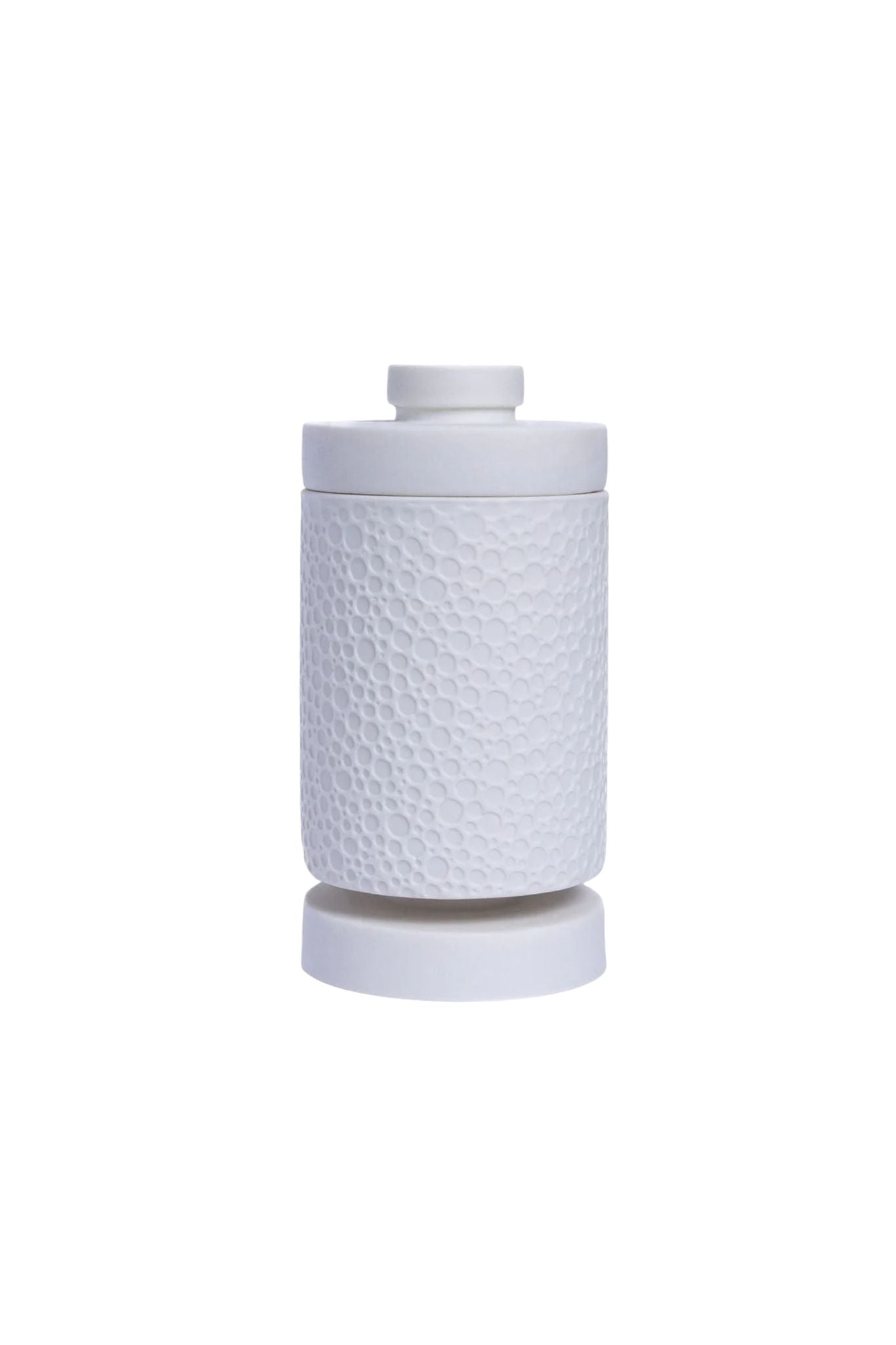 The Vessel: This oversized candle is housed in our custom, handmade matte off-white porcelain vessel with matching lid. Featuring the brand’s insignia in its knob, the lid protects your wax from dust. Ours is also the only candle on the market with a built-in base, to keep candle heat from damaging your tabletop. The second you light it, our candle will glow from within, like a lantern.