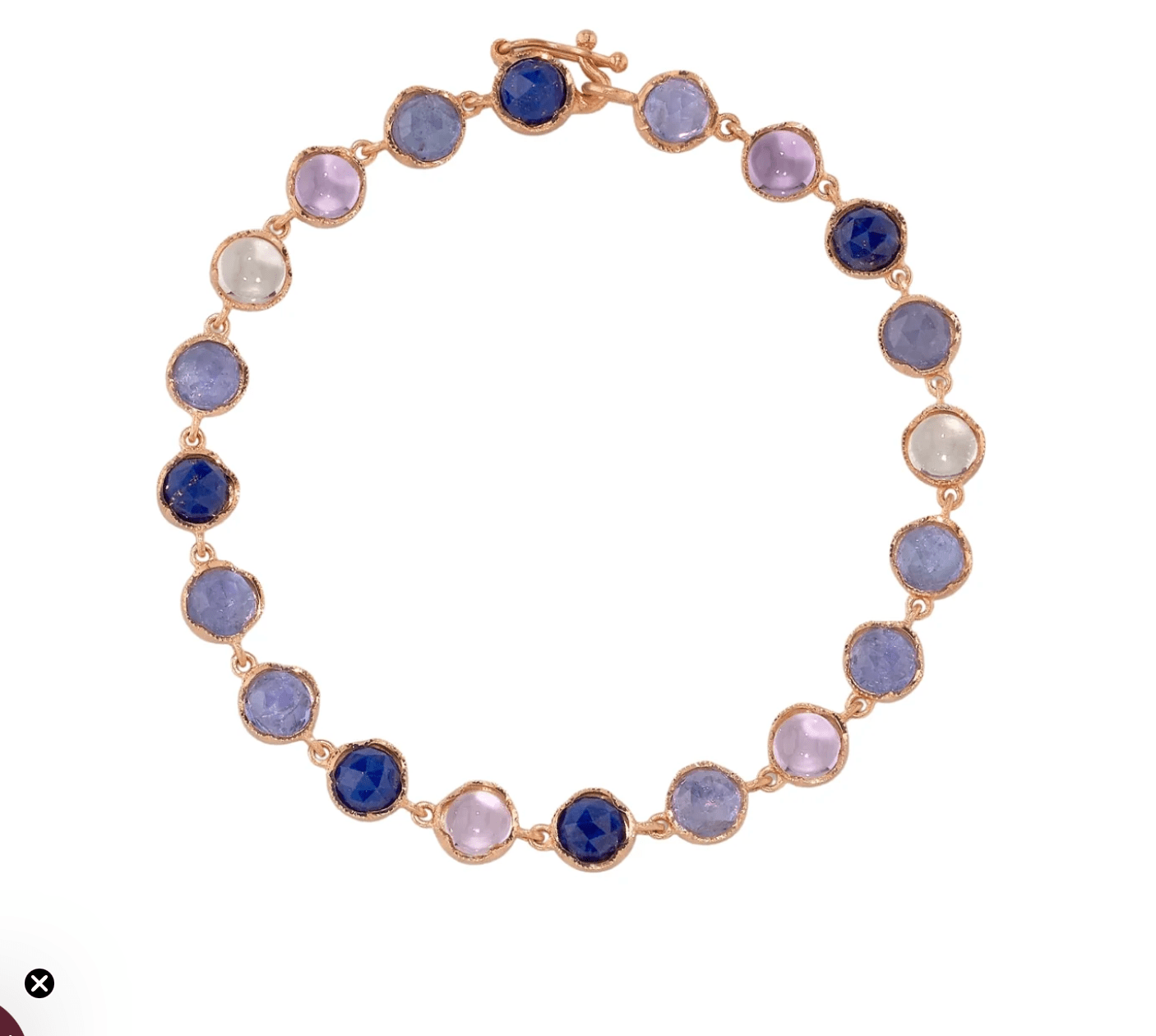 Irene Neuwirth Classic 7" Bracelet set with 5mm Rose Cut and Cabochon Lapis, Tanzanite and Rose of France
