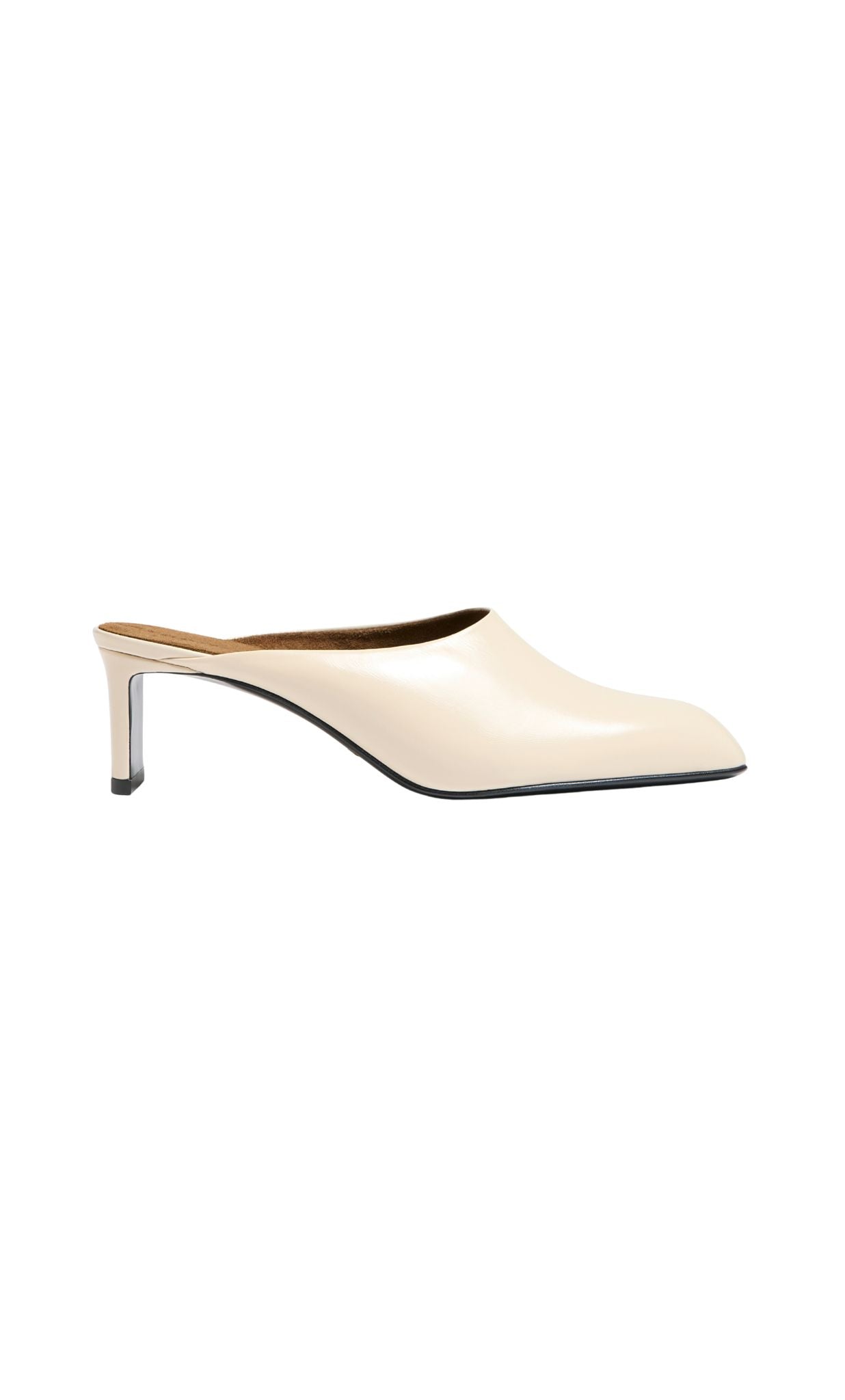 A bold backless heel designed for a slipper effect in a snip-toe silhouette borrowed from boots and crafted in Italy. Signature gold staple details at leather sole to catch the light with every step. Interior lined in velvety suede.