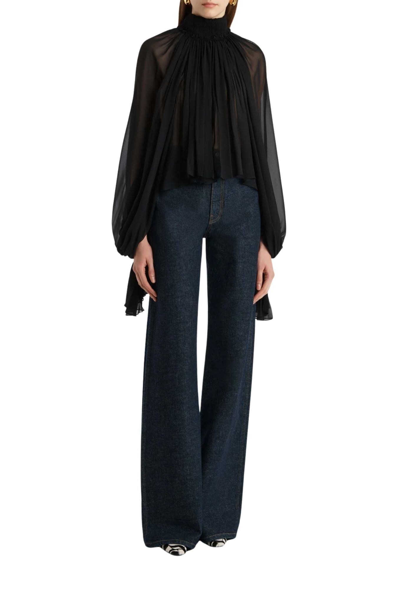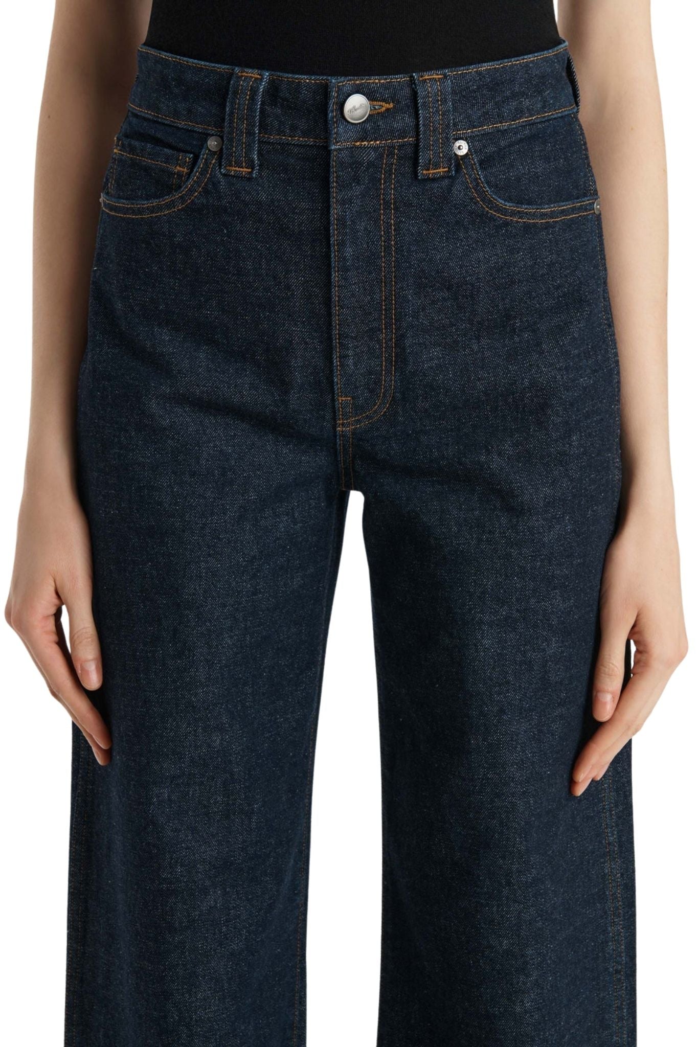 Combining the elegance and ease of wide-leg trousers with classic five-pocket styling, this high-waisted silhouette visually elongates the legs. Each hand-finished pair has a button of antiqued nickel.