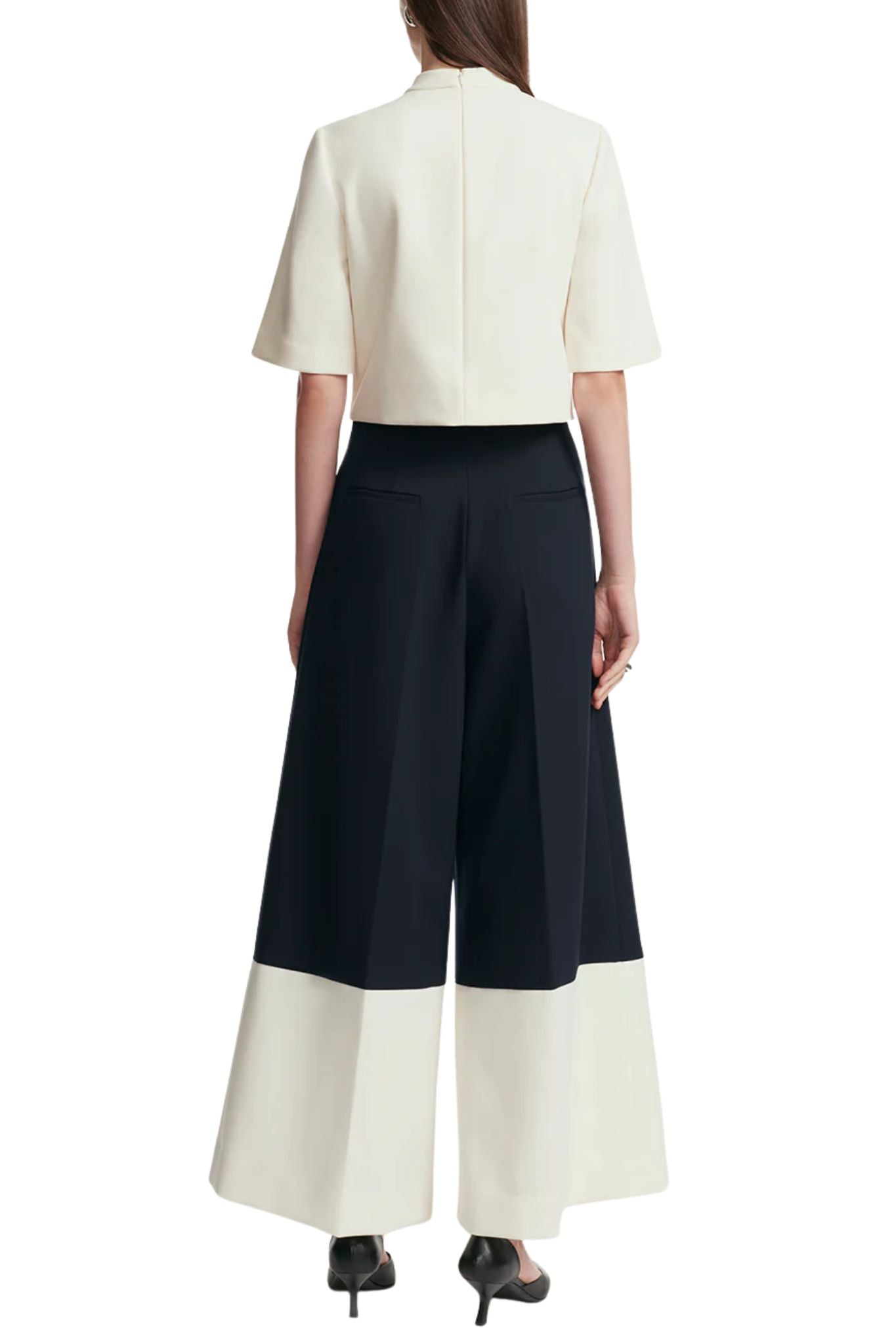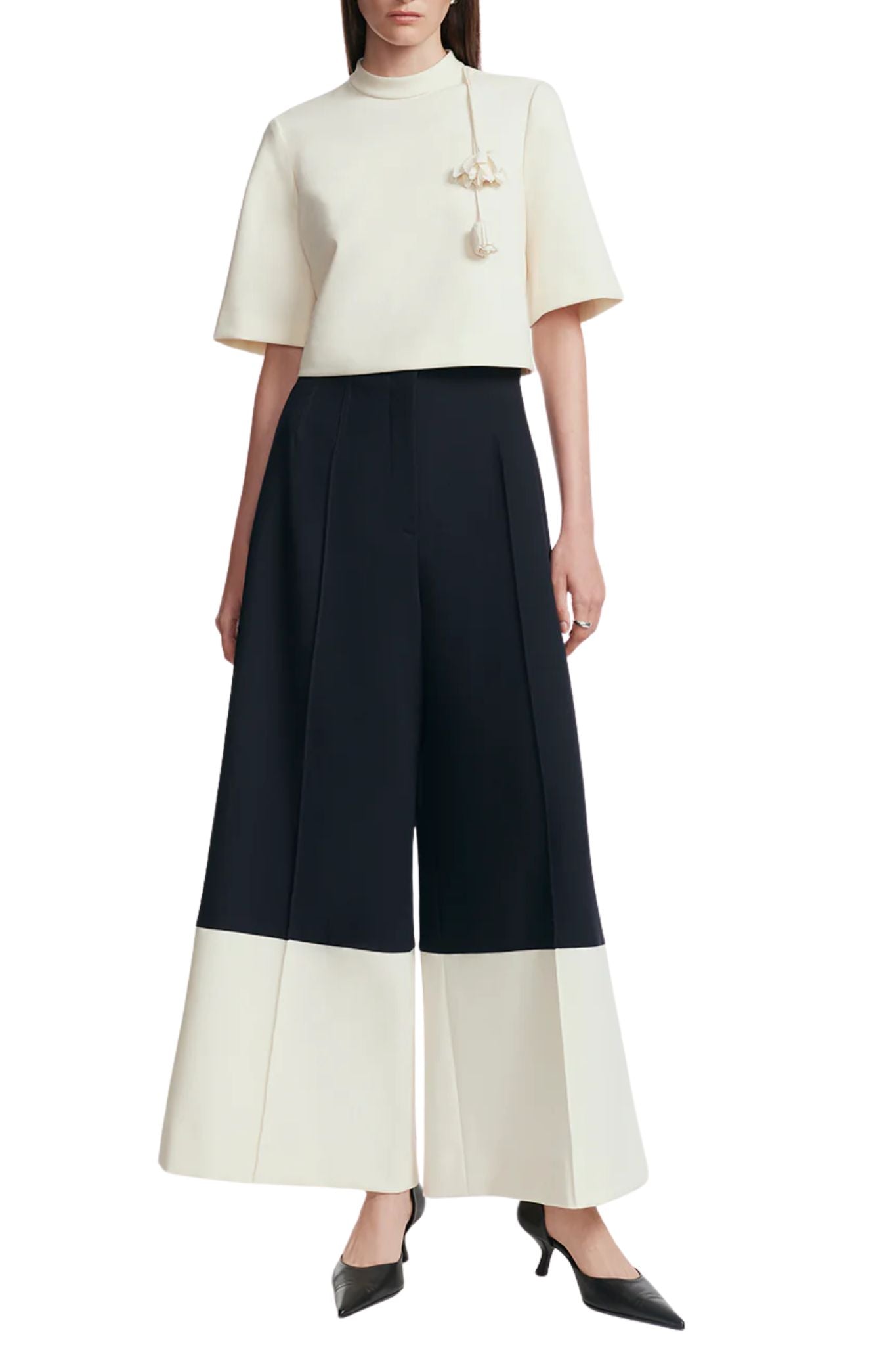 Crafted from our signature stretch twill, this lightly structured crop top features a subtle mock neck, wide bell sleeves, and a body-skimming straight cropped fit. Embellished with dimensional drop flower detailing, reminiscent of American photographer Imogen Cunningham's pinhole exposure still lifes, this is an instant classic. Pairs perfectly with the coordinating Fluid Crepe Drop Flower Ruched Skirt, the season's fresh denim, and elevated separates.