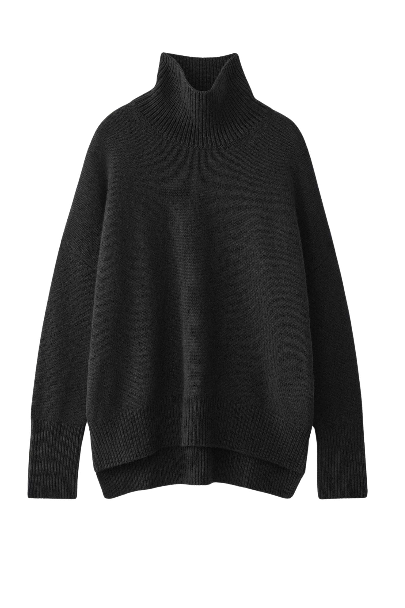 A play on proportions, the Heidi sweater is crafted in rich, heavy knit cashmere. The cocooning silhouette is made more inviting by an enveloping high neck, dropped shoulders, full-length sleeves and a hemline which falls to longer lengths at the back.