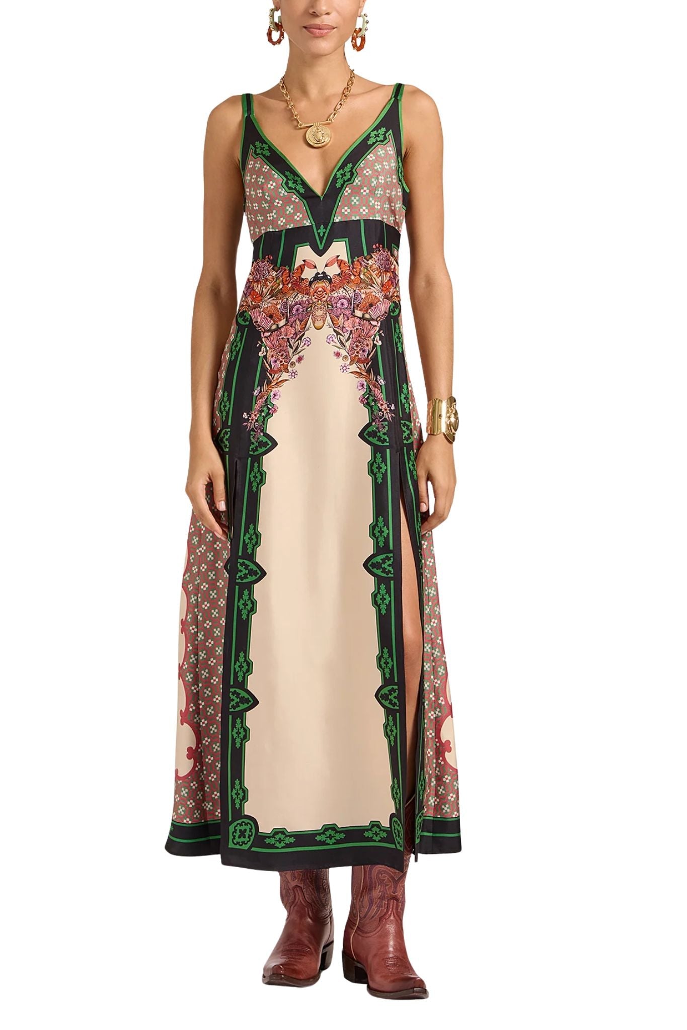 Any guesses as to why we called this dress La Favorita? With its sensual deep V neckline and panelled slits on either side of its floor-skimming skirt, this is the slip dress to replace all other slip dresses. Crafted from Italian silk, it clings at the waist in just the right place but isn’t snug so its as perfect layered over your Atelier Shirt or turtleneck as it is on bare skin. And the hand-placed, in-house designed Mariposa print? Next-level luxurious.
