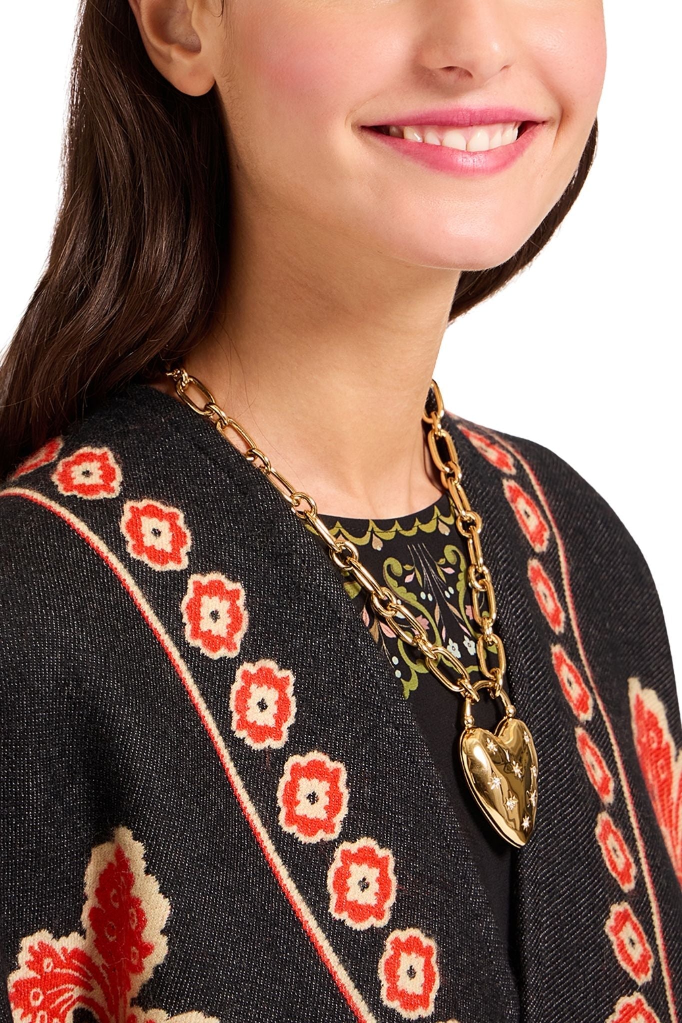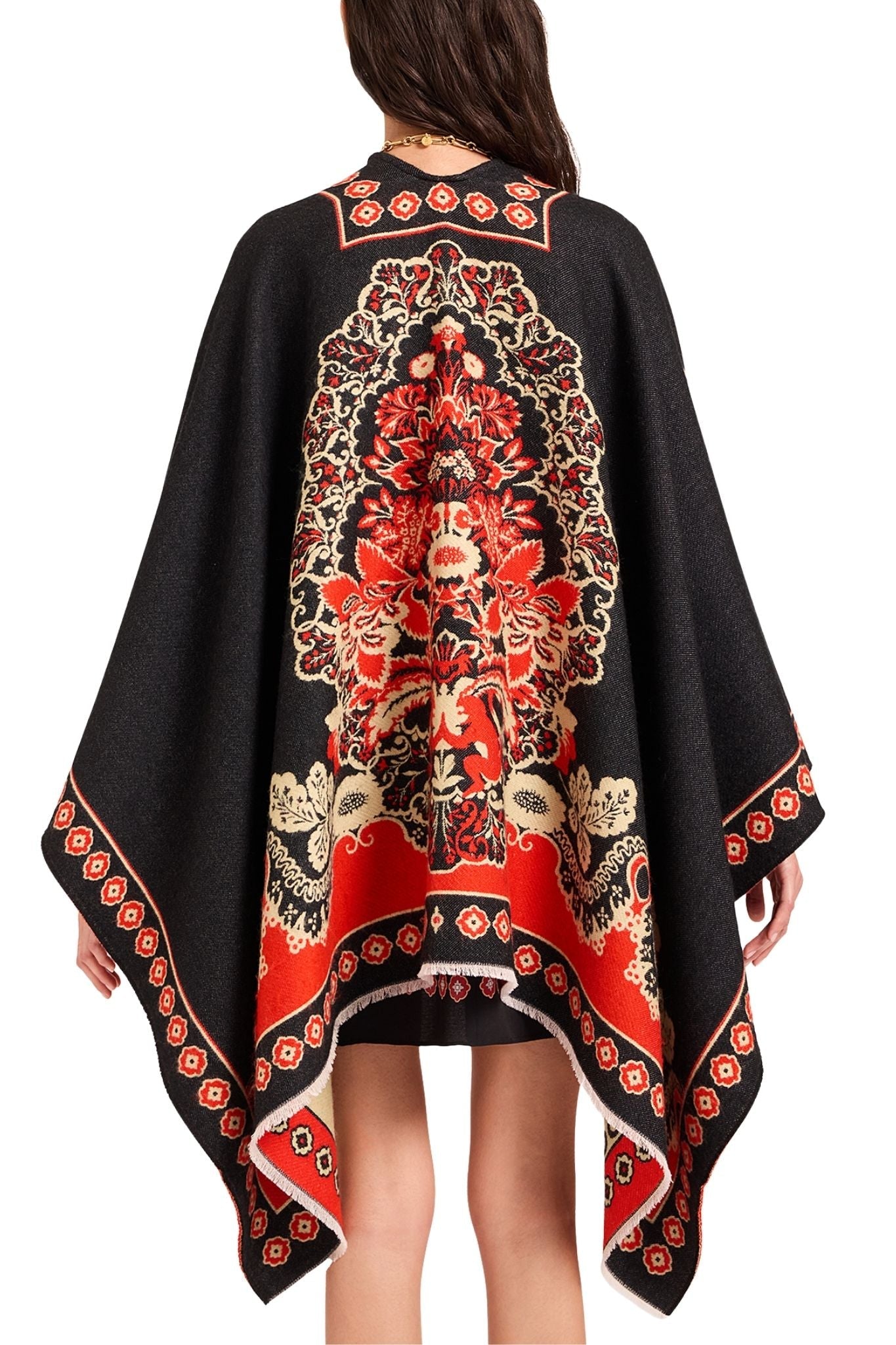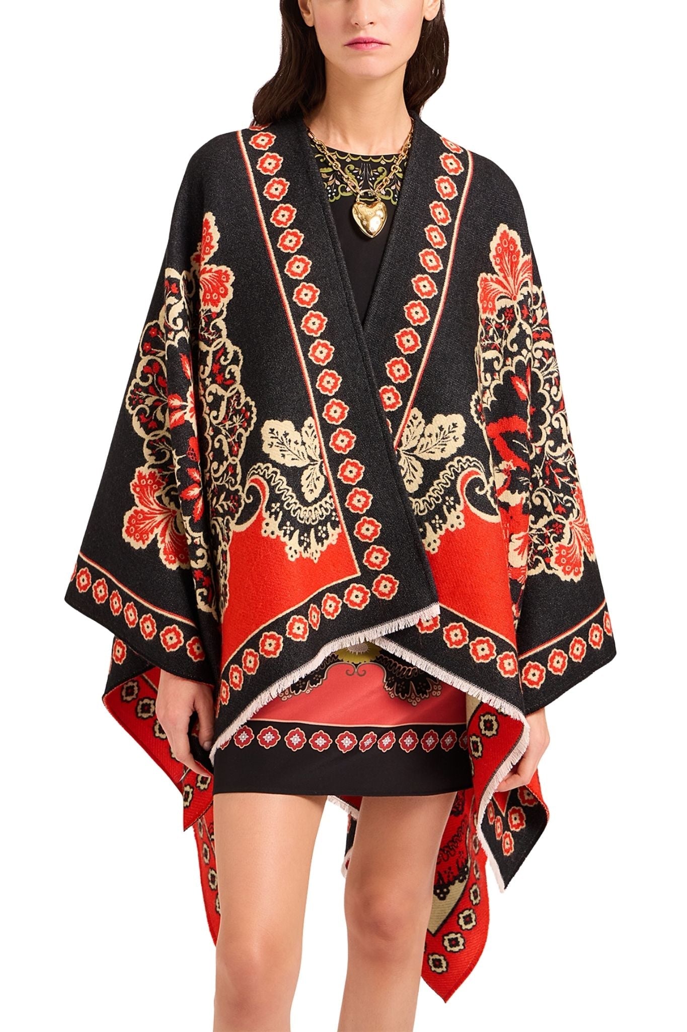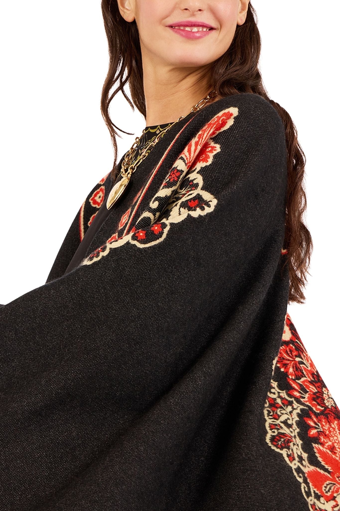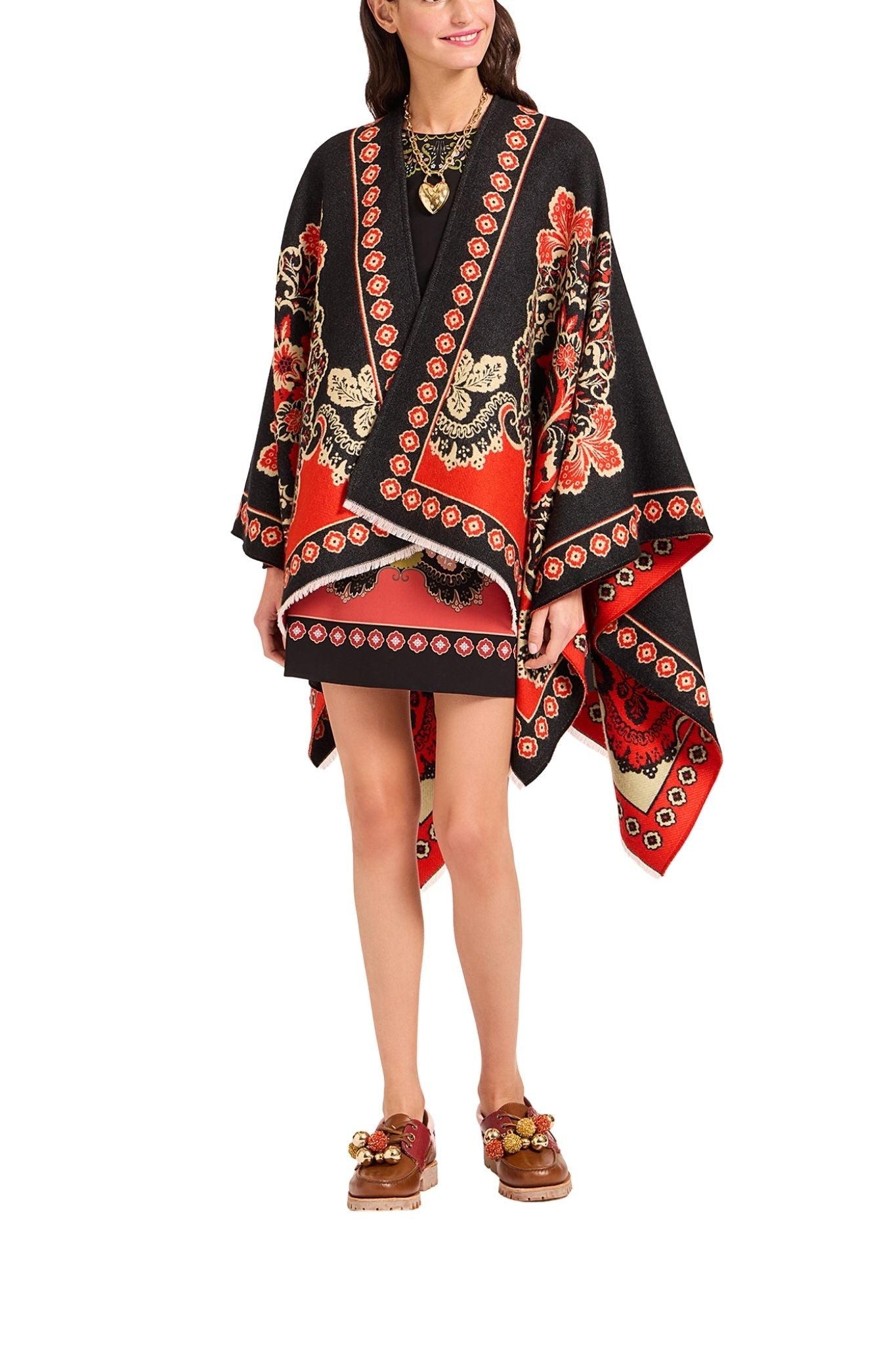 One for all you divine beings out there, this luxurious wool-silk poncho features our abundant hand-placed Cornucopia print, with a contrast solid hue inside. It's super special. Keep it handy for meditation moments, airplanes or chic nights out. Cocoon up and let the good vibrations flow.