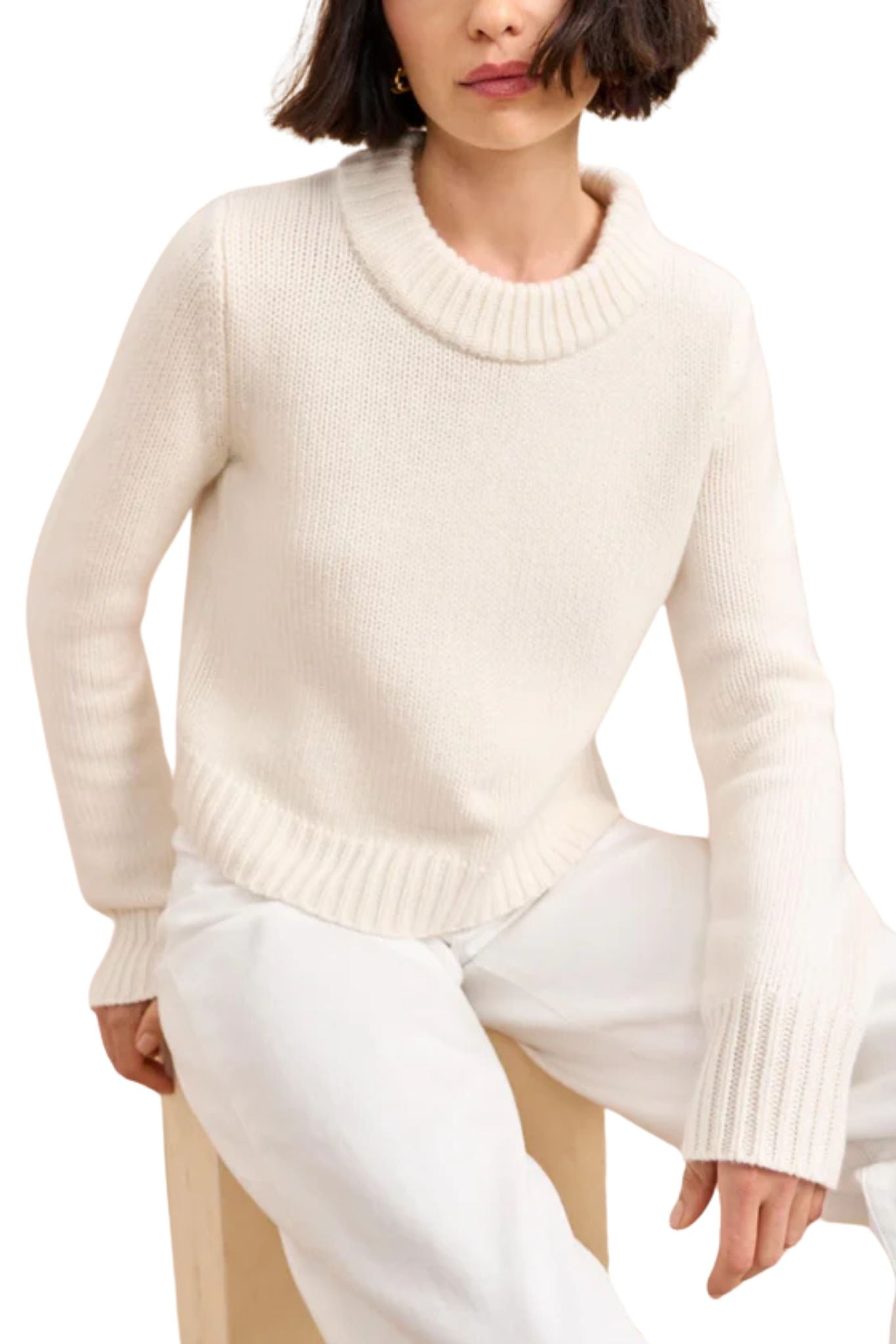 Our infamous Mini Marin Sweater now in solid colors, so get on board (stripes optional) in our best-selling ivory round neck sweater in 7-ply wool-cashmere.. Comfort and style, not mutually exclusive.