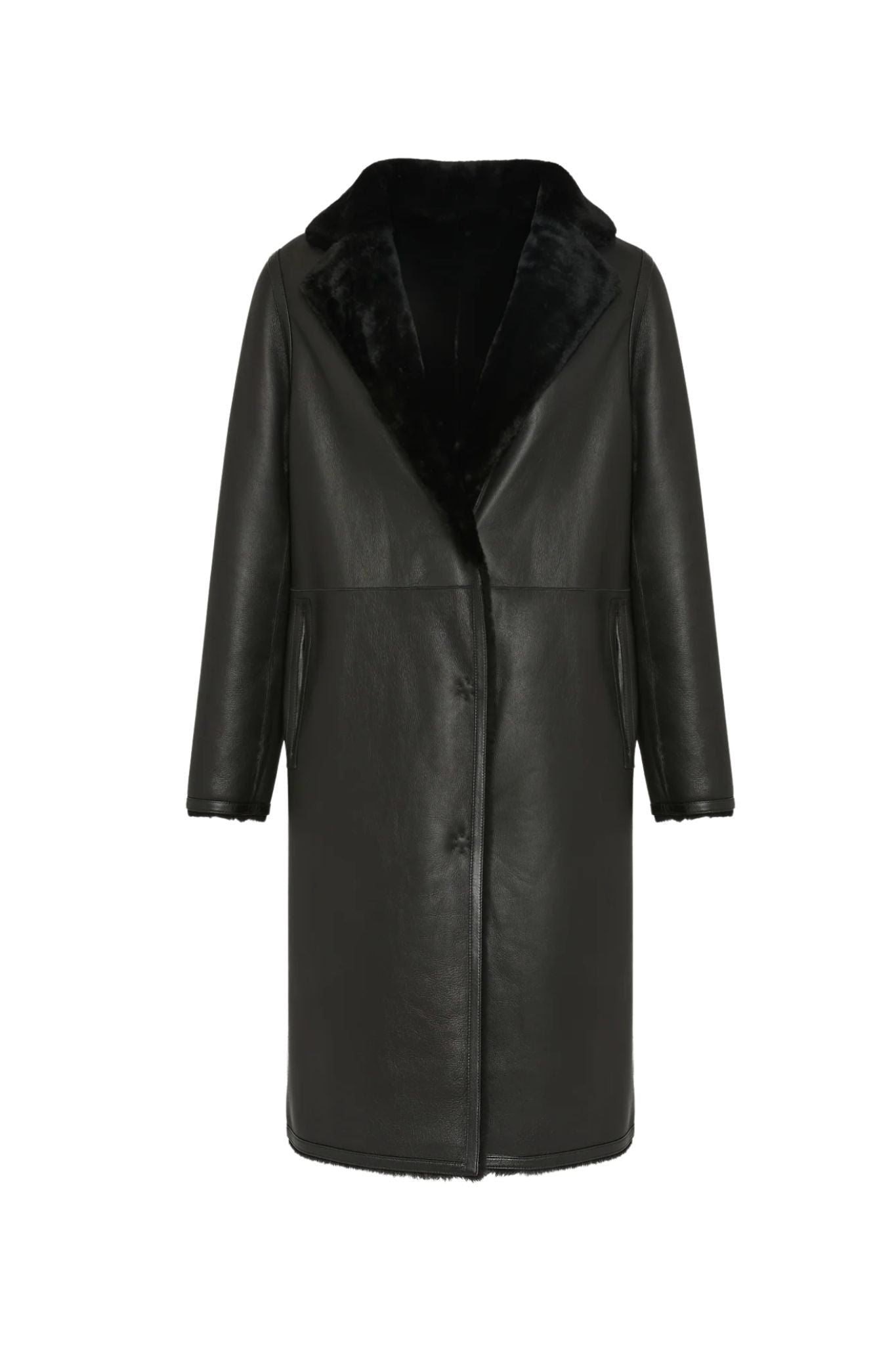 Long reversible shearling coat featuring a masculine feminine look crafted from merino with one side in smooth leather. Warm and enveloping, it remains supple and easy to wear. Design details include a tailored collar, a straight cut, two slit pockets and a front press-stud fastening for a pared back silhouette. An elegant yet functional coat to embrace winter with ease and style.