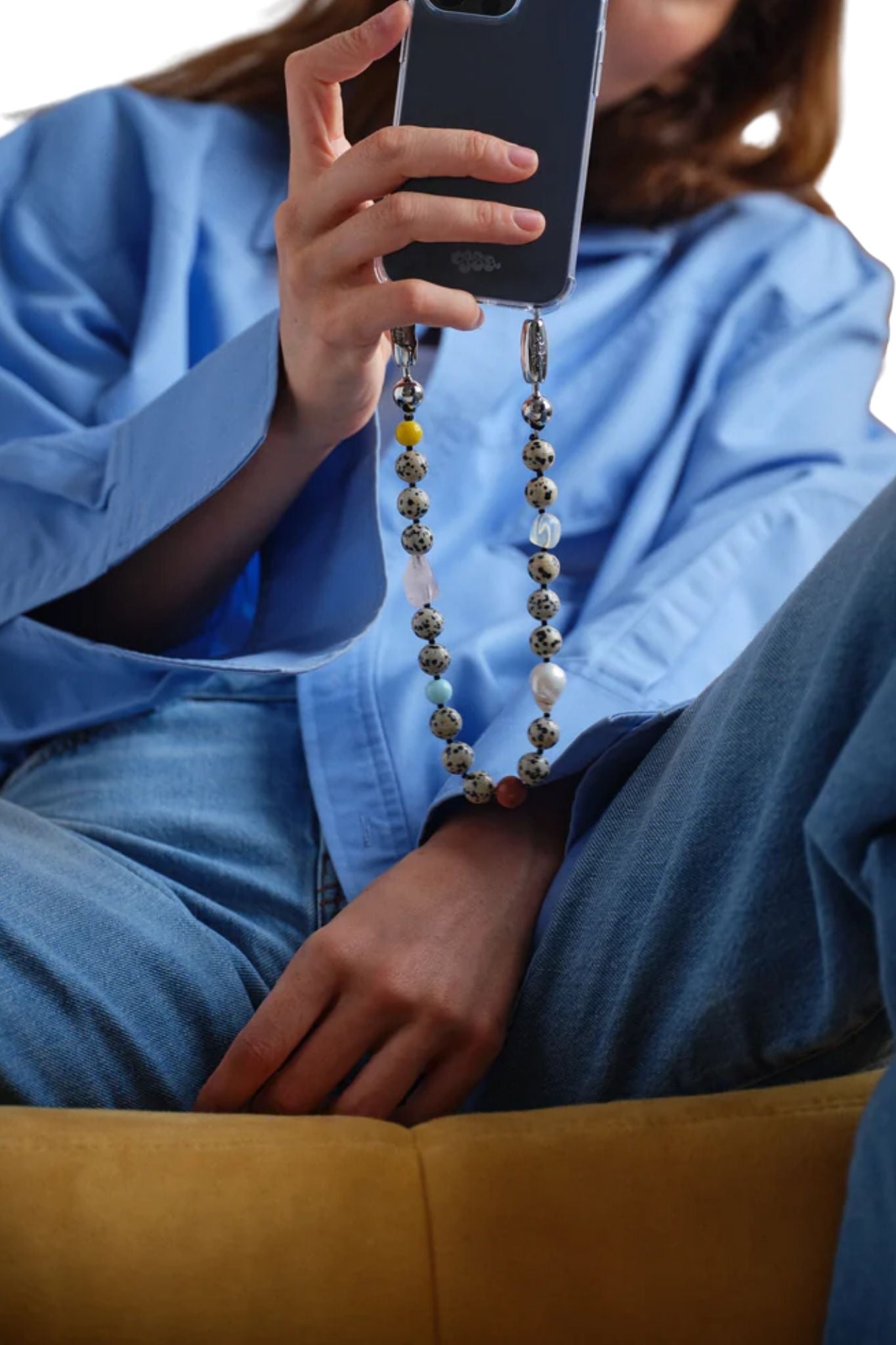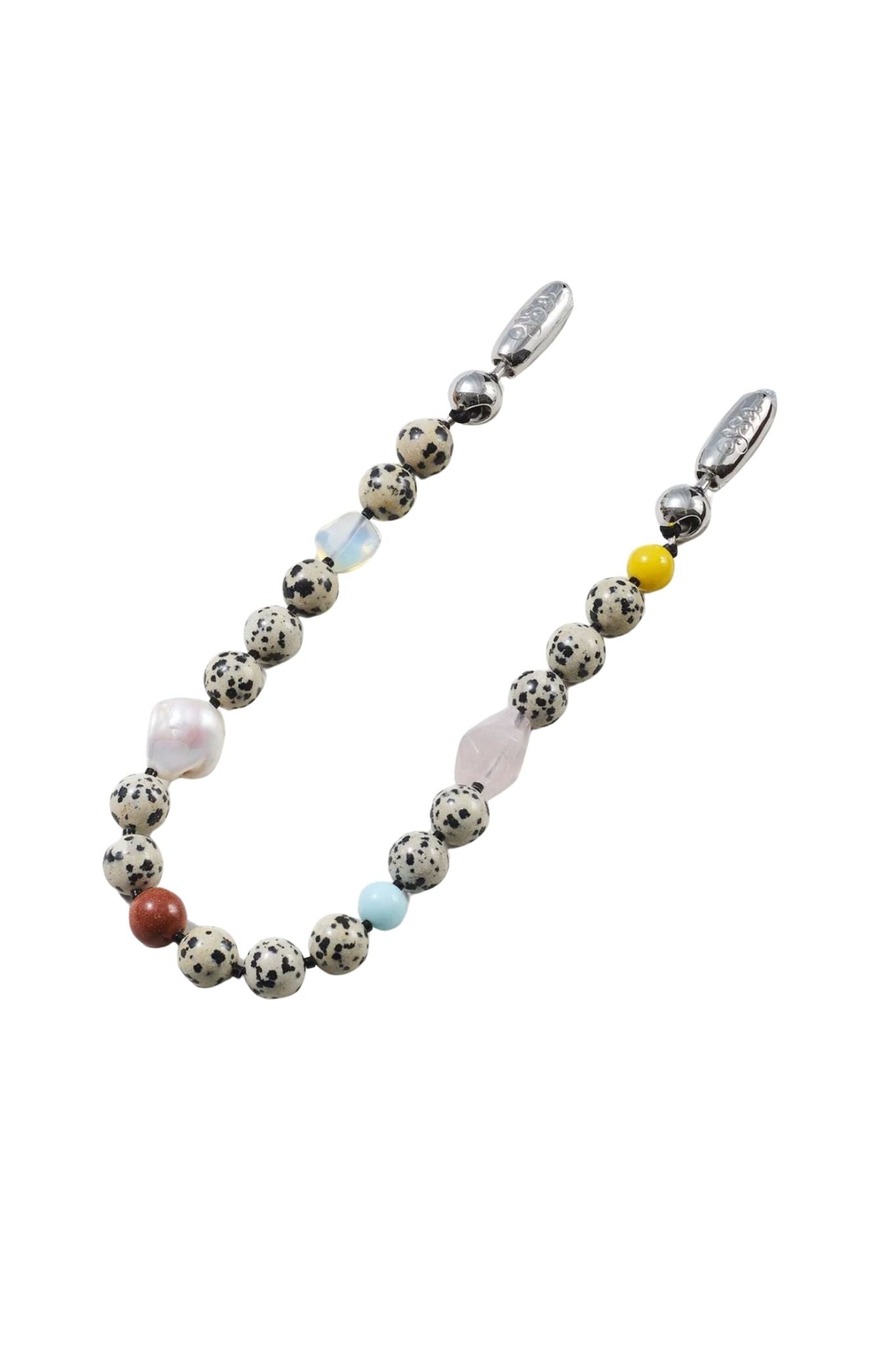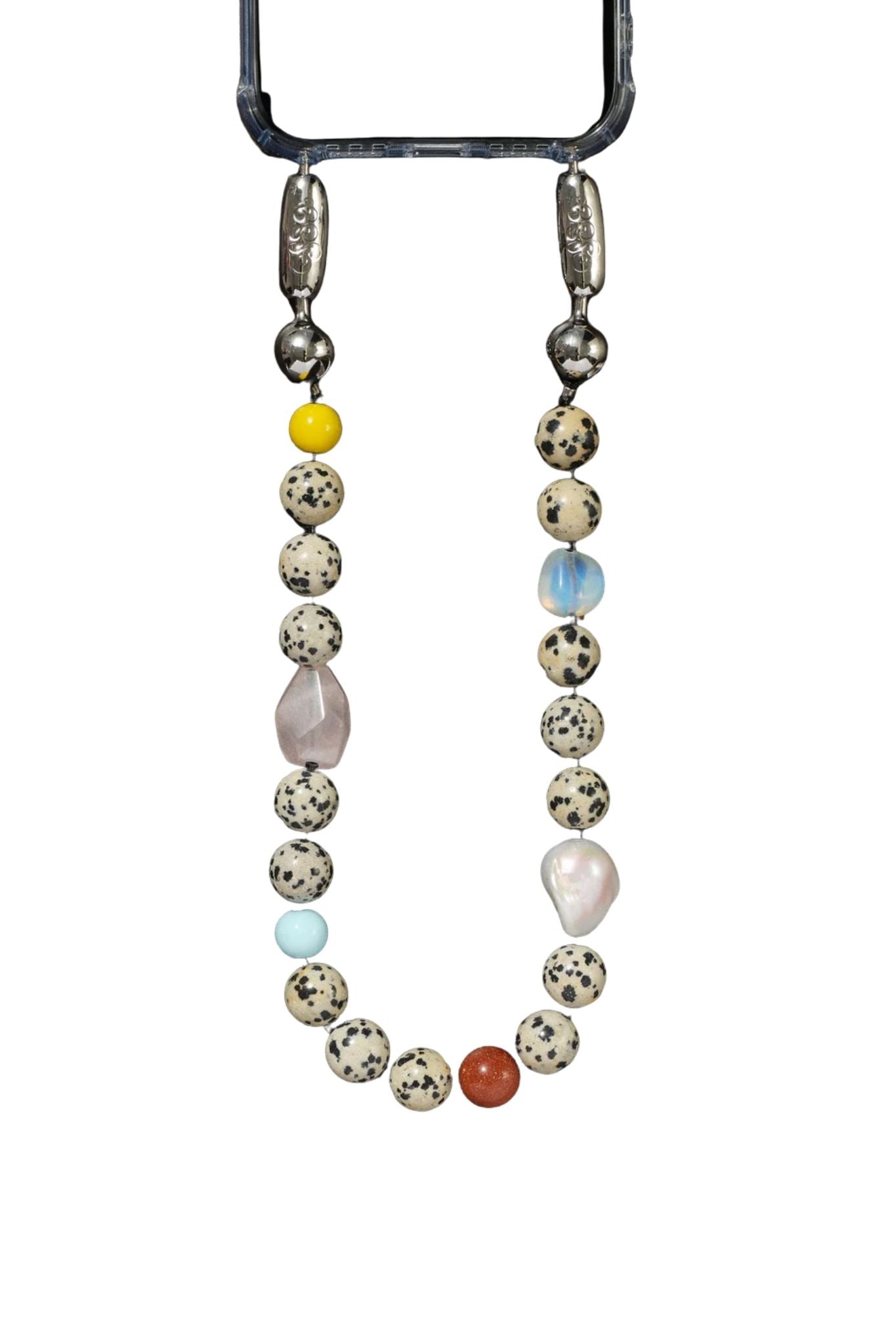 Variety of gemstone beads, Strung together with metallic accent seed beads.