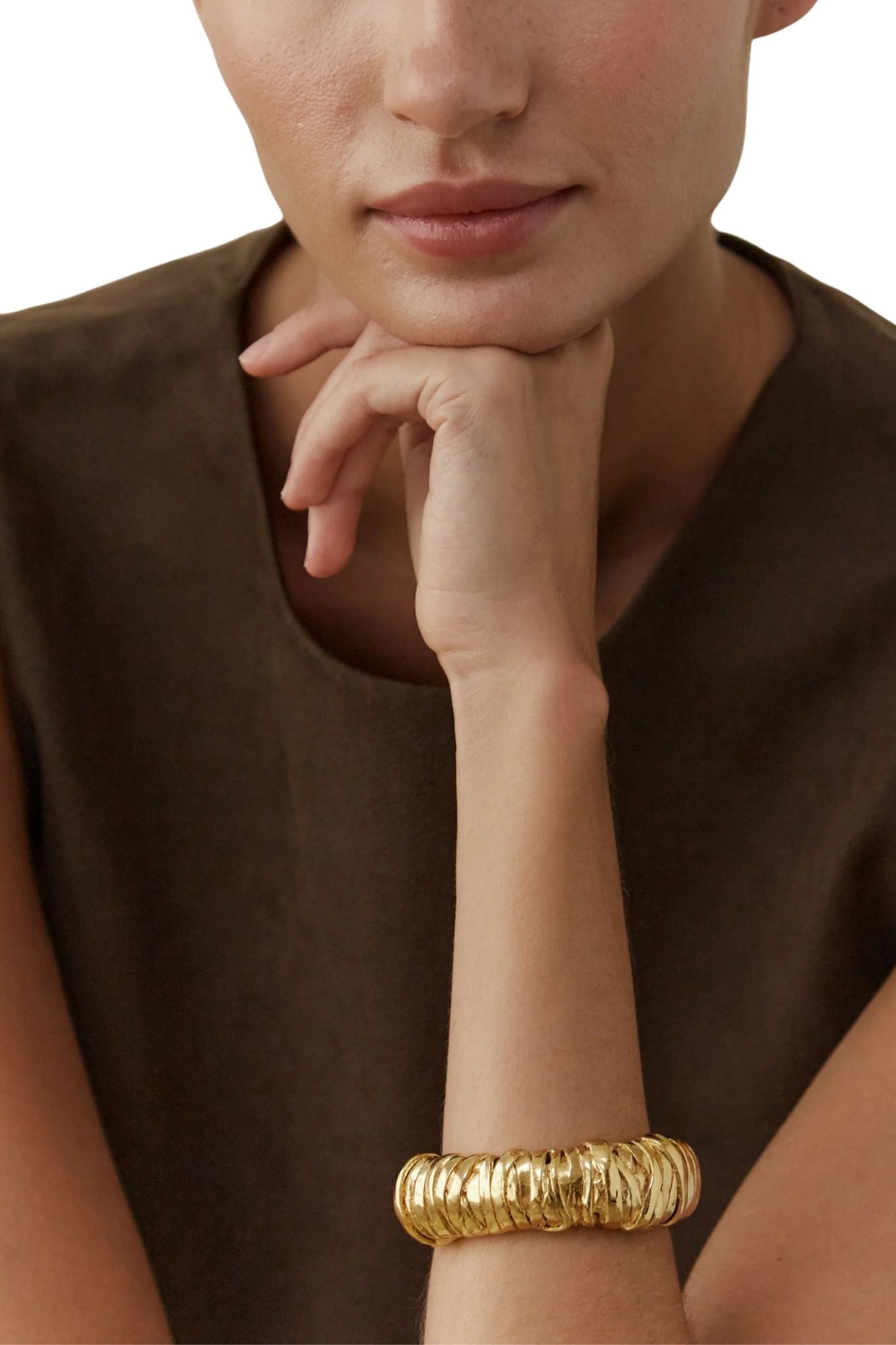 Add a touch of glamour to your wrist with this stunning handmade 18kt gold plated pewter metal bracelet. Elevate your everyday style with this exquisite bracelet, designed to add a touch of understated luxury and sophistication to any outfit, ensuring you radiate confidence and elegance with every step you take.