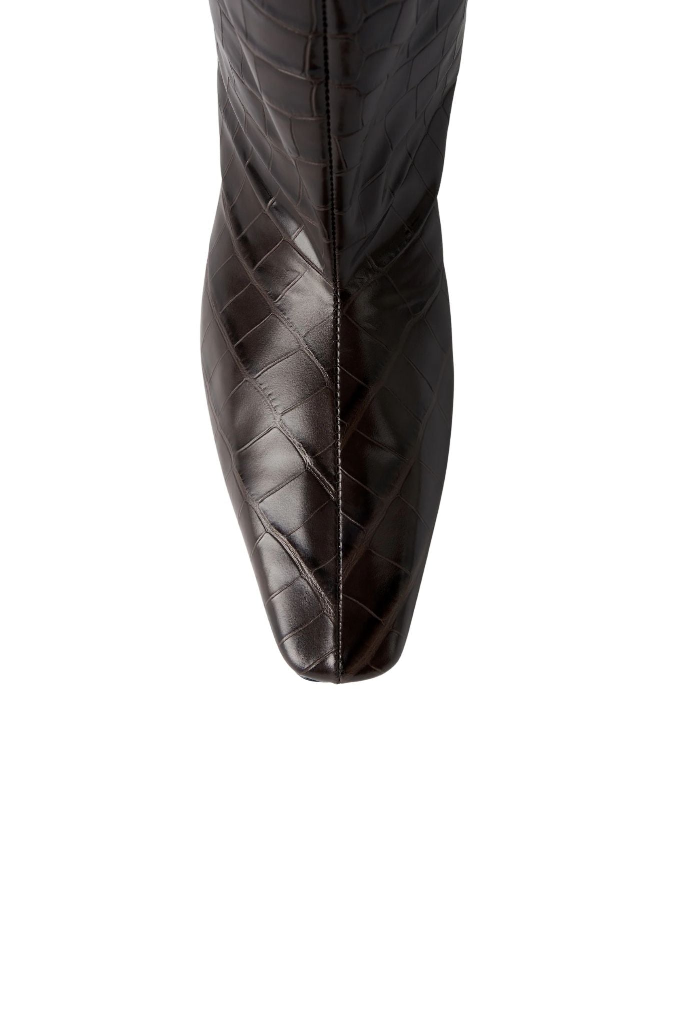 TOTEME boots named after their statement silhouette, outlined with a wide, tall shaft. They are crafted in Italy from crocodile-embossed leather with a squared point toe and a covered heel and are lined in soft leather. Wear them with midi dresses or tucked-in trousers.