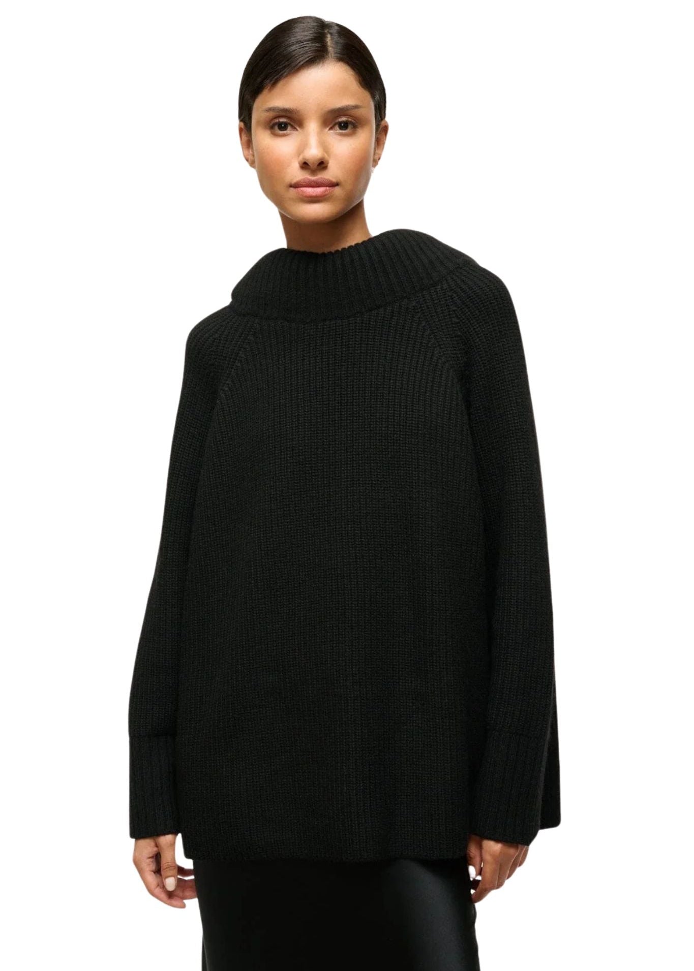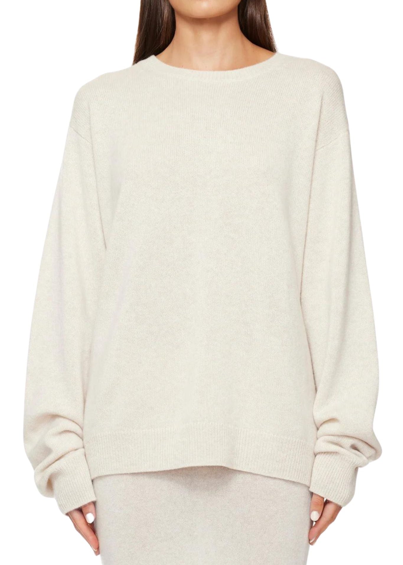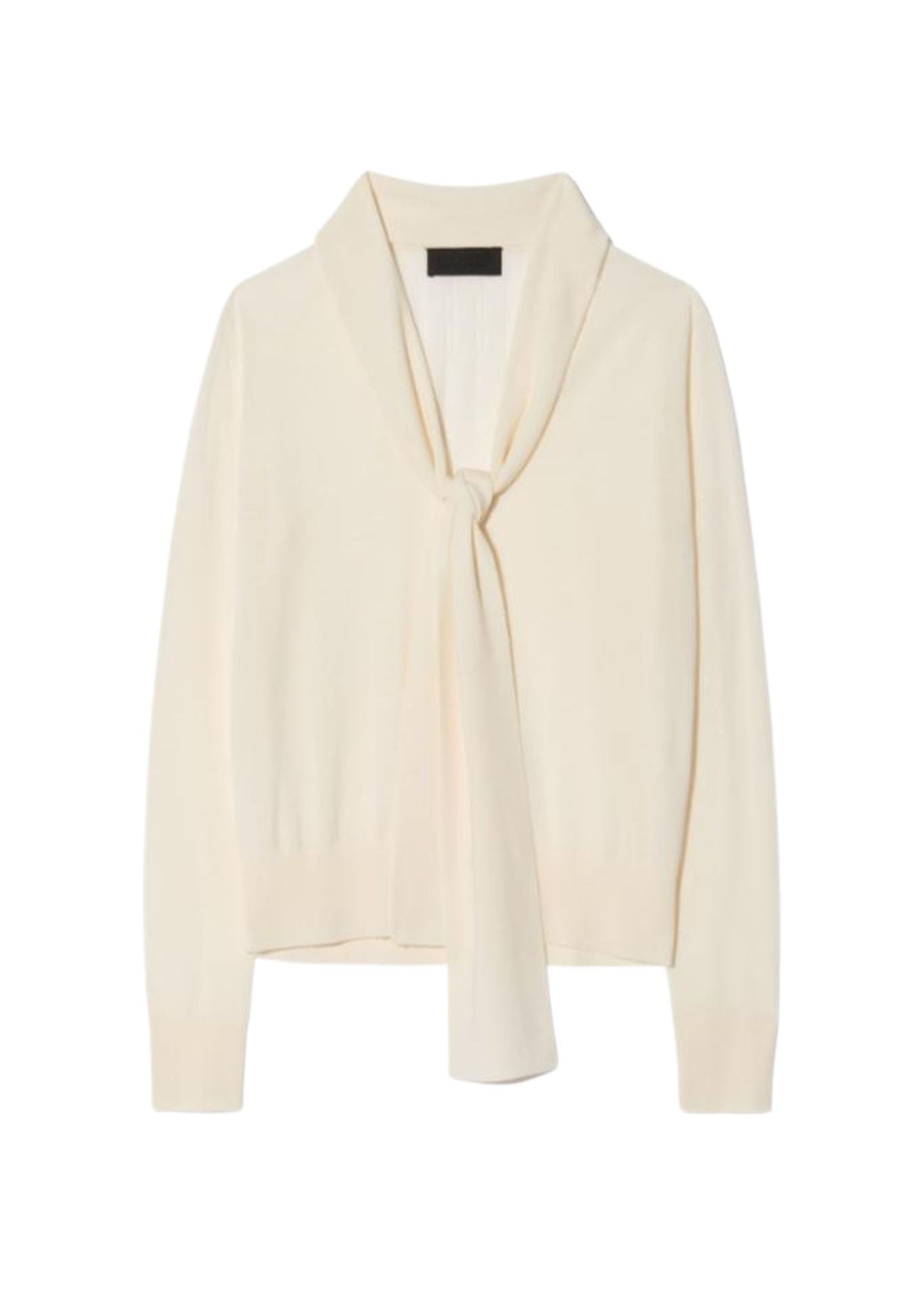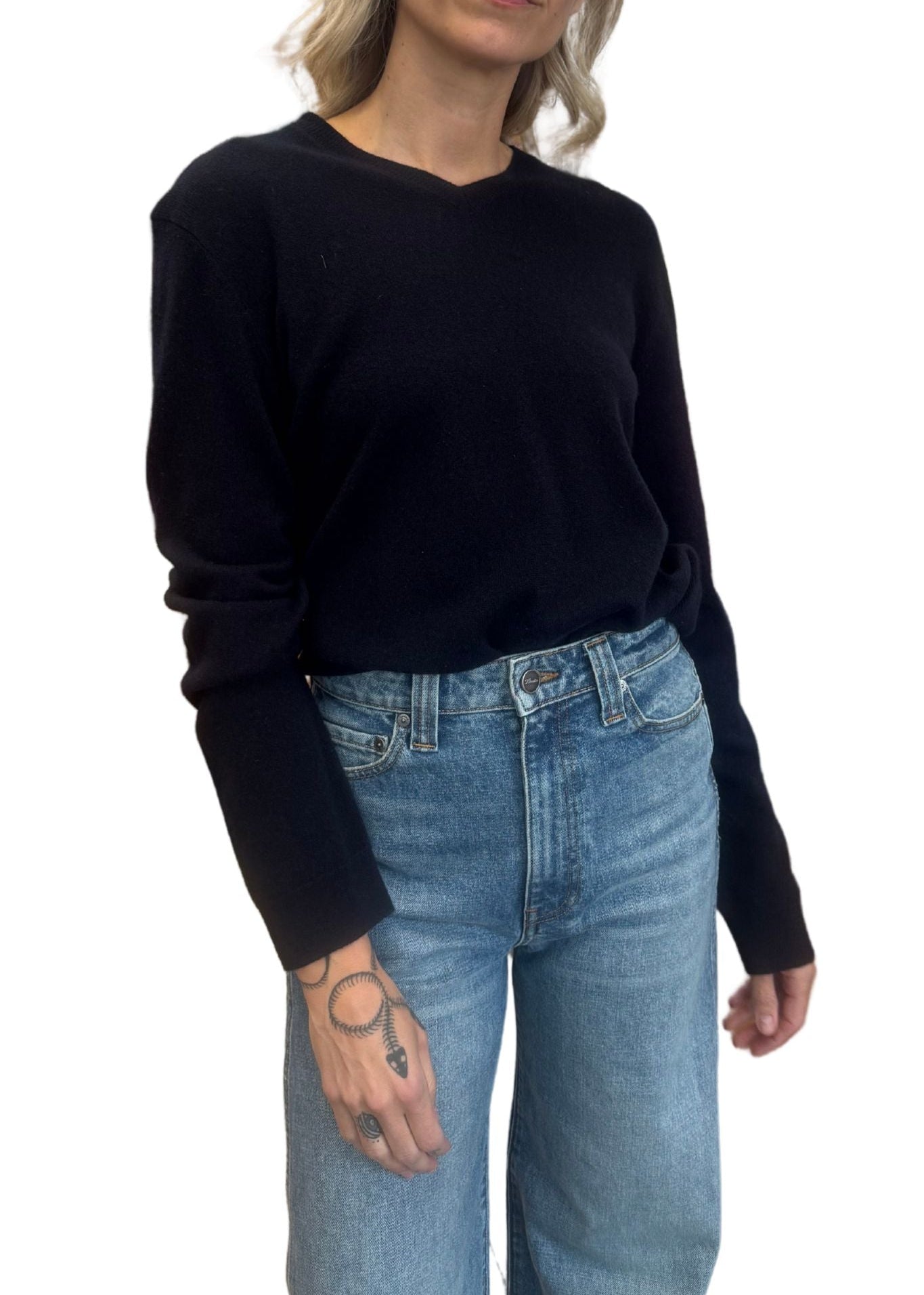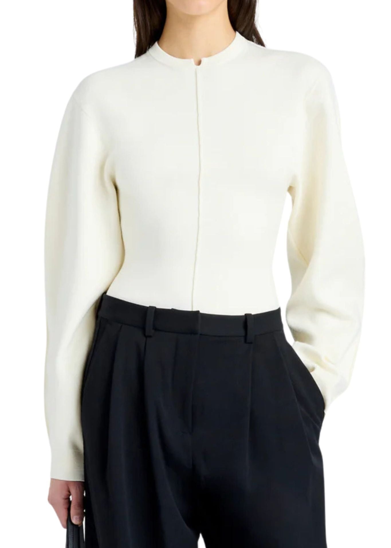 Tibi Cardigan Stitch Split Front Crewneck Easy Pullover