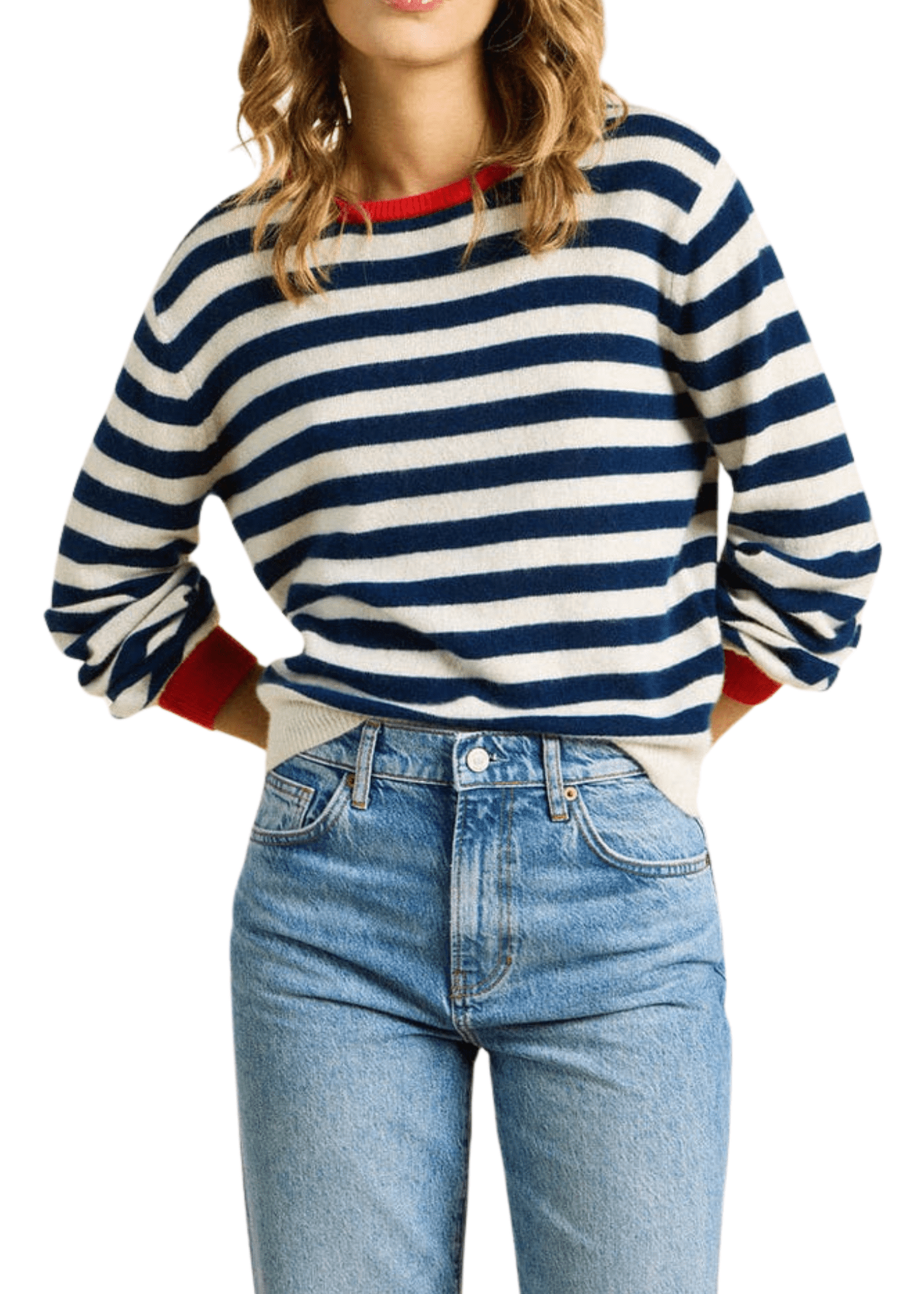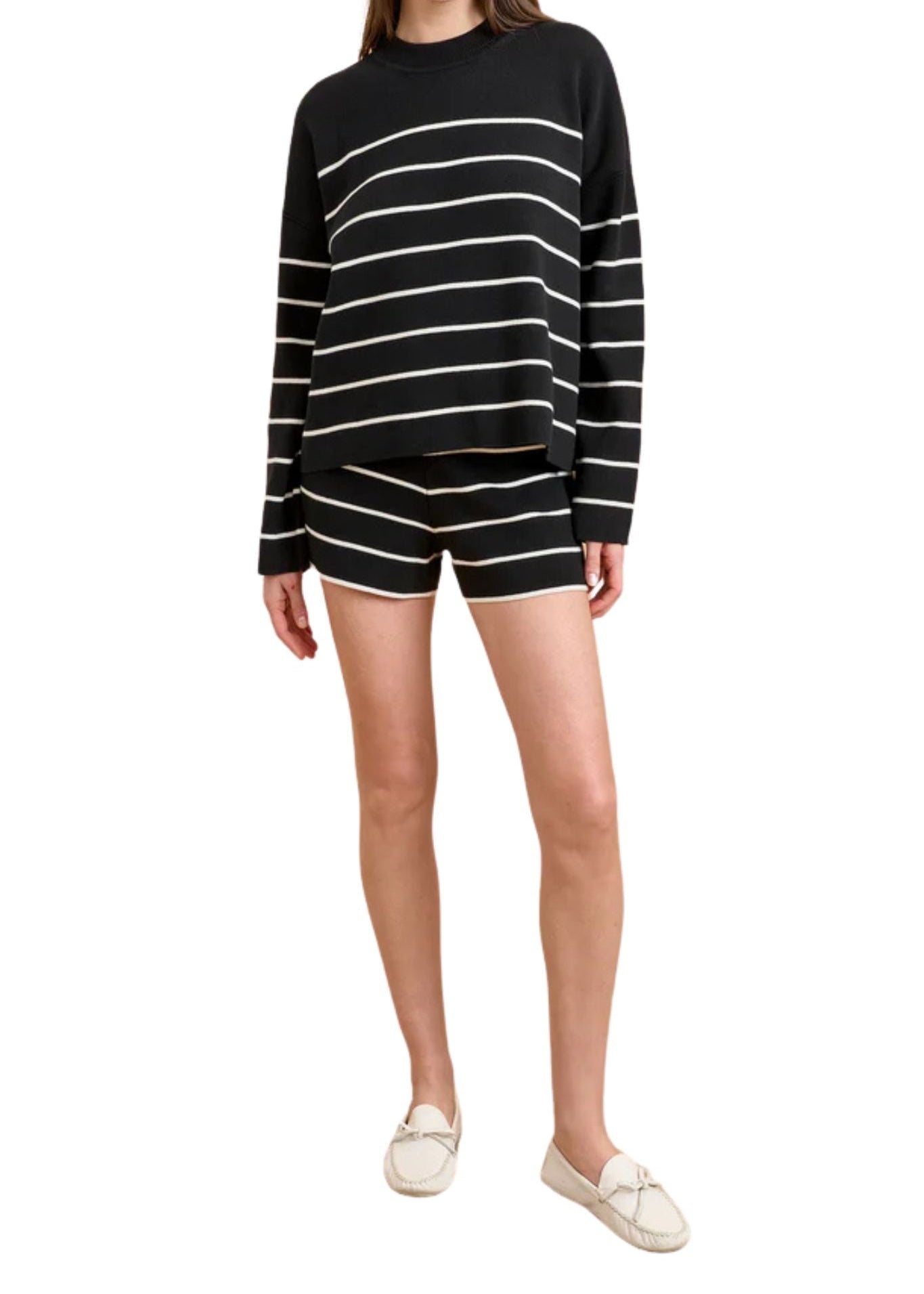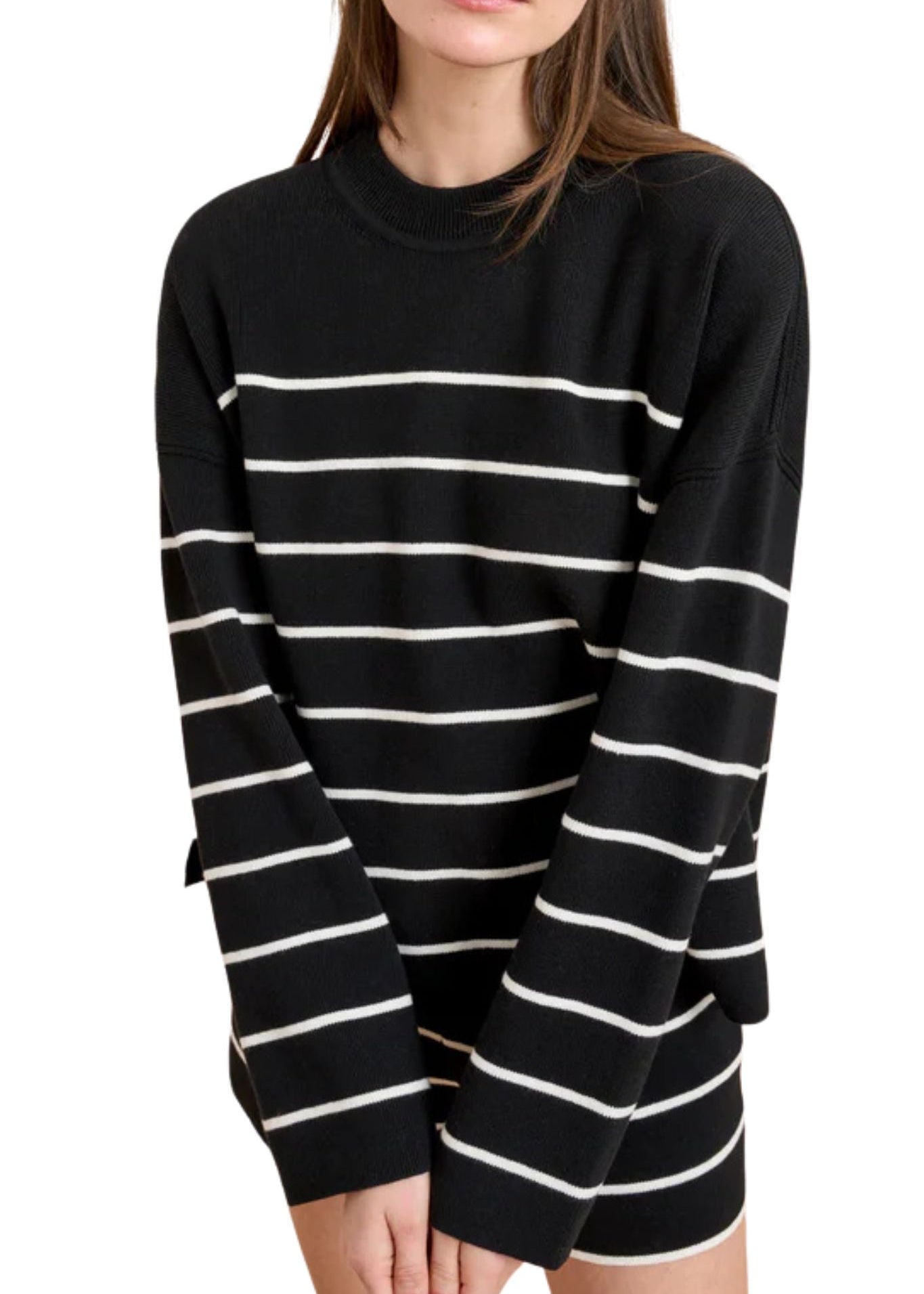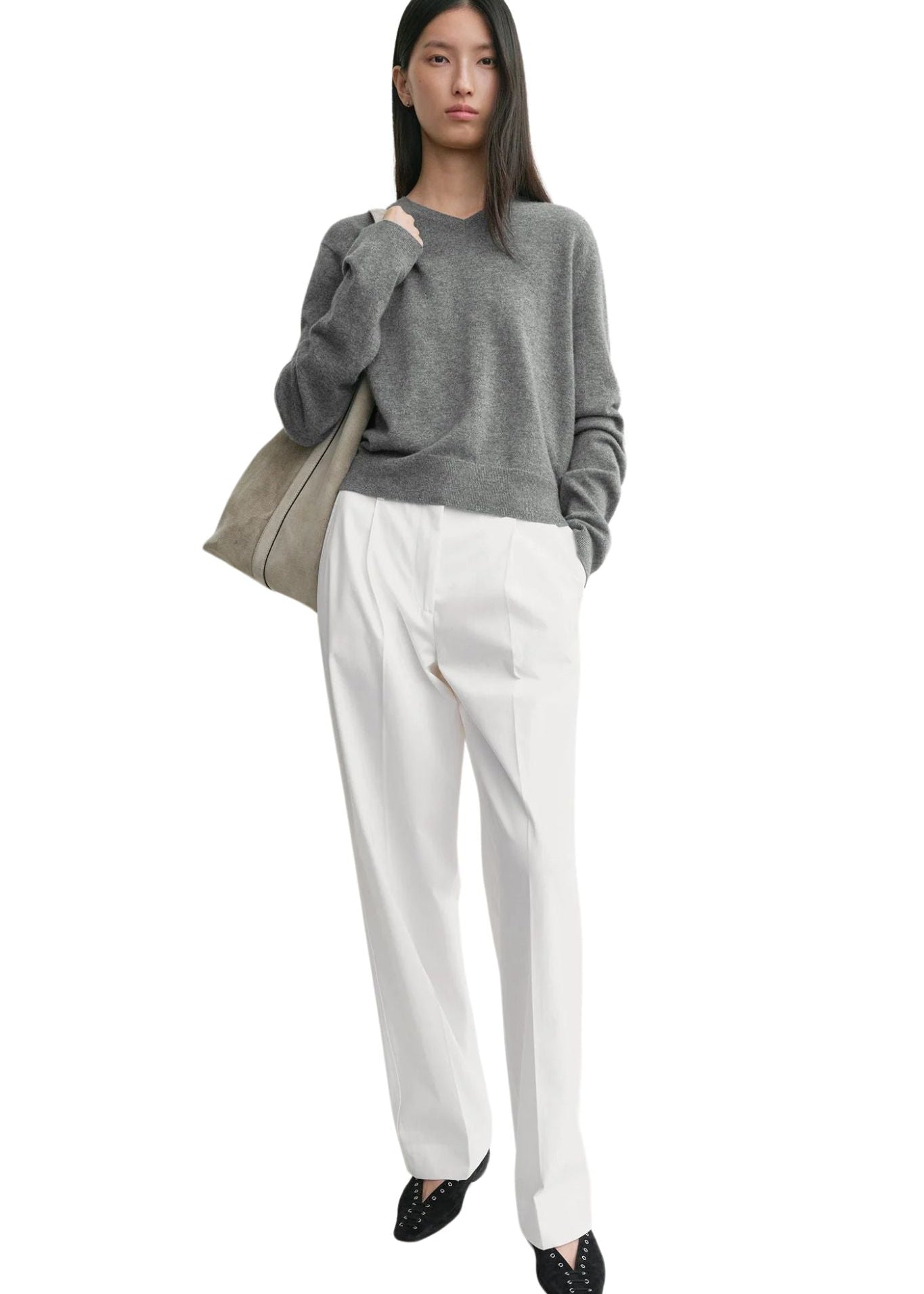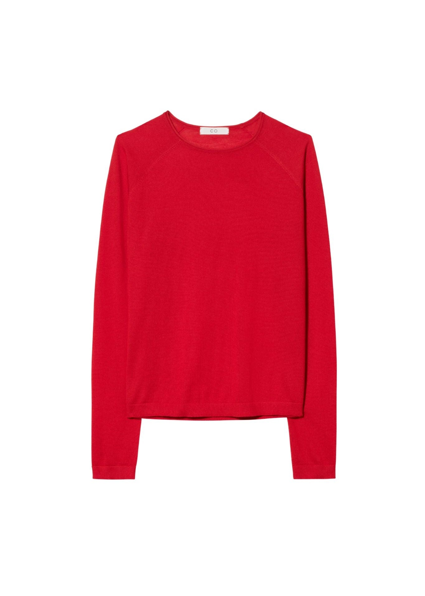 Tibi Cardigan Stitch Split Front Crewneck Easy Pullover