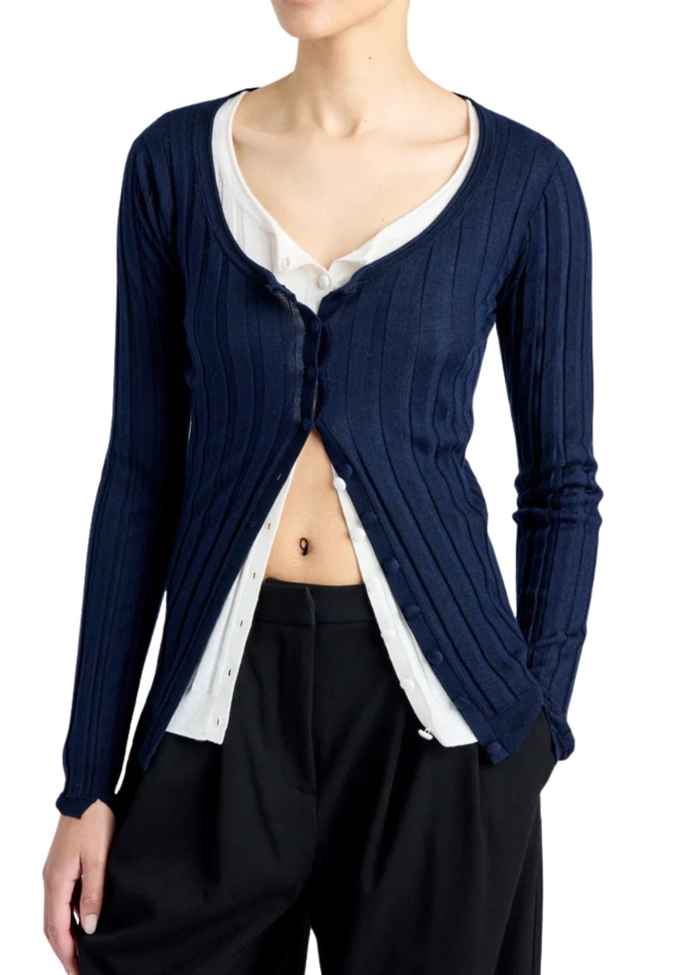 Tibi Cardigan Stitch V Neck with Removable Dickie