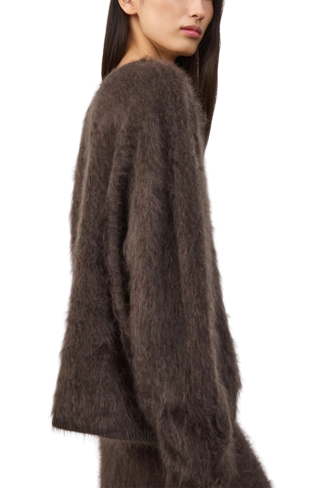 The Margareta sweater has an elegant v-neckline that's framed by a relaxed silhouette and full, long sleeves. Detailed by slim trims, the brushed cashmere makes this a subtle, standalone piece for Autumn and Winter