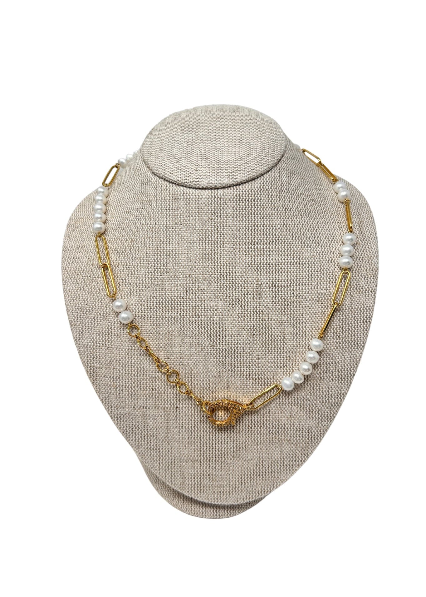 V103 The Woods Pearl and Brass Link Necklace