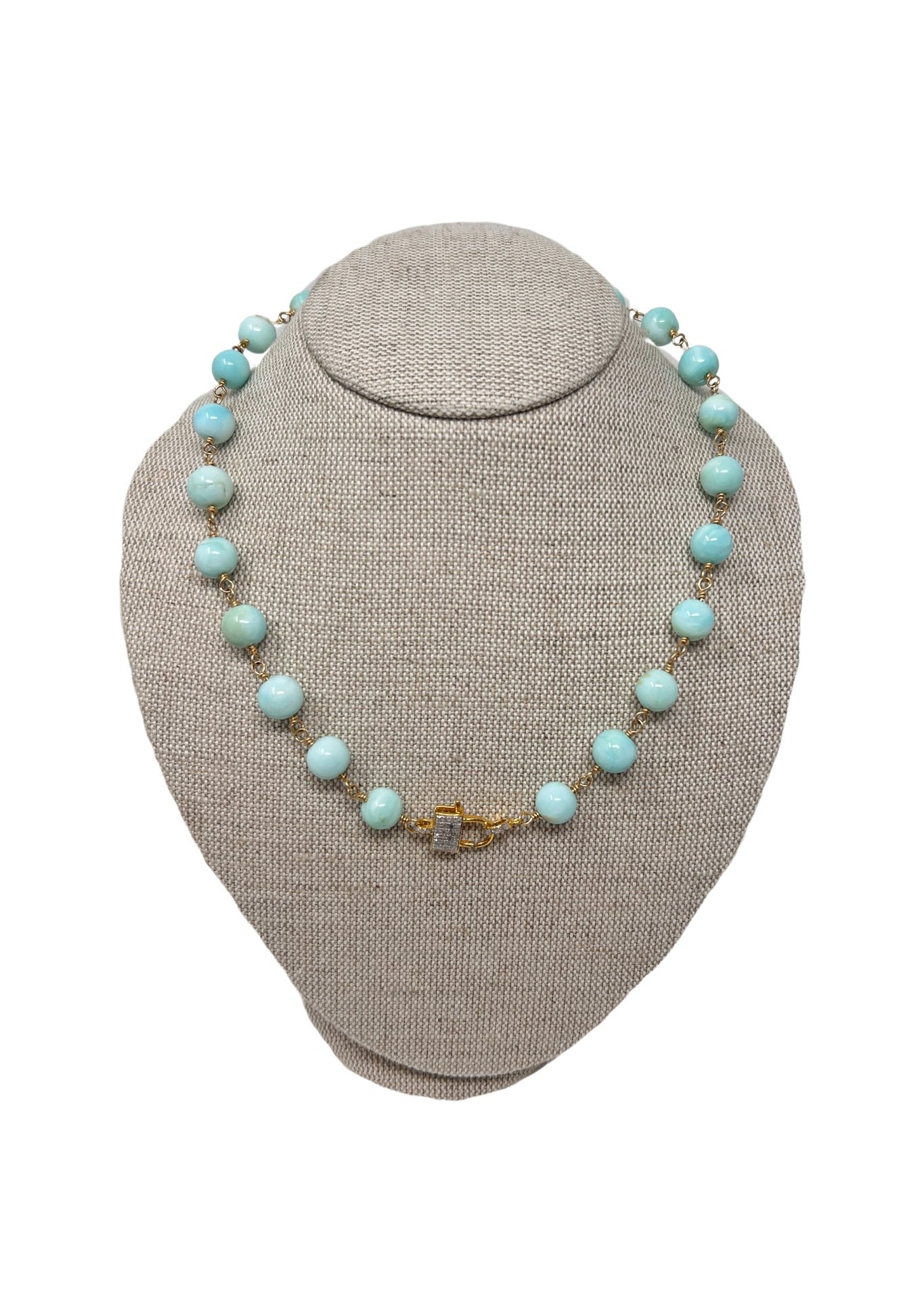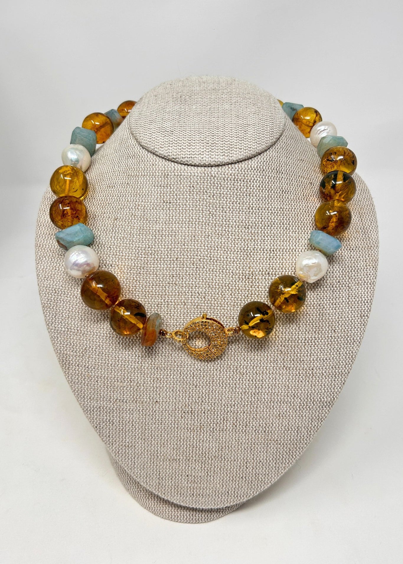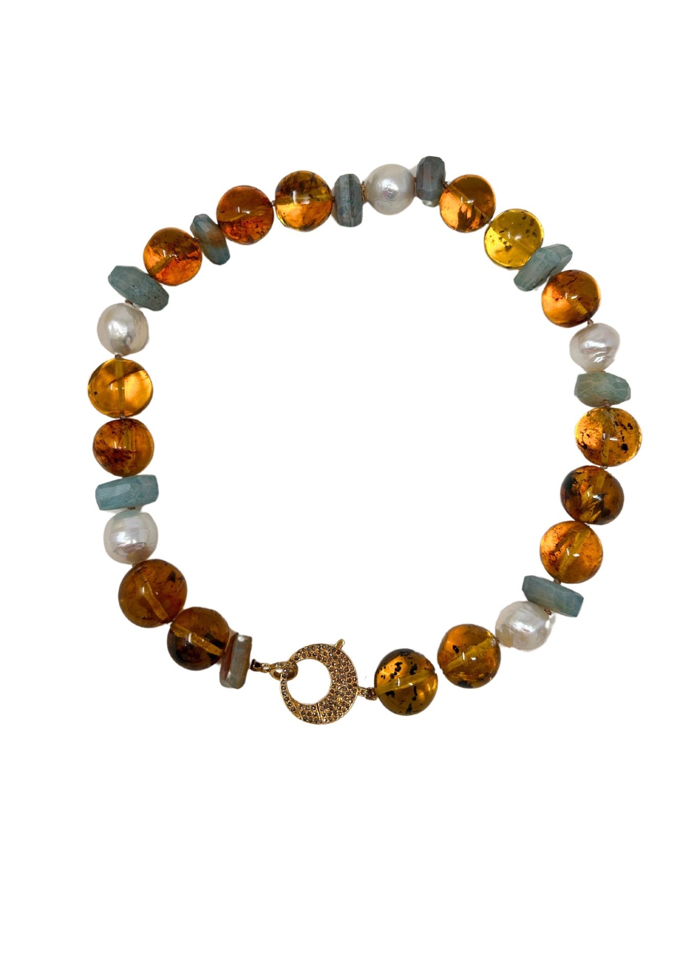 V110 The Woods Short Amber, Pearl and Amazonite Necklace