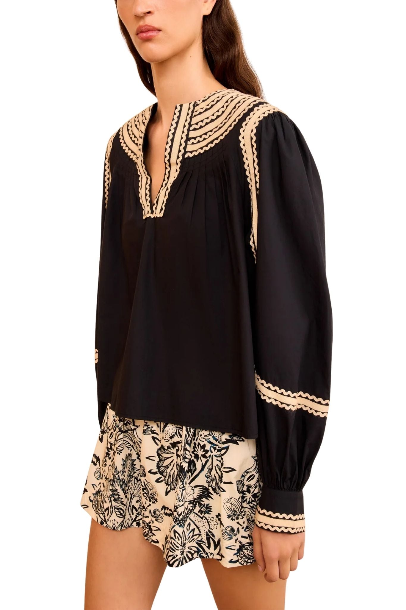 The Laurenza Long Sleeve Top from Ulla Johnson blends effortless elegance with signature detail. Designed in a fluid, lightweight fabric, it features subtle gathers, voluminous sleeves, and a softly draped silhouette that flatters every shape.