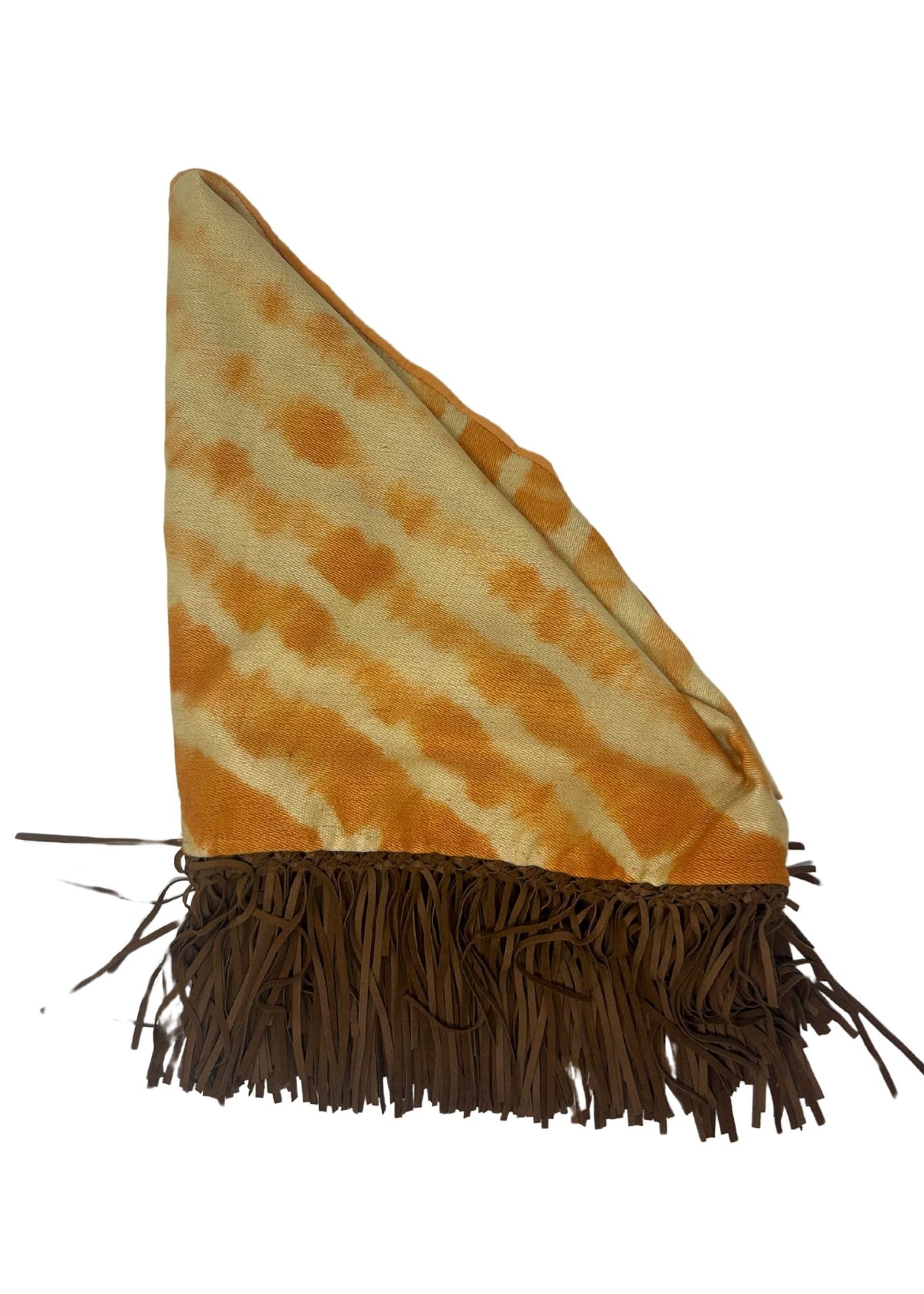 Bajra Framed Satin Weave Stole w/ dip dye border Fire Fish