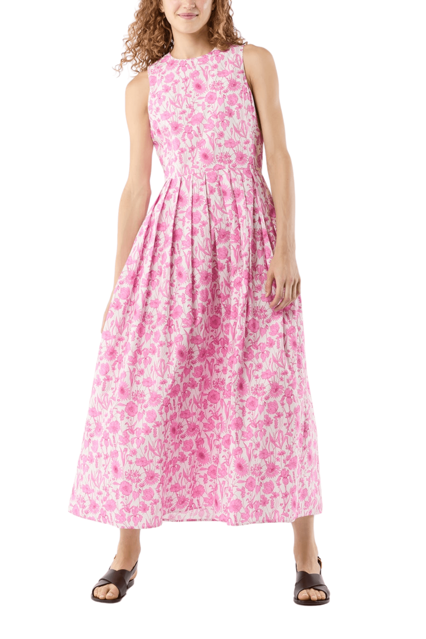 An easy, feminine sundress kicked up a notch with a pretty pleated skirt and a trapunto self-tie belt. Just pair them up with some strappy K. Jacques and you've mastered Ann's spring uniform to a tee. Simple and chic.