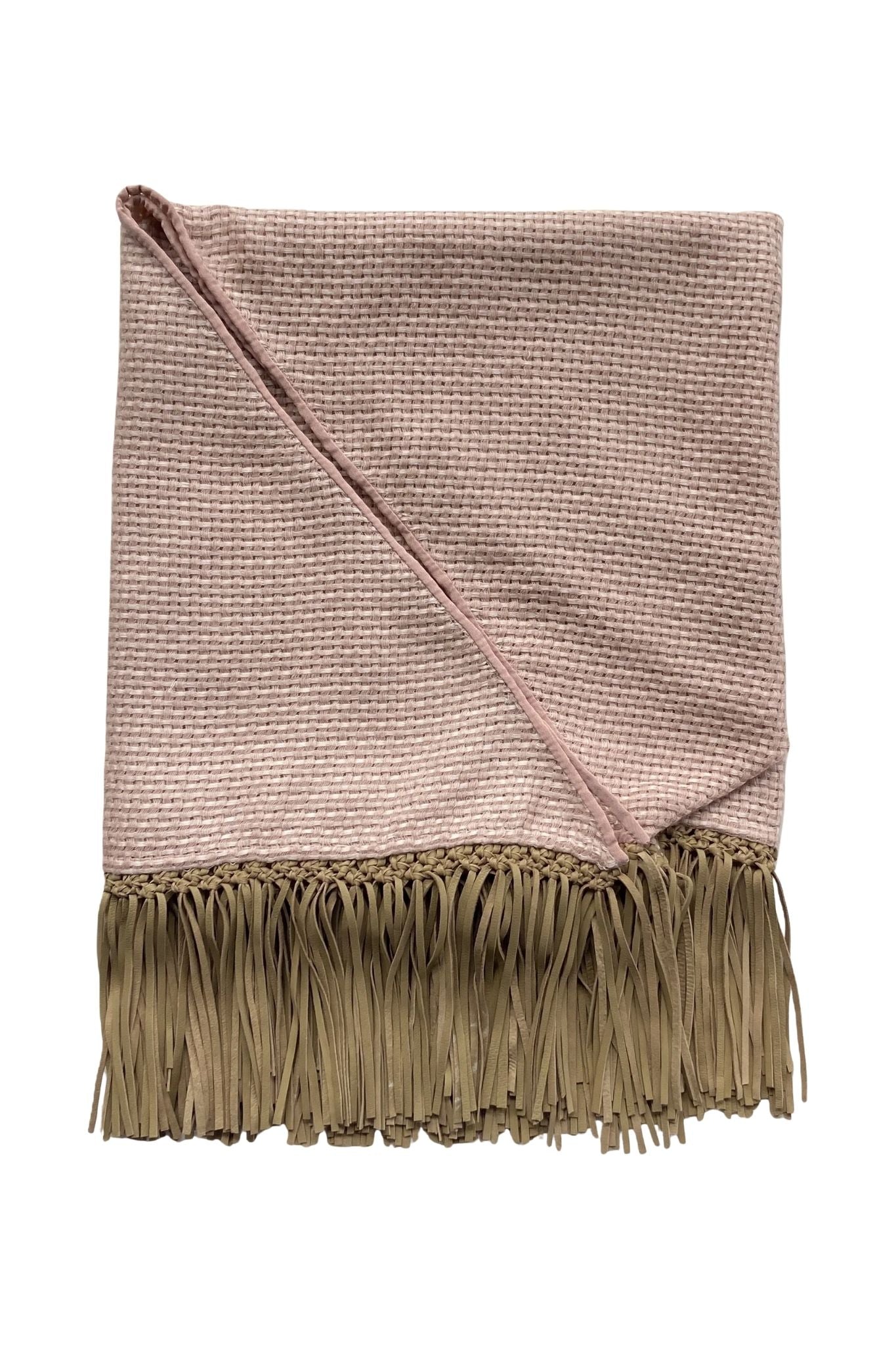 BAJRA Old Rose Cashmere Basket Weave Triangle Scarf with Saddle Tan Suede Fringe
