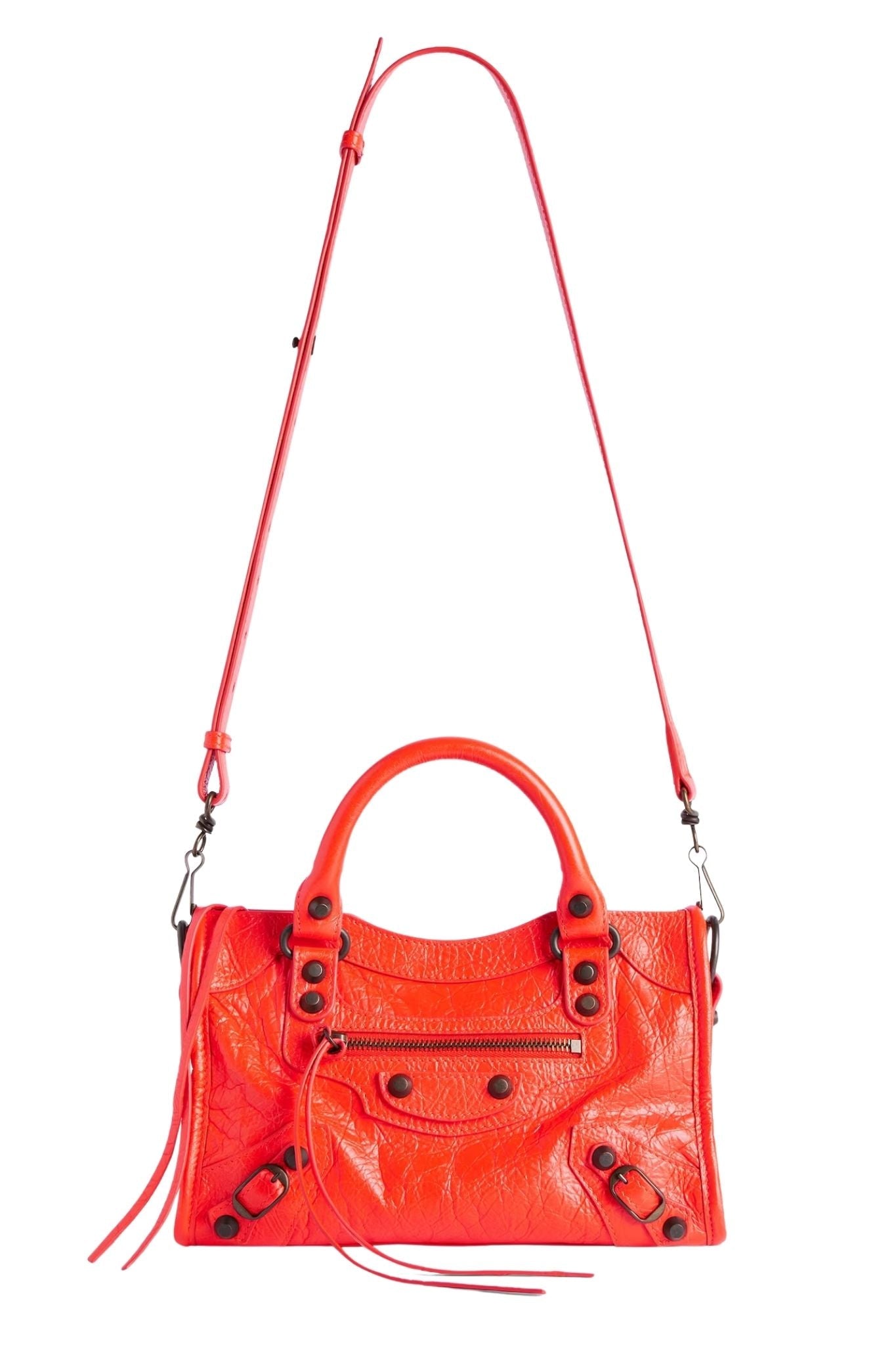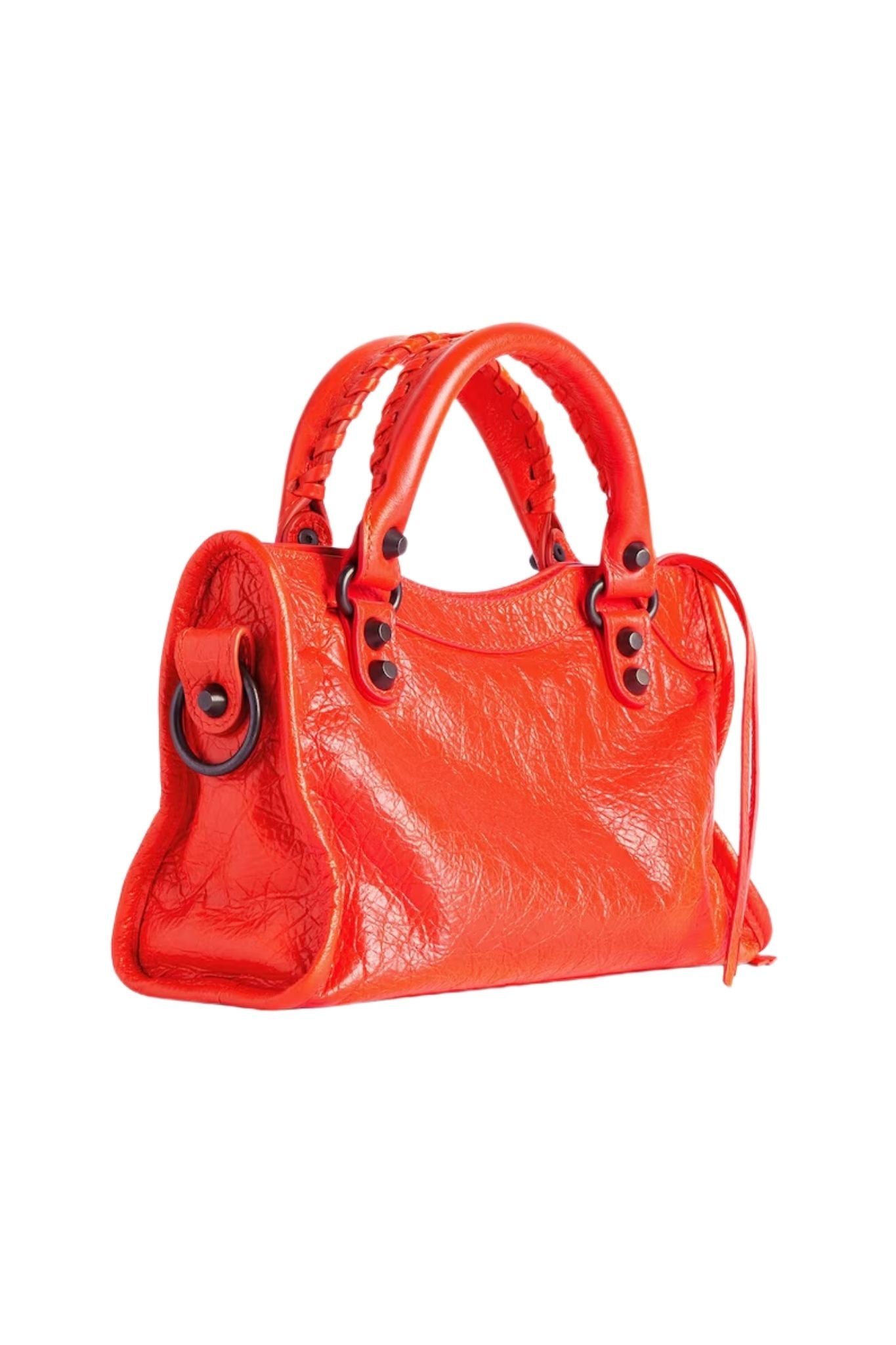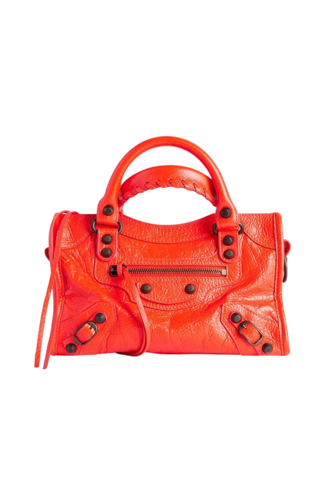 Le City Bag Mini in pop orange Arena Storico lambskin, brass hardware.
