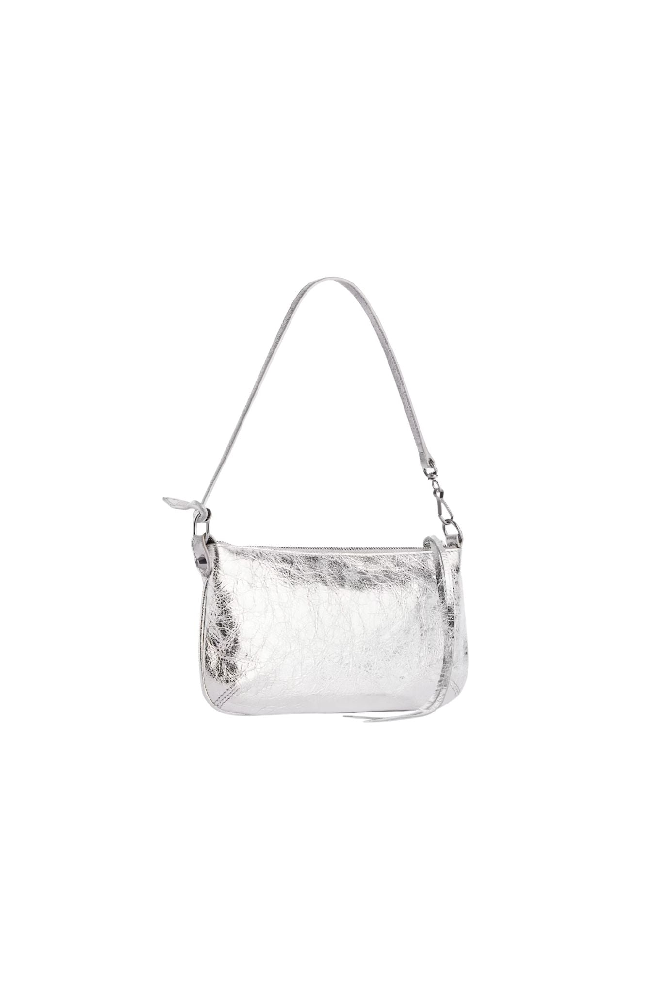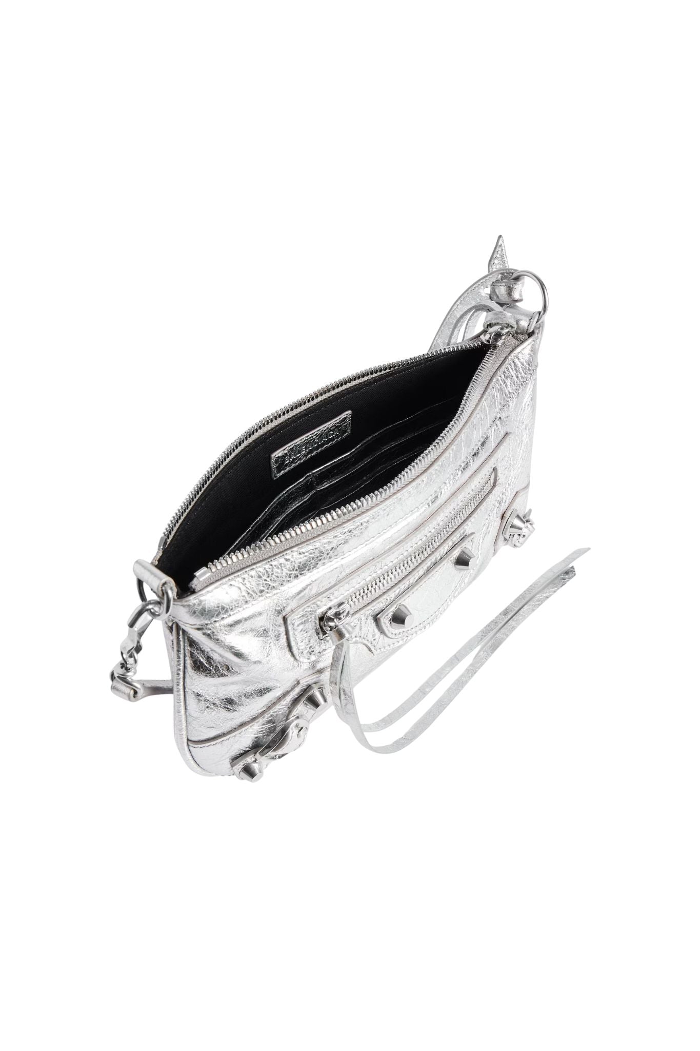 Le City Pouch On Strap in silver metallized Arena Storico lambskin, shiny silver hardware.