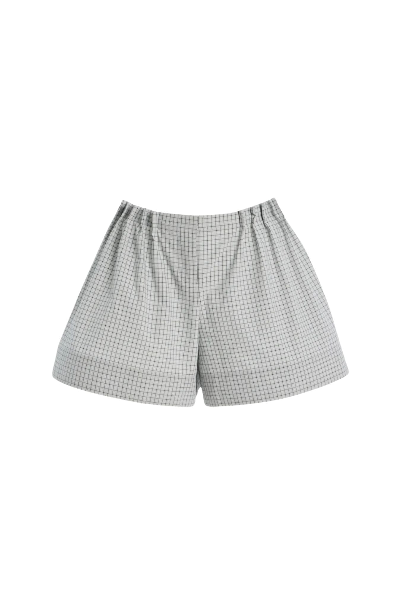 These voluminous shorts are cut from a hand-drawn, yarn-dyed banker’s check with a crisp, modern hand. Designed with soft pleating and a relaxed leg, the silhouette feels effortless while a fused hem band maintains a clean, architectural shape. Finished with merrowed seam edges and a tailored zip closure, they balance polish and ease, styling effortlessly with elevated shirting or relaxed knitwear.
