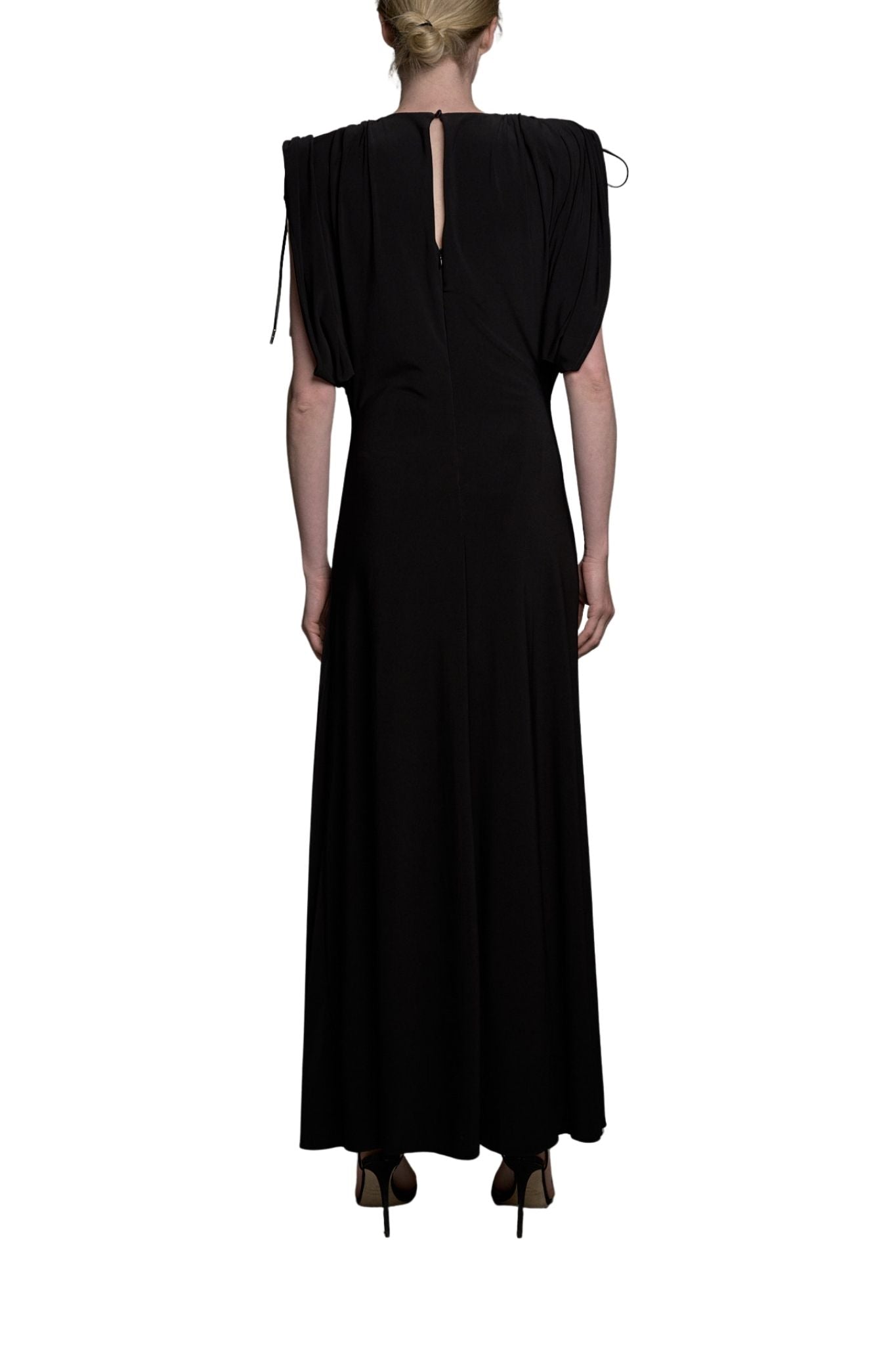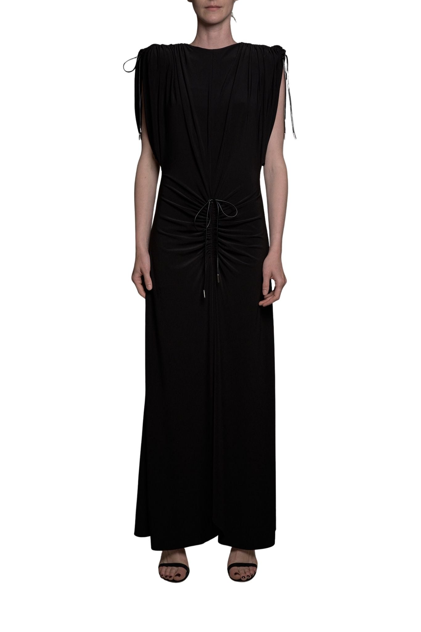 Brandon Maxwell's 'The Sienna' dress is designed with ties along the waist and sleeves that create a gathered, cinching effect. It's cut from black stretch-jersey and skims the figure as it falls to a floaty hem.