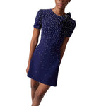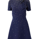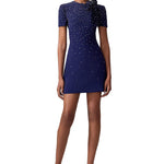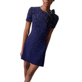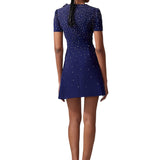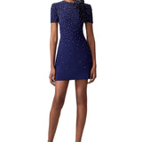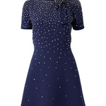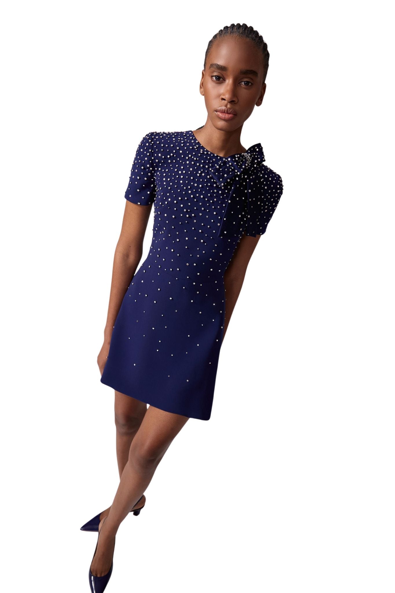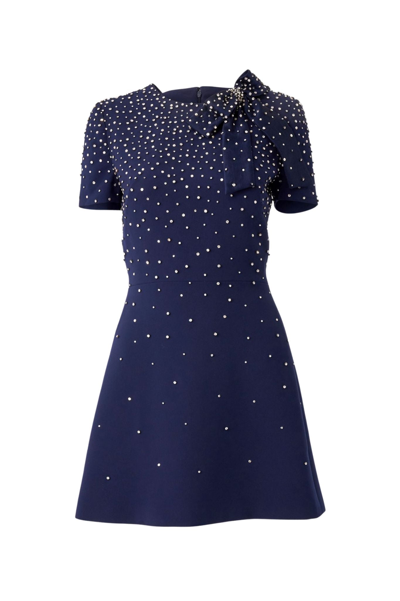 Clusters of embroidered crystals give this crepe mini dress the appearance of a midnight sky, while a satin bow at the collar provides a feminine finish. Concealed zip fastening at the back.
