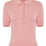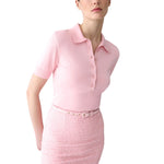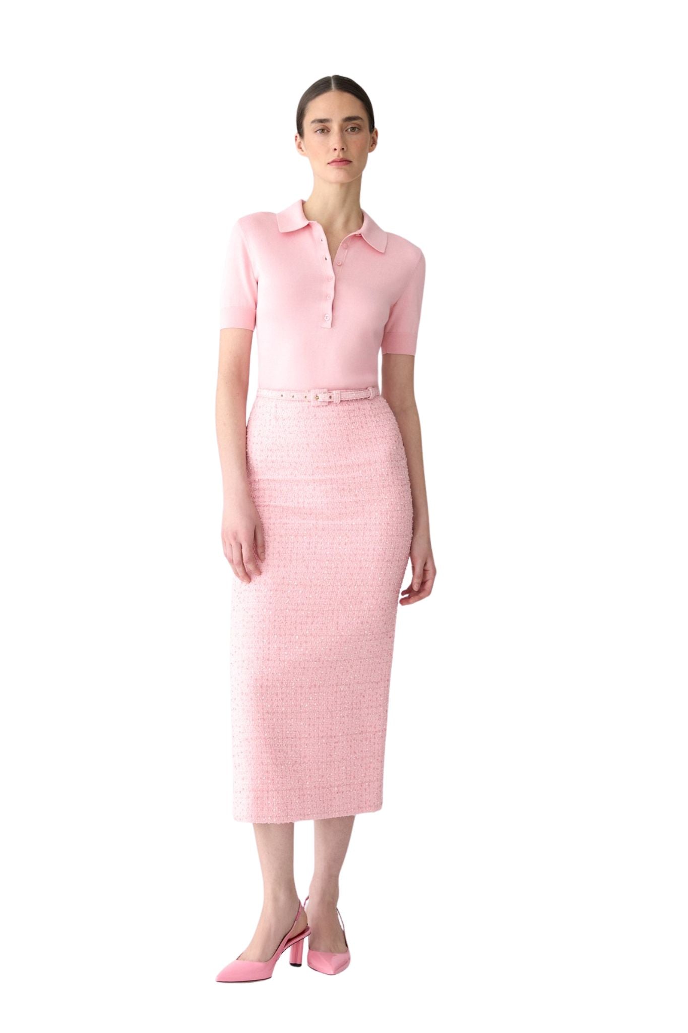 This close-fitting polo shirt is knit from a lightweight silk and cotton blend. Style it with midi pencil skirts from the collection. Buttoned front