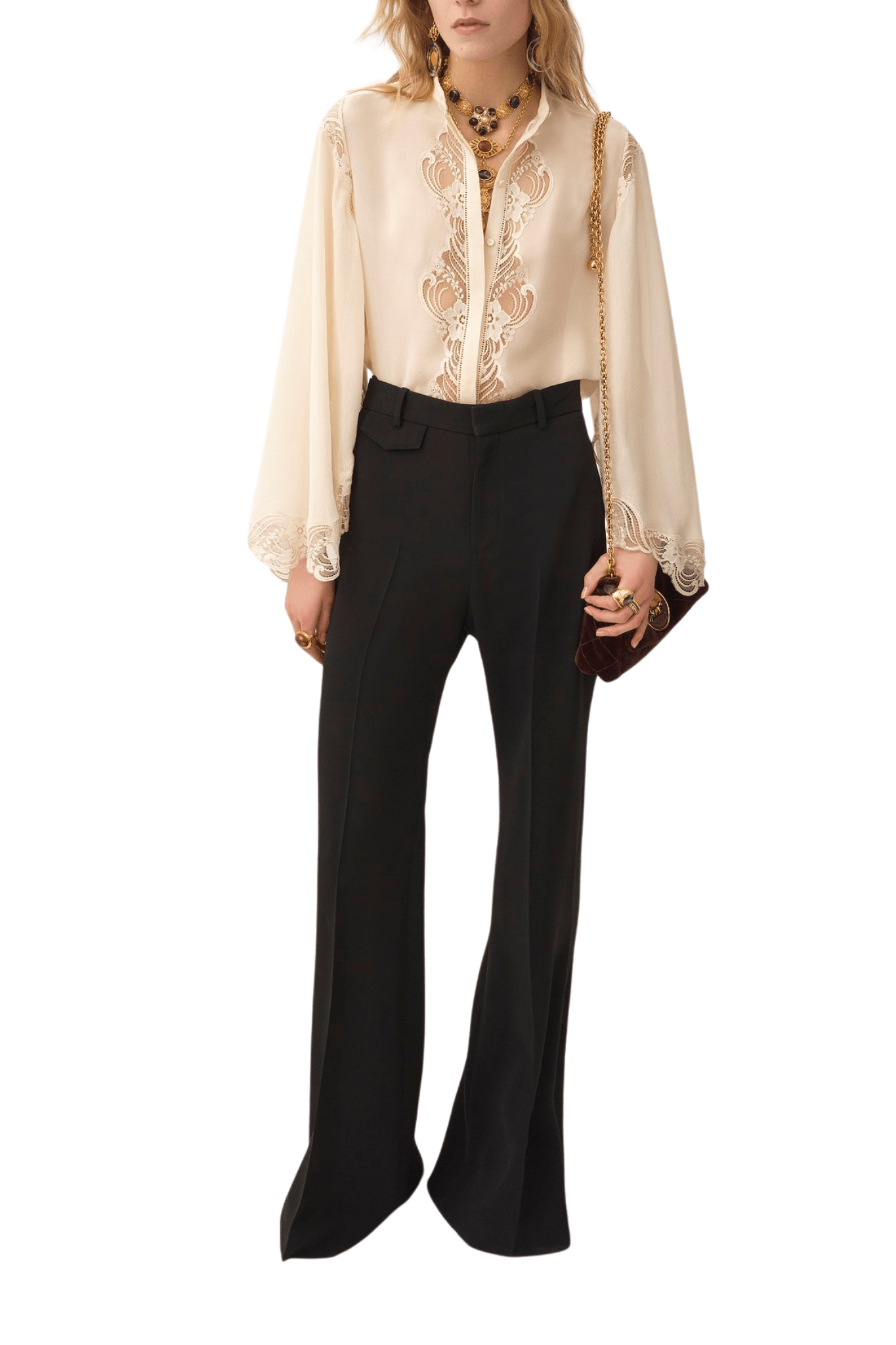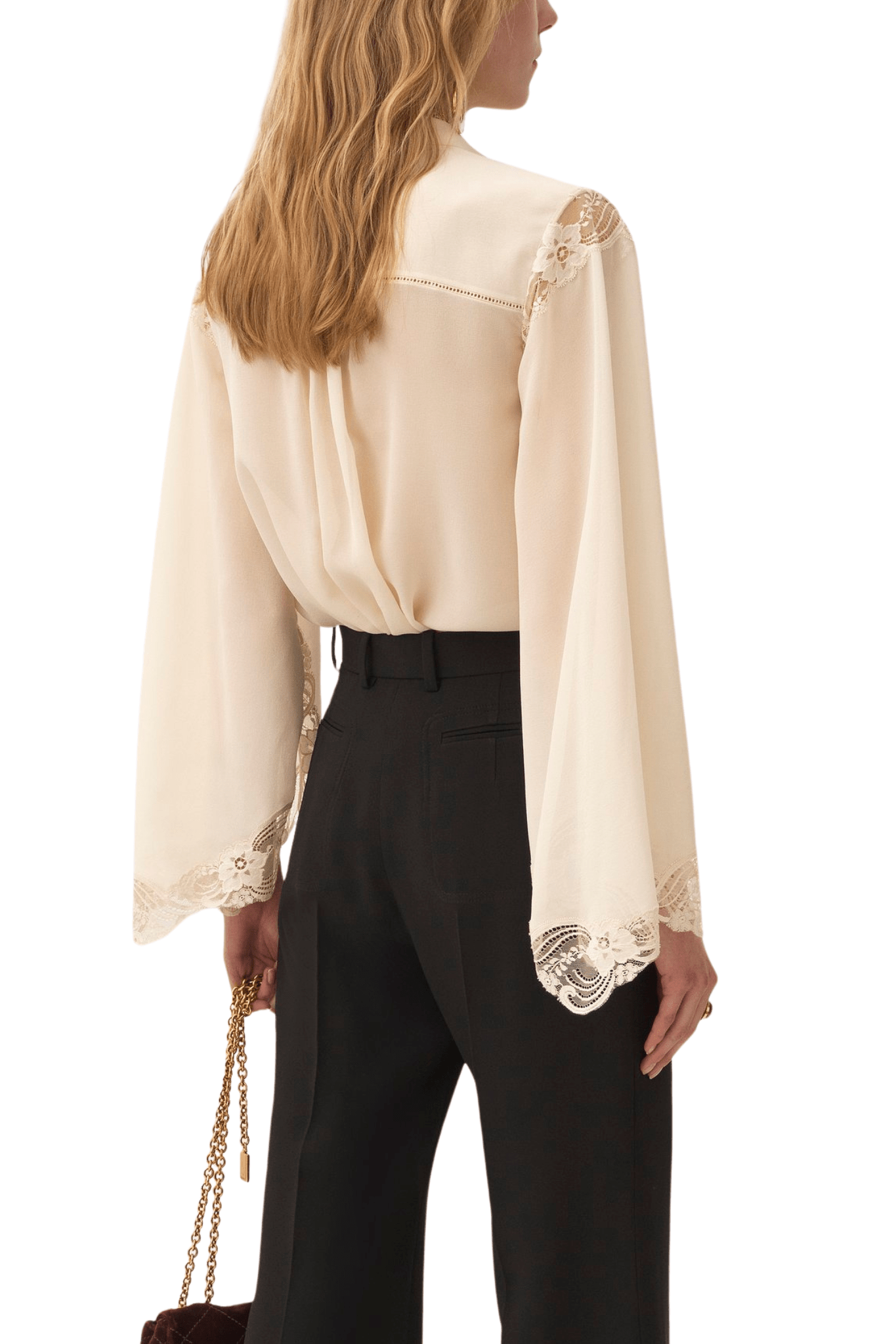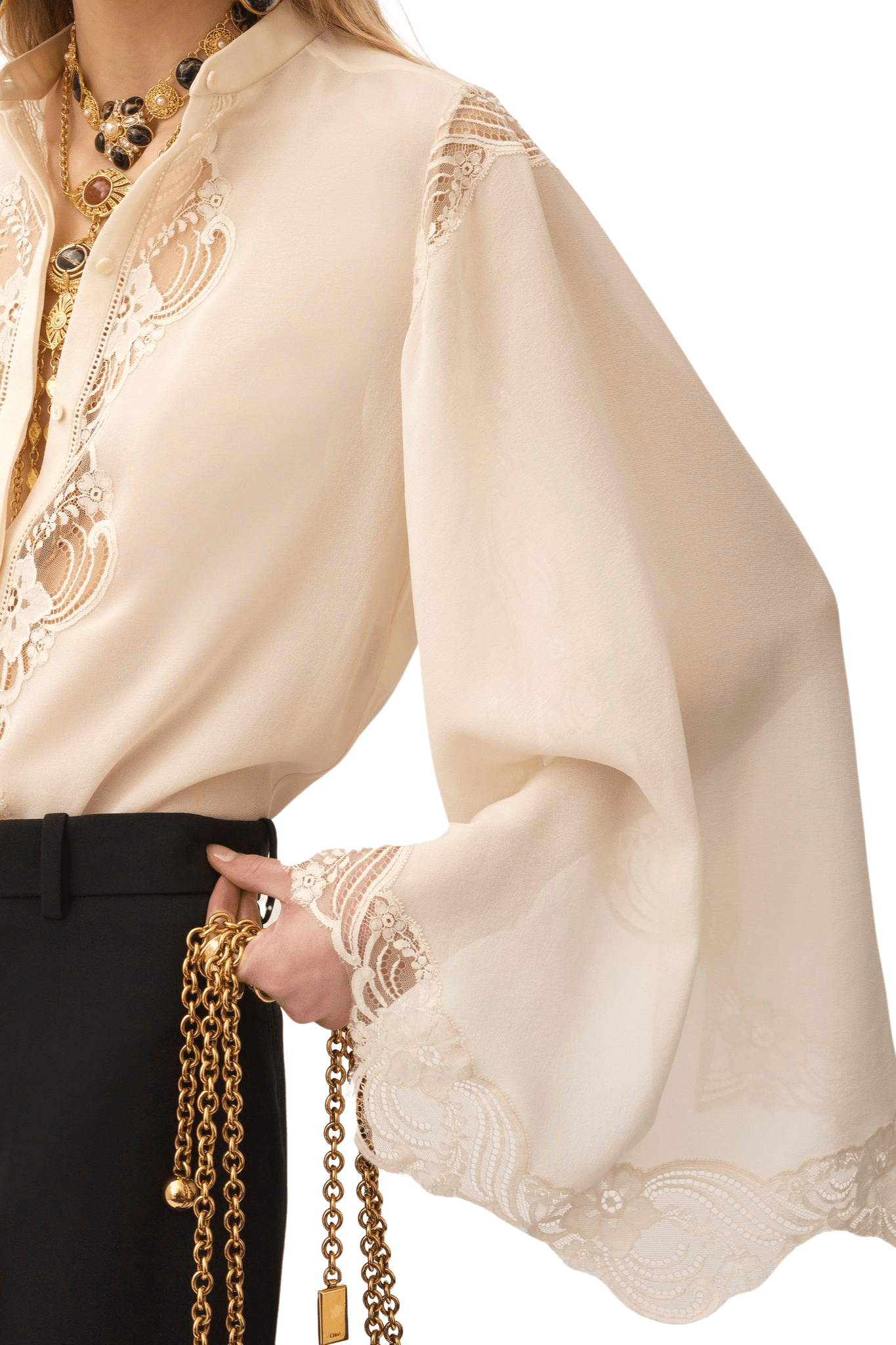 - Lace-trimmed silk blouse