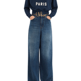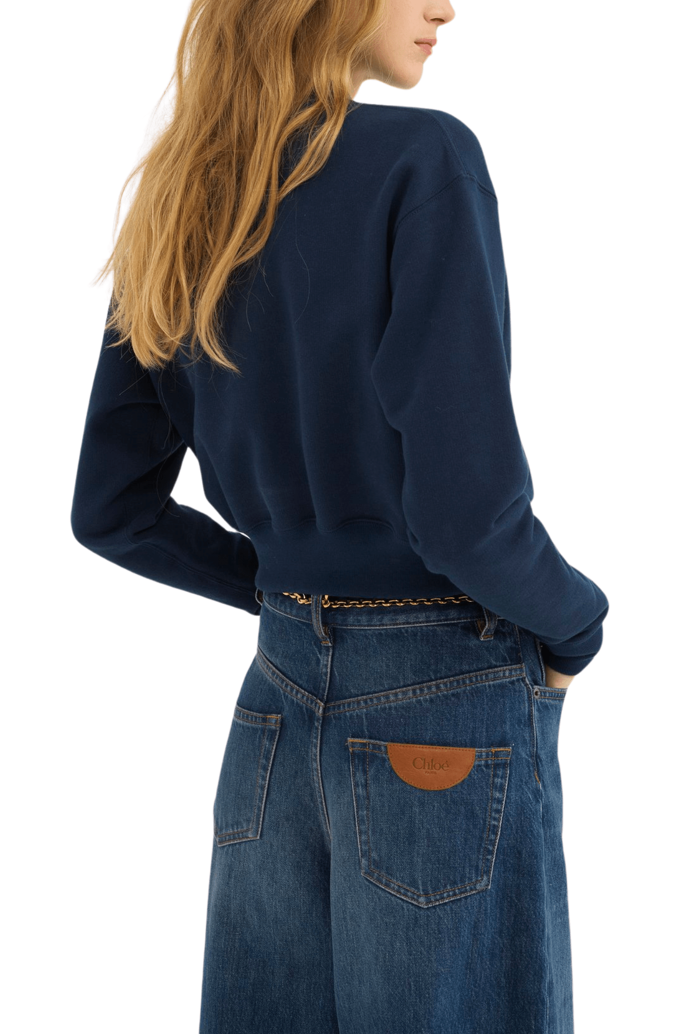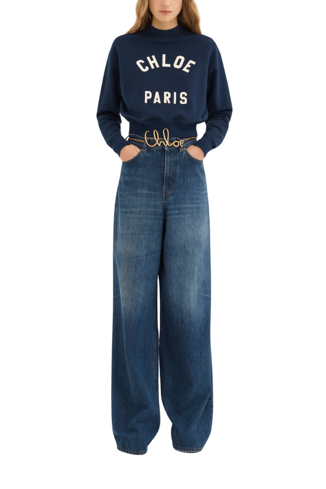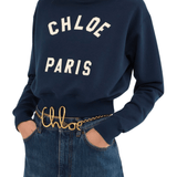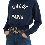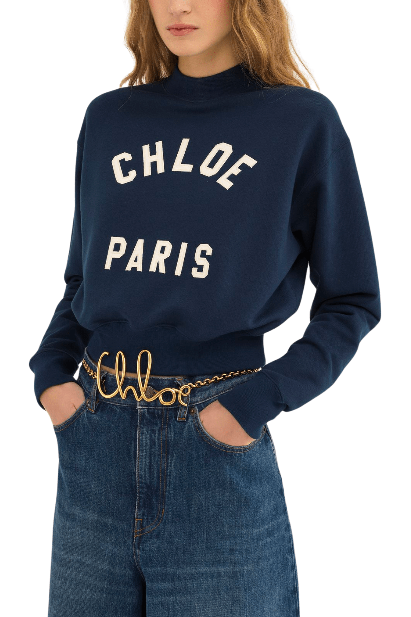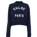 Mock-neck sweater in cotton fleece with a cropped, boxy shape featuring varsity Chloé logo appliqué patches.