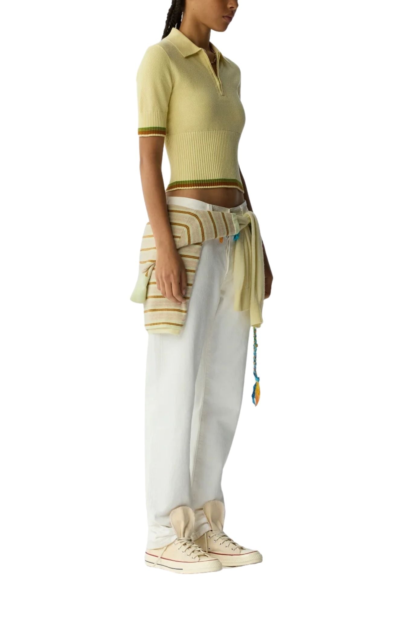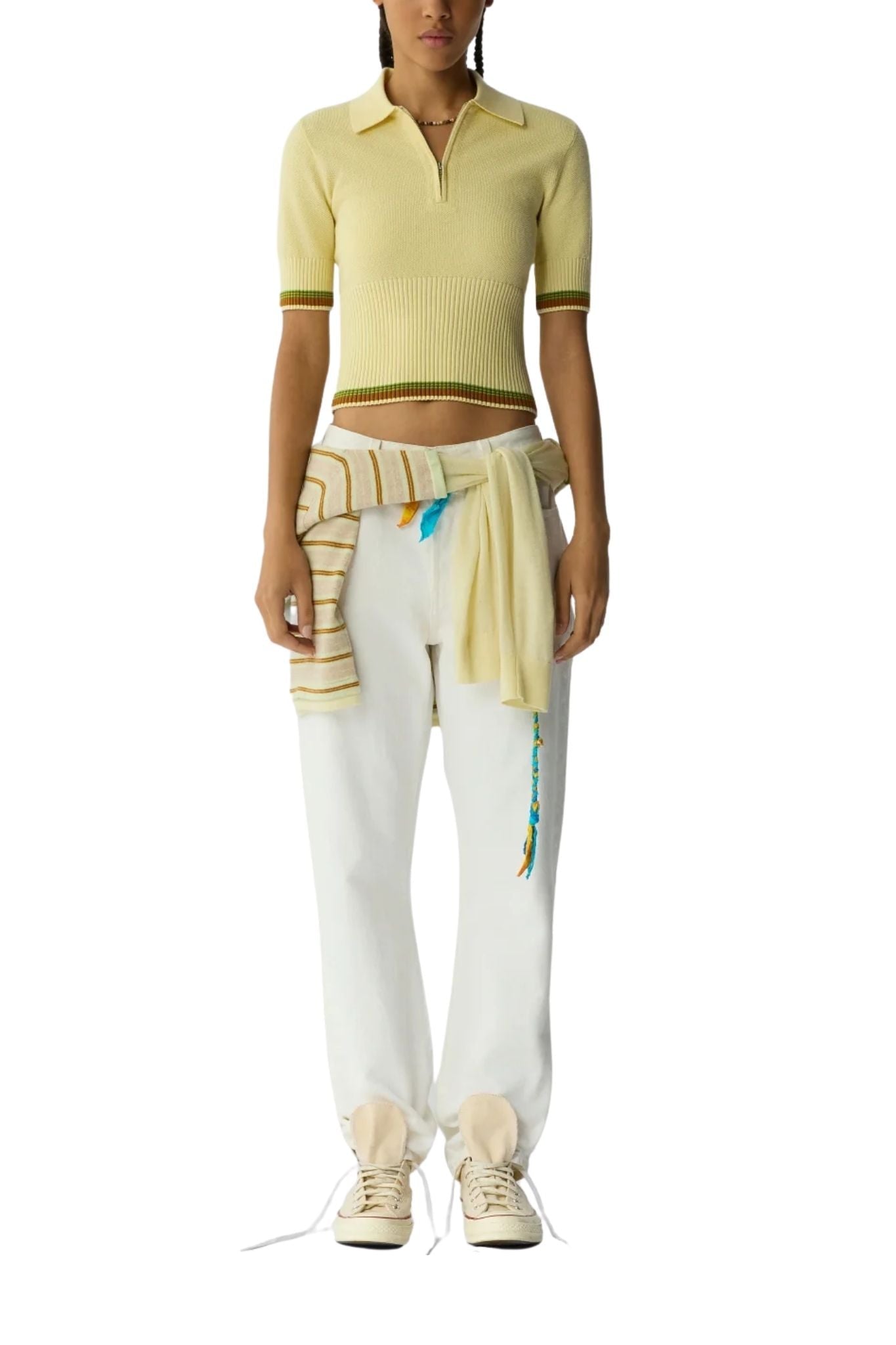 The Marcella Polo is a women’s light-weight cotton–cashmere polo featuring a textured piqué stitch with a sporty half-zip neckline and striped rib trim. Versatile and breathable, this knit polo delivers a modern sporty-prep look that pairs effortlessly with denim or layers neatly under other knits for everyday wear.