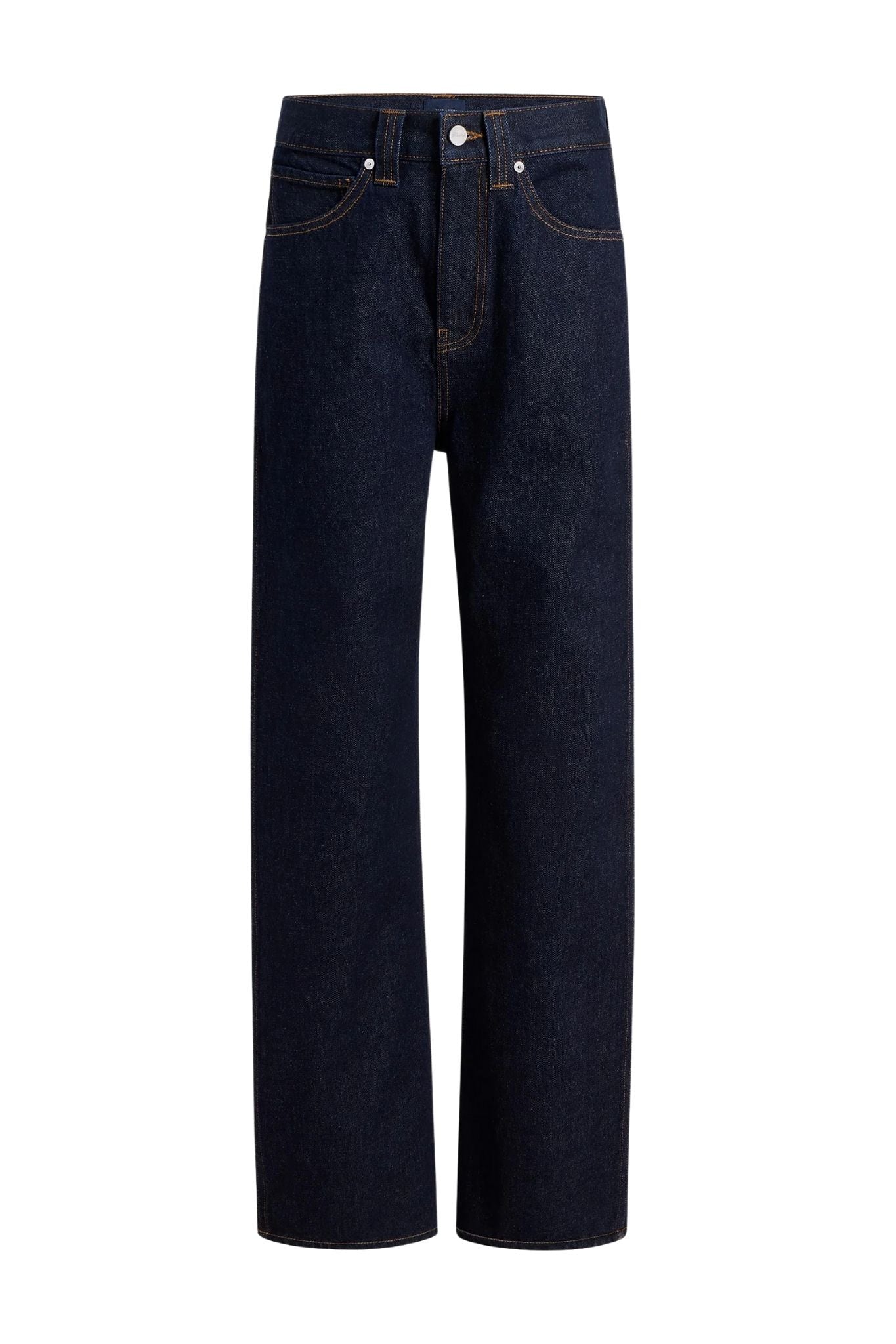 Designed to sit low on the hip, this relaxed silhouette combines classic five-pocket denim detailing with a dropped rise. Finished by hand.