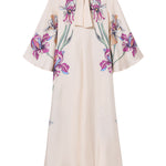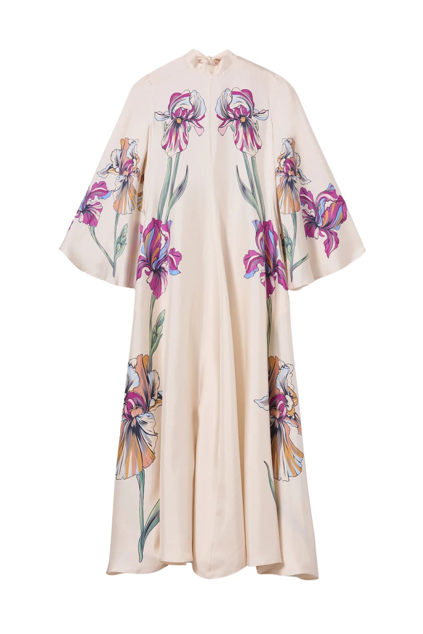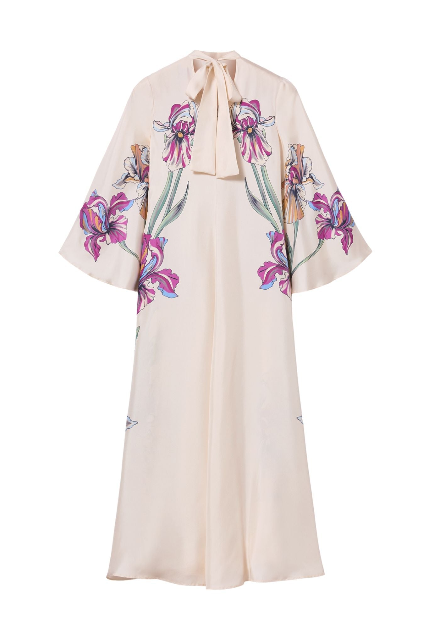 With a stand-up collar, long sash at the back and draped waterfall sleeves, this special number will glide you around the room with an ease and an elegance reserved for the most exclusive of occasions. Cut in Como-made silk twill with a subtle sheen, it exudes chic Italian elegance in this dazzling print, exquisitely placed by artisan hands.