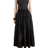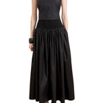 - Cotton poplin gathered skirt with flat compact knit waistband