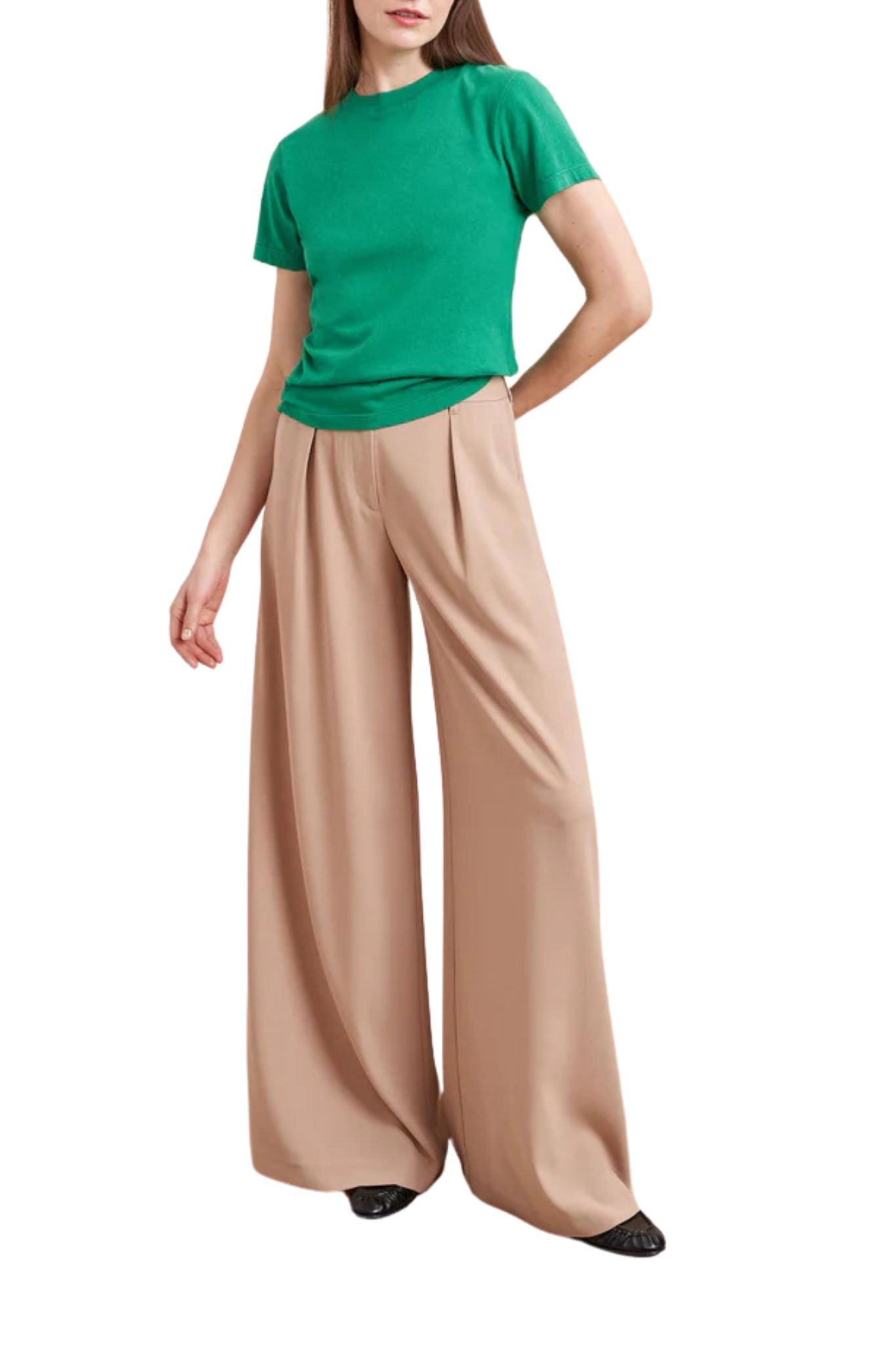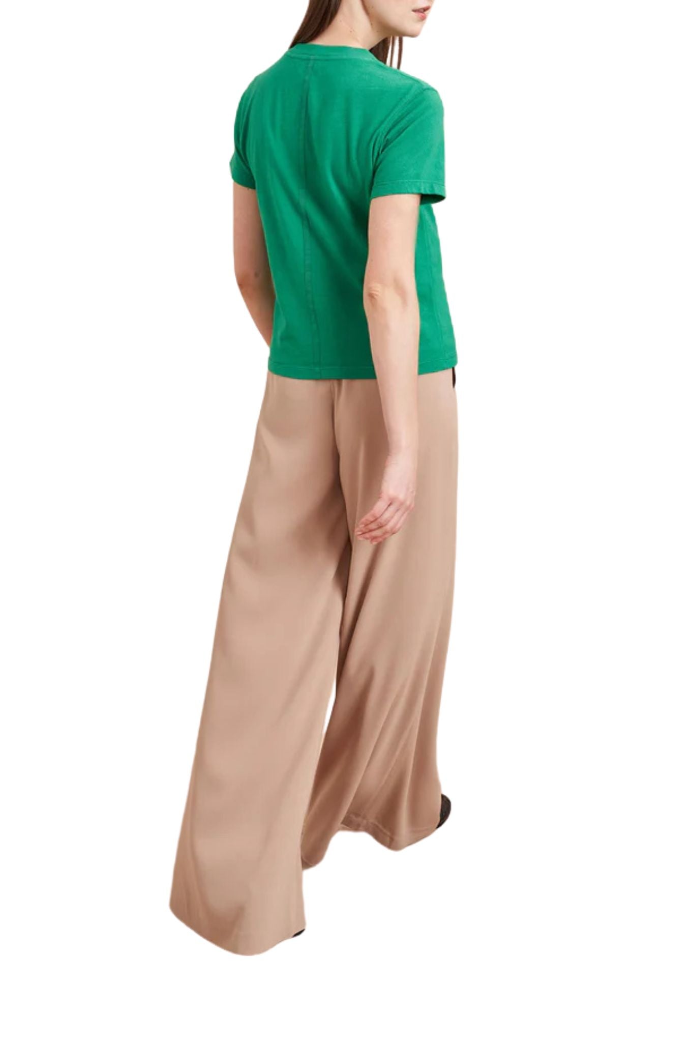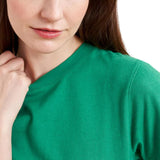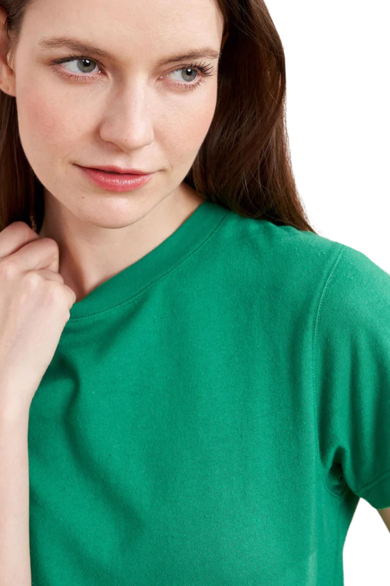 Molly's vintage-inspired kelly green t-shirt in super soft cotton with a crew neck, is more of slimmer fit.