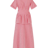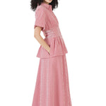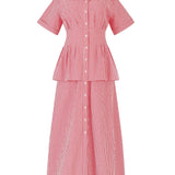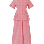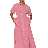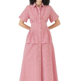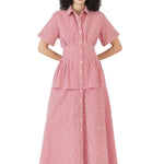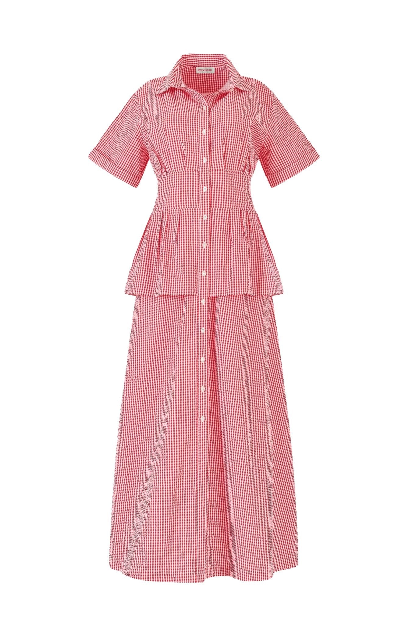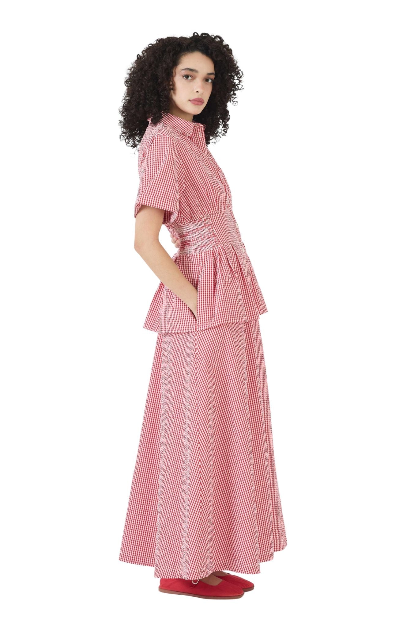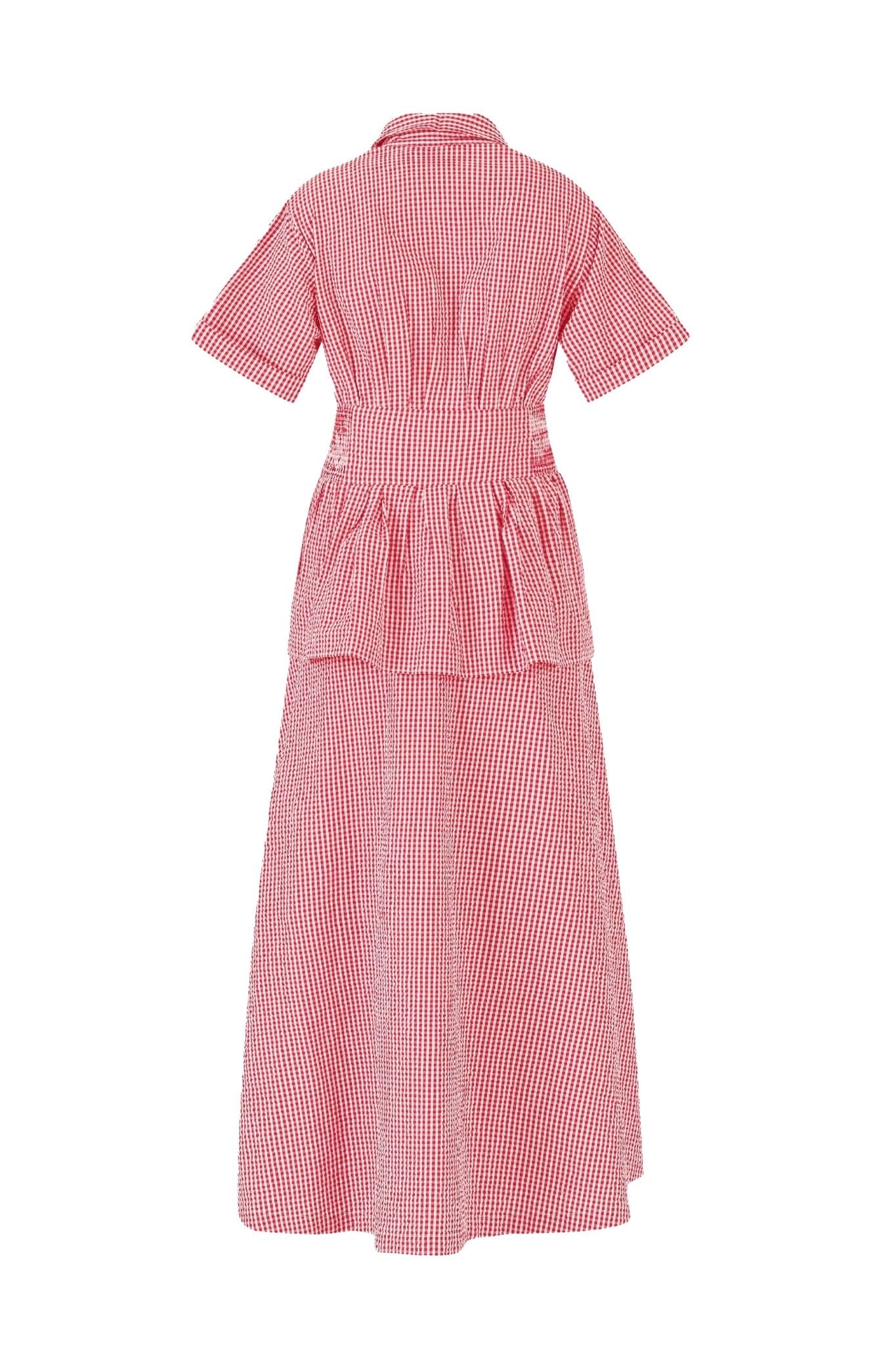 The Boogie Woogie Bugle Boy Dress in Seersucker Red Gingham brings a playful yet structured silhouette with its cinched waist and voluminous skirt. The button-down front and short sleeves give it a retro charm, perfect for warm-weather outings.