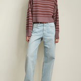 Wells B Cropped LS Pullover in Dusty Violet and Mahogany.